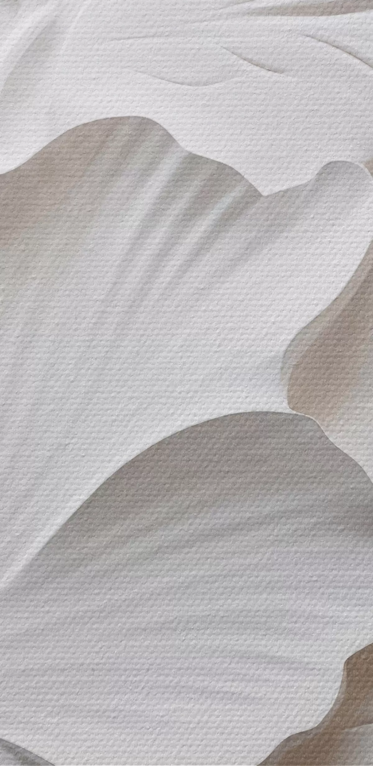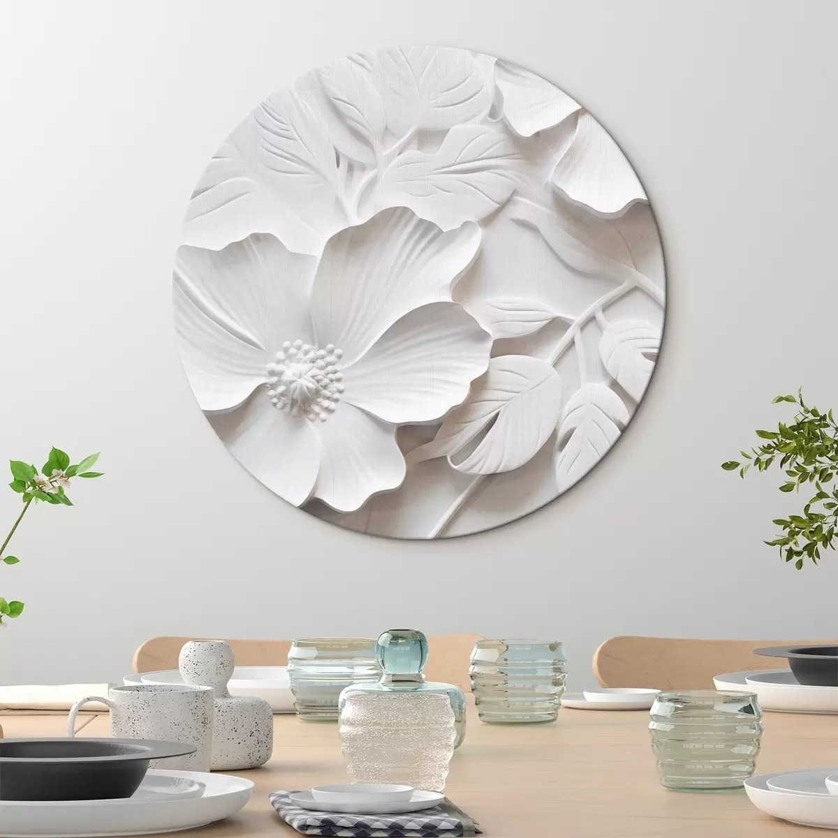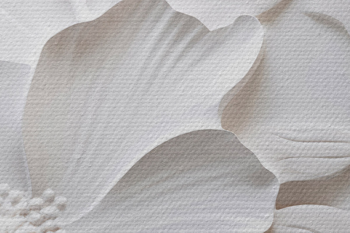 Obrázek Dekorativní minimalistické bílé květy s listy, imitace reliéfu, bílé pozadí Nr r45180