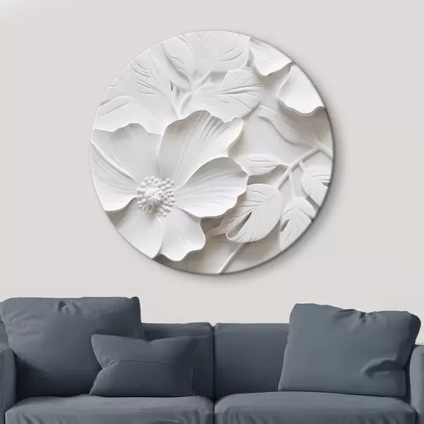 Obrázek Dekorativní minimalistické bílé květy s listy, imitace reliéfu, bílé pozadí Nr r45180