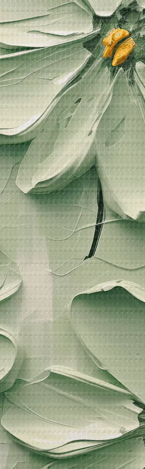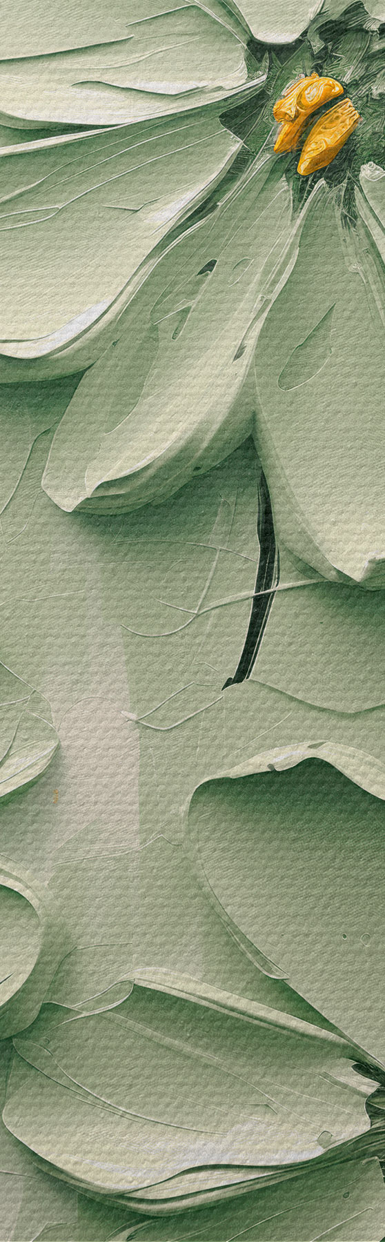 Obrázek Zelené květy se žlutými středy malované hustými tahy štětce na světlém pozadí Nr r45265