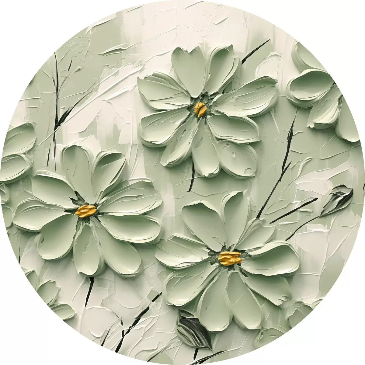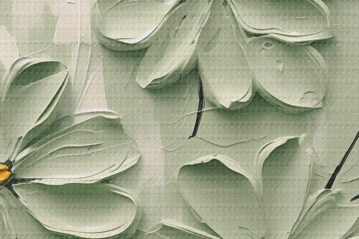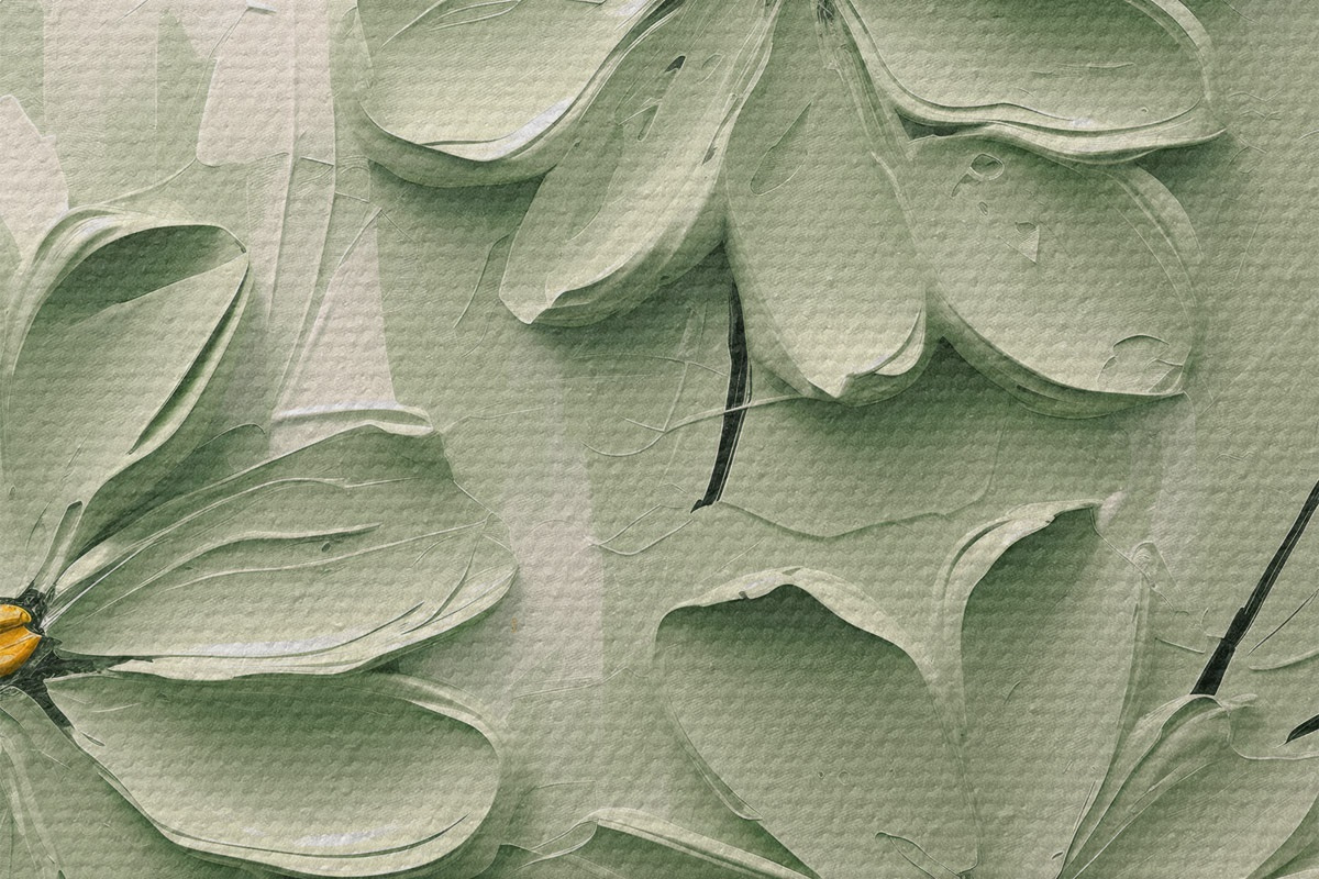 Obrázek Zelené květy se žlutými středy malované hustými tahy štětce na světlém pozadí Nr r45265
