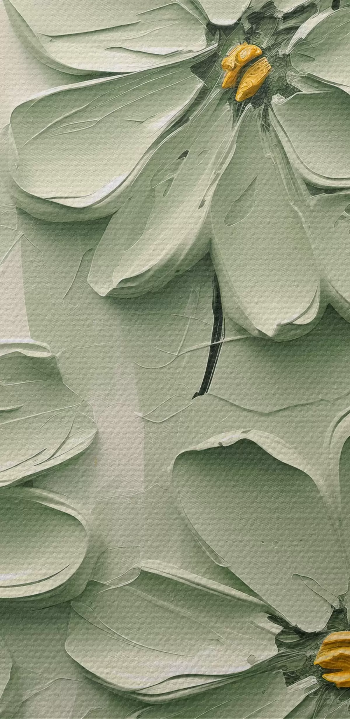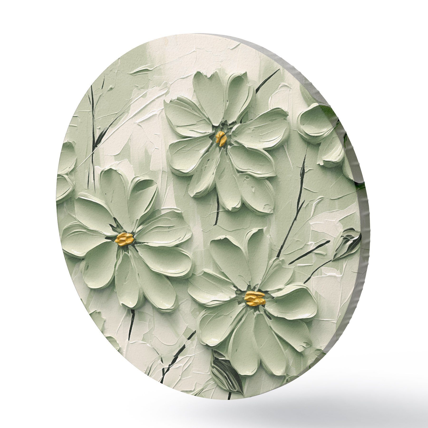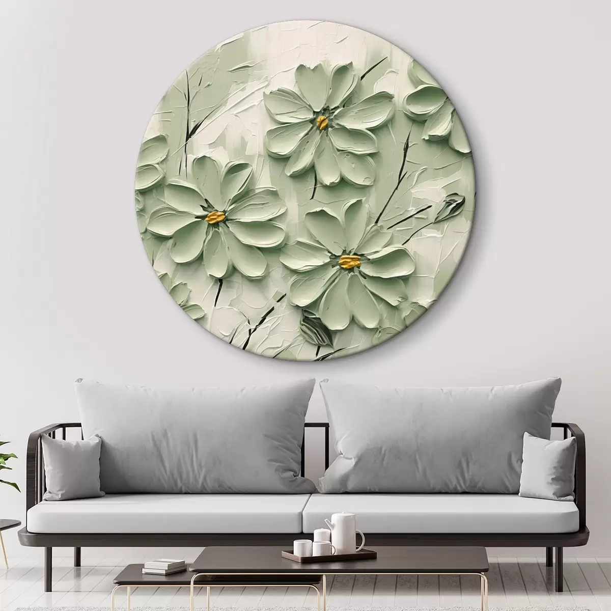 Obrázek Zelené květy se žlutými středy malované hustými tahy štětce na světlém pozadí Nr r45265