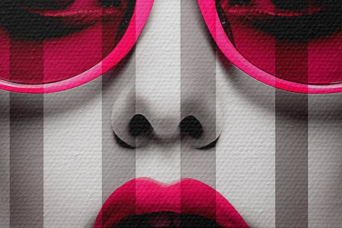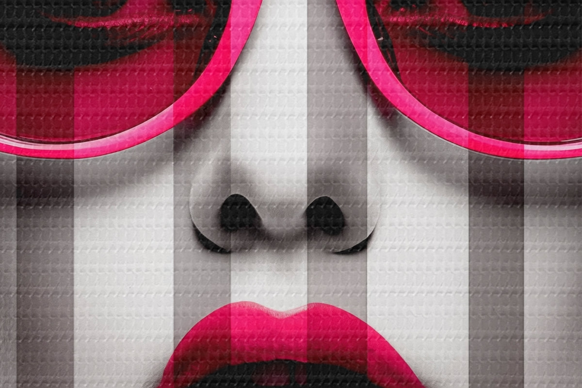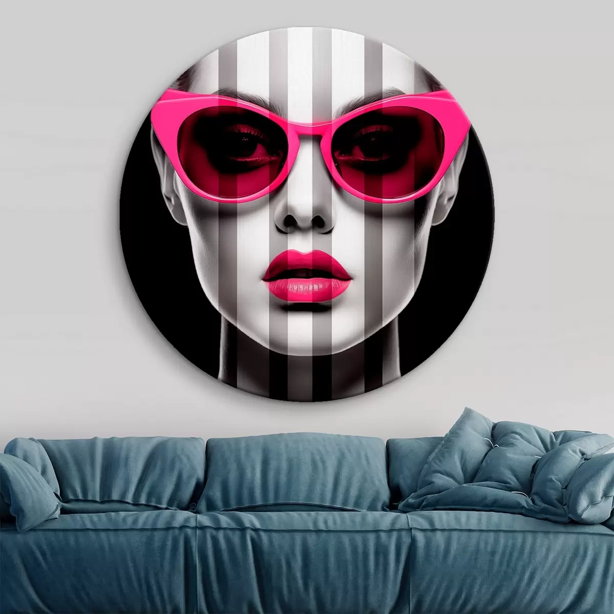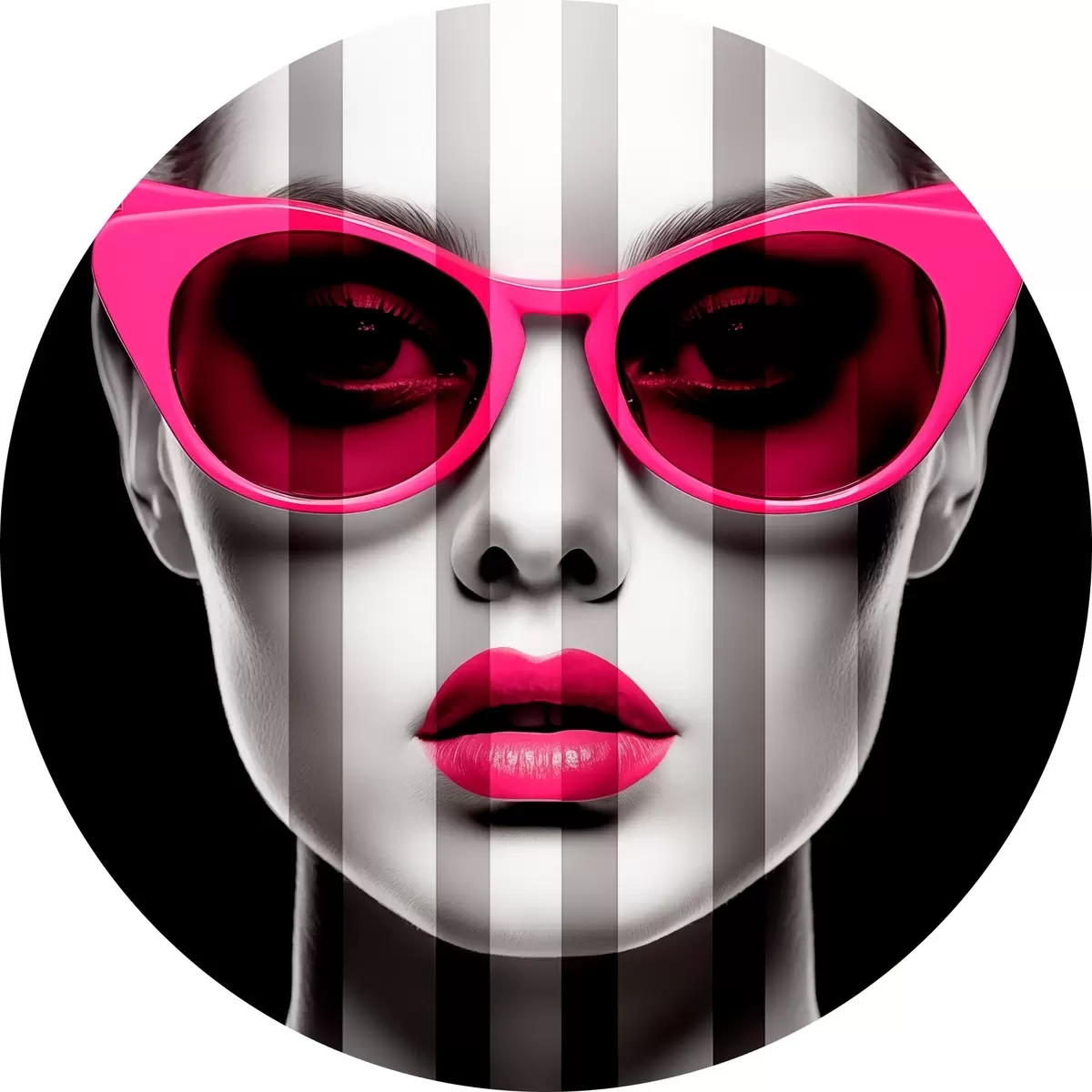 Obrázek Žena s růžovými brýlemi s černými a bílými pruhy Nr r45315