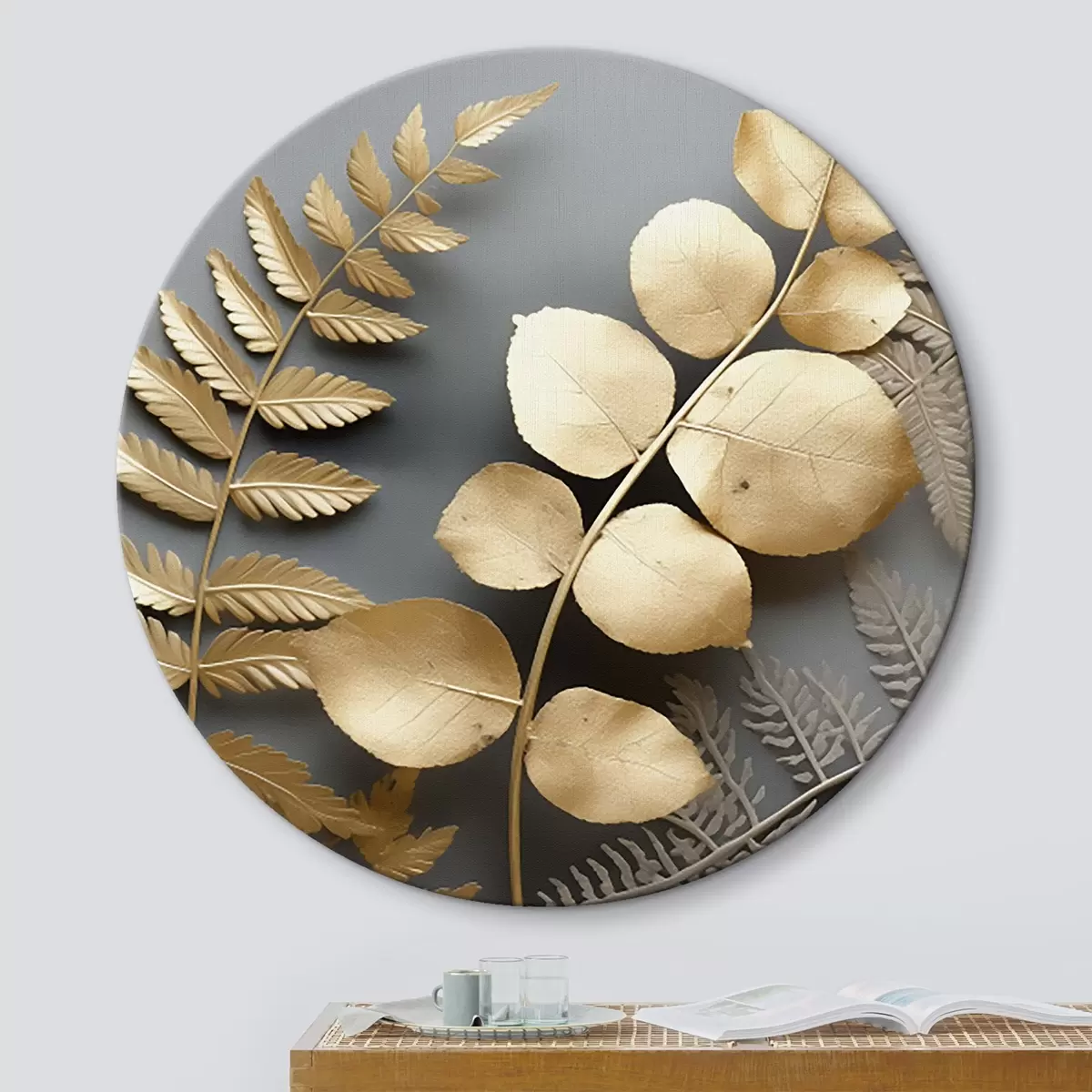 Obrázek Větve kapradí a eukalyptu na tmavém pozadí Nr r45334