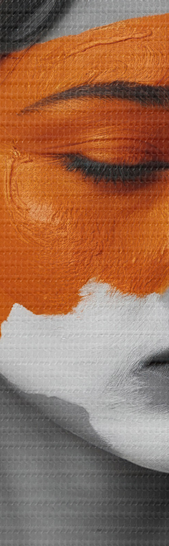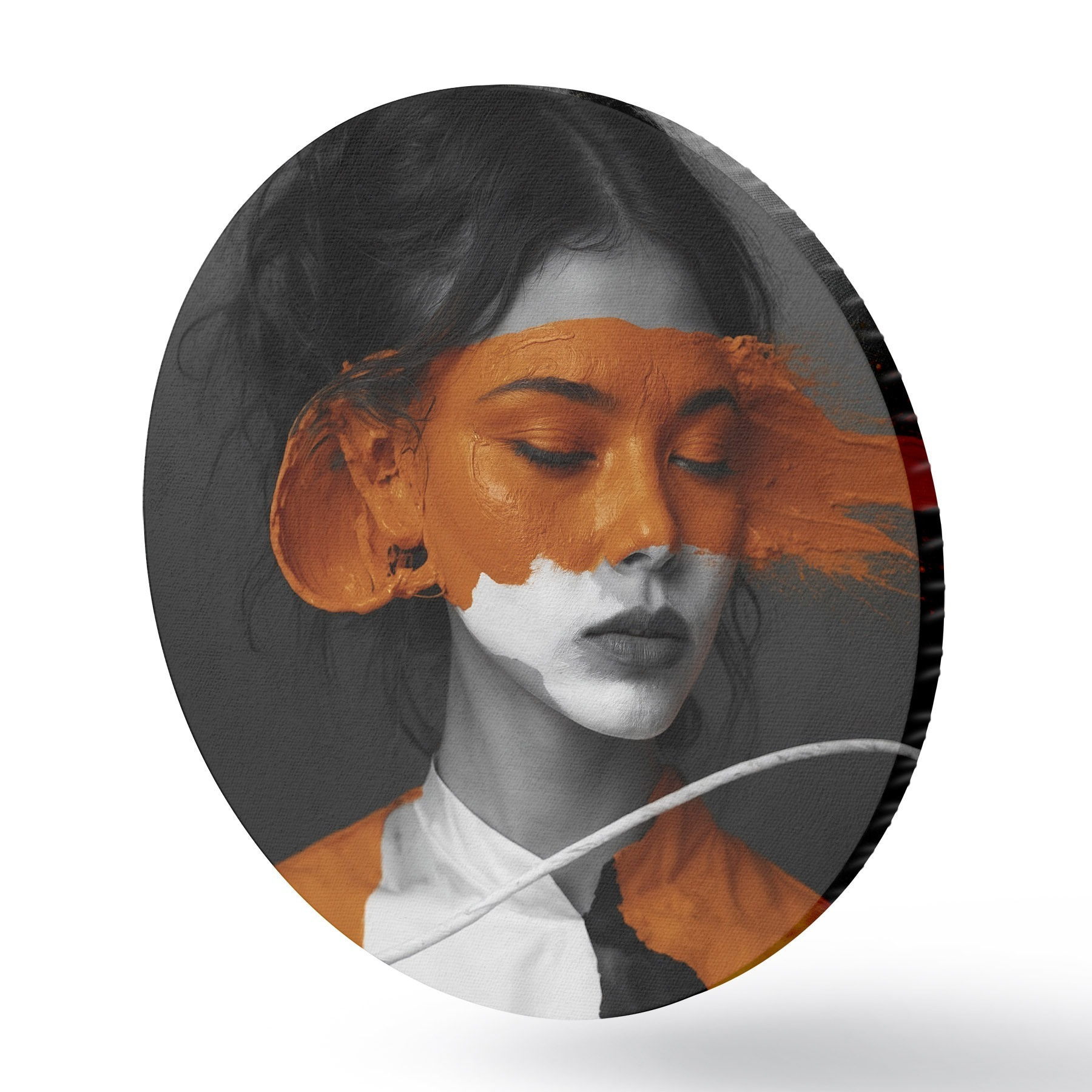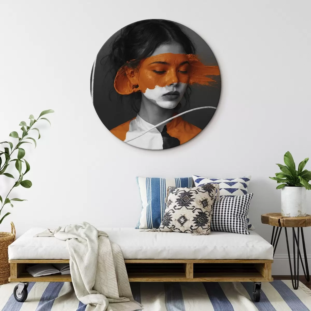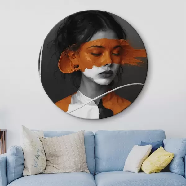 Obrázek Portrét dívky s abstraktním oranžovým obrazem Nr r45495
