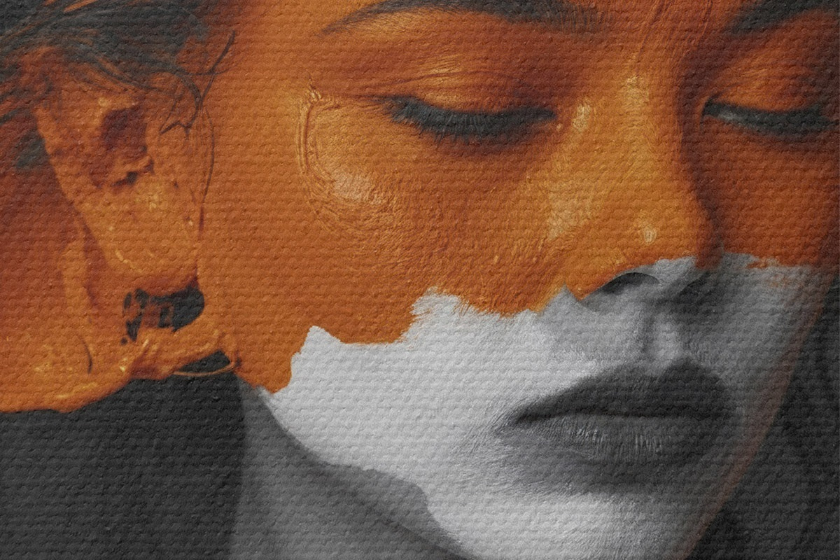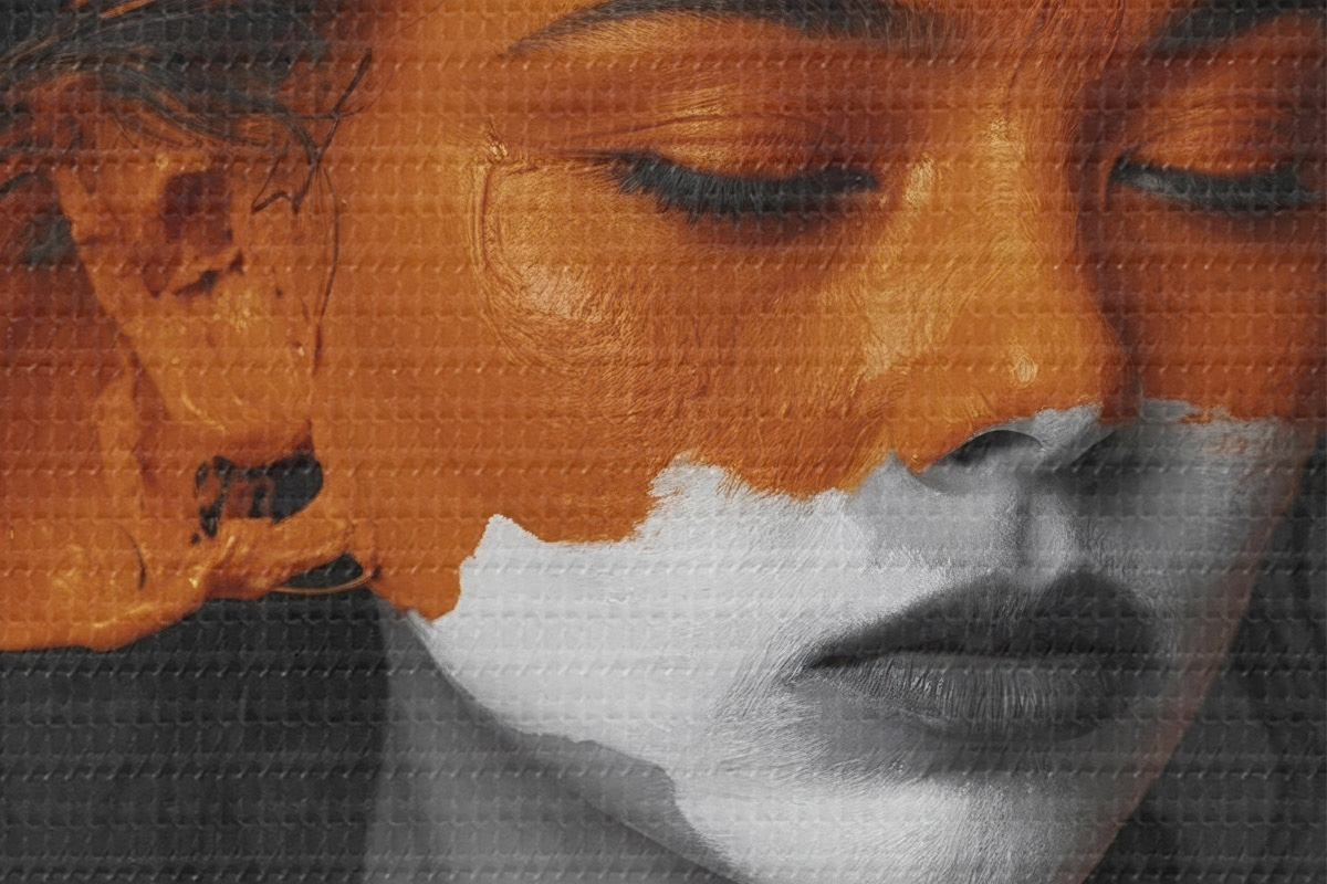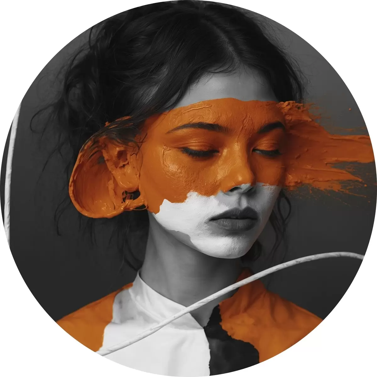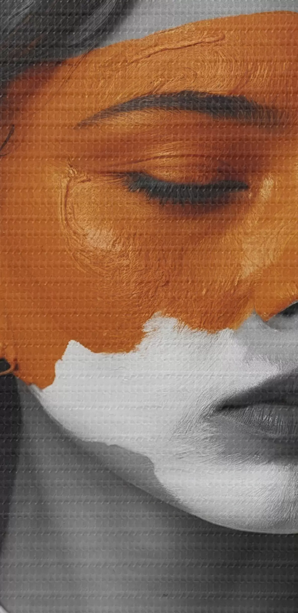 Obrázek Portrét dívky s abstraktním oranžovým obrazem Nr r45495