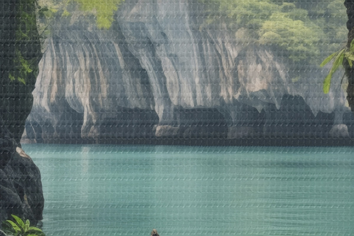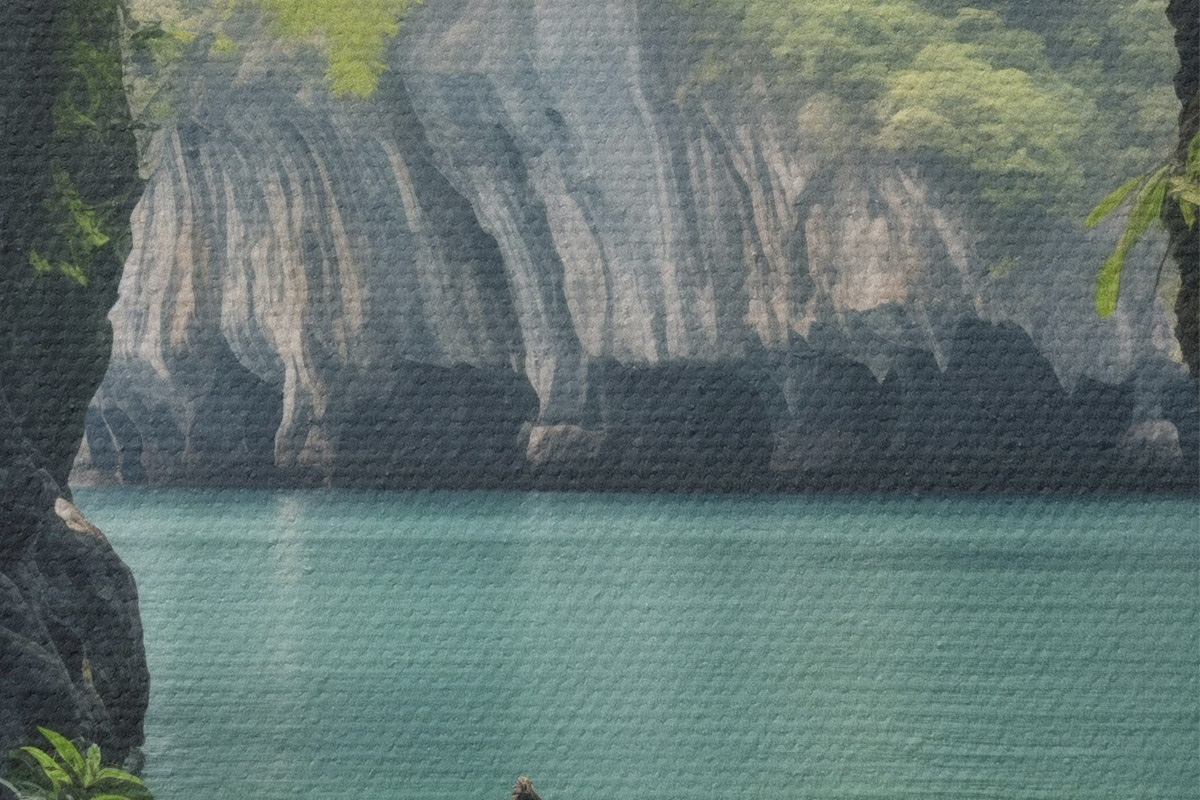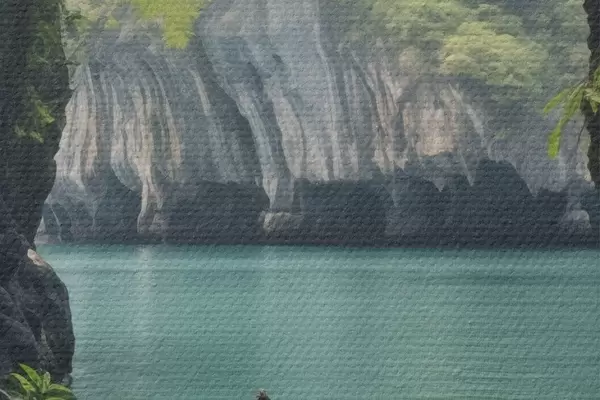 Obrázek Loď na tyrkysové vodě mezi skalami Nr r45507