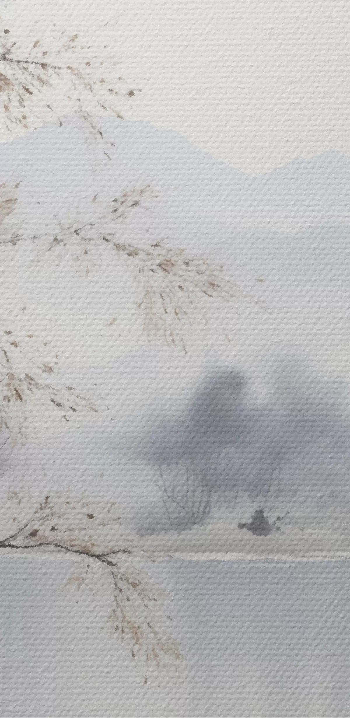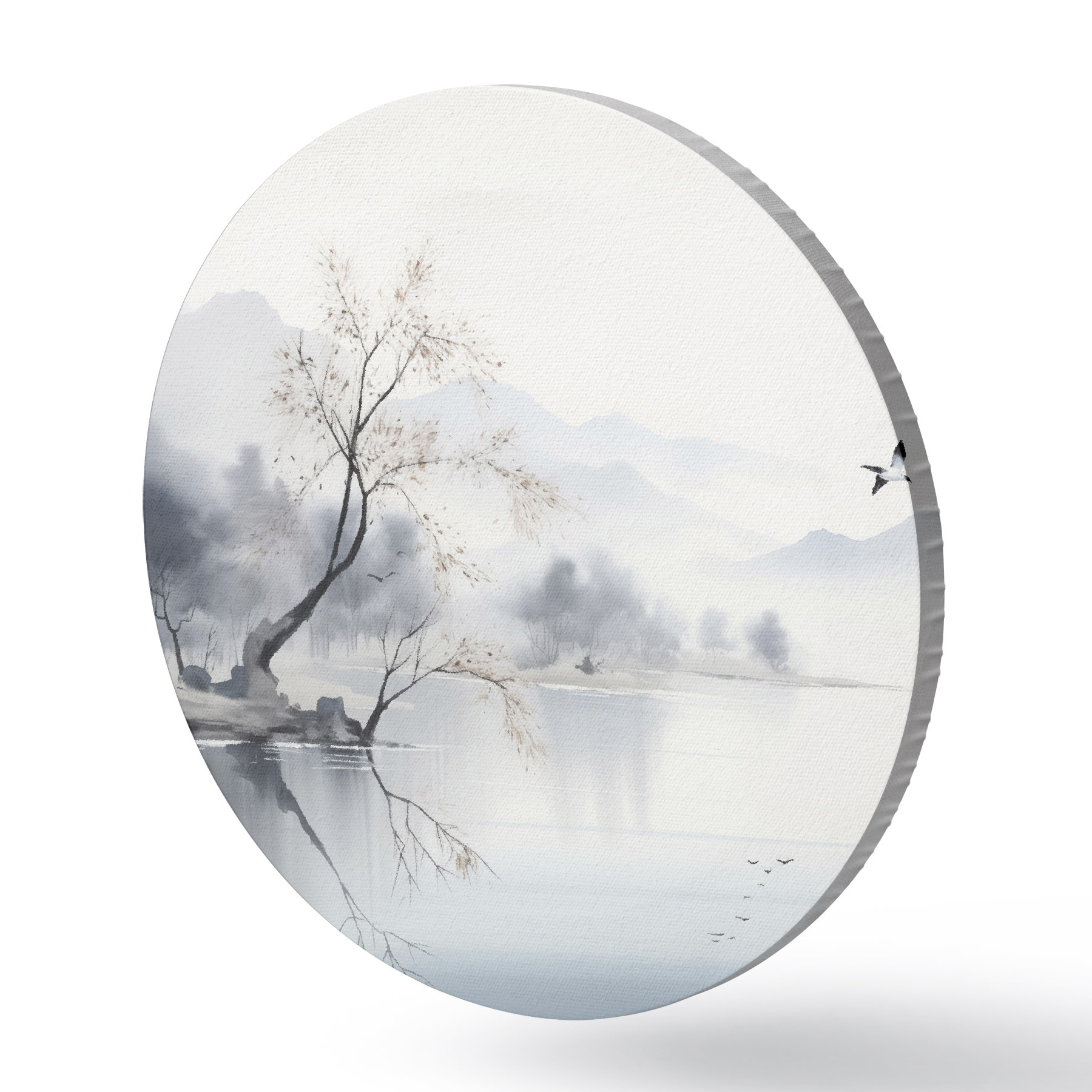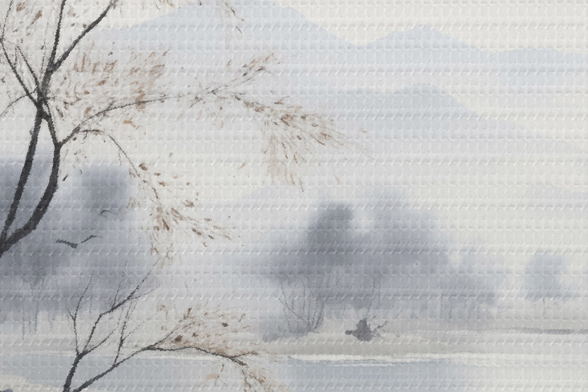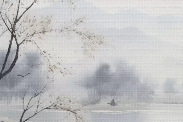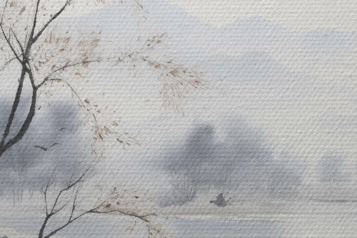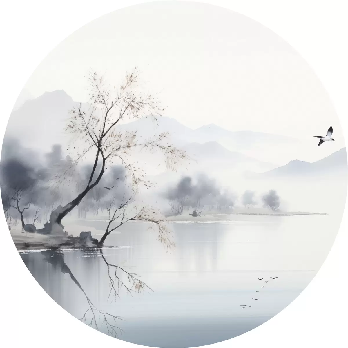 Obrázek Mlžná krajina se stromem, horami a ptáky Nr r45518