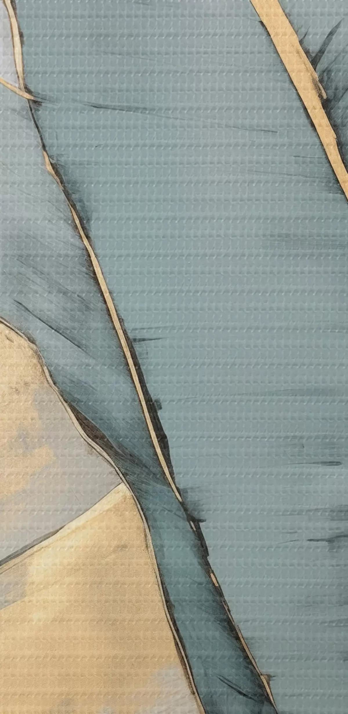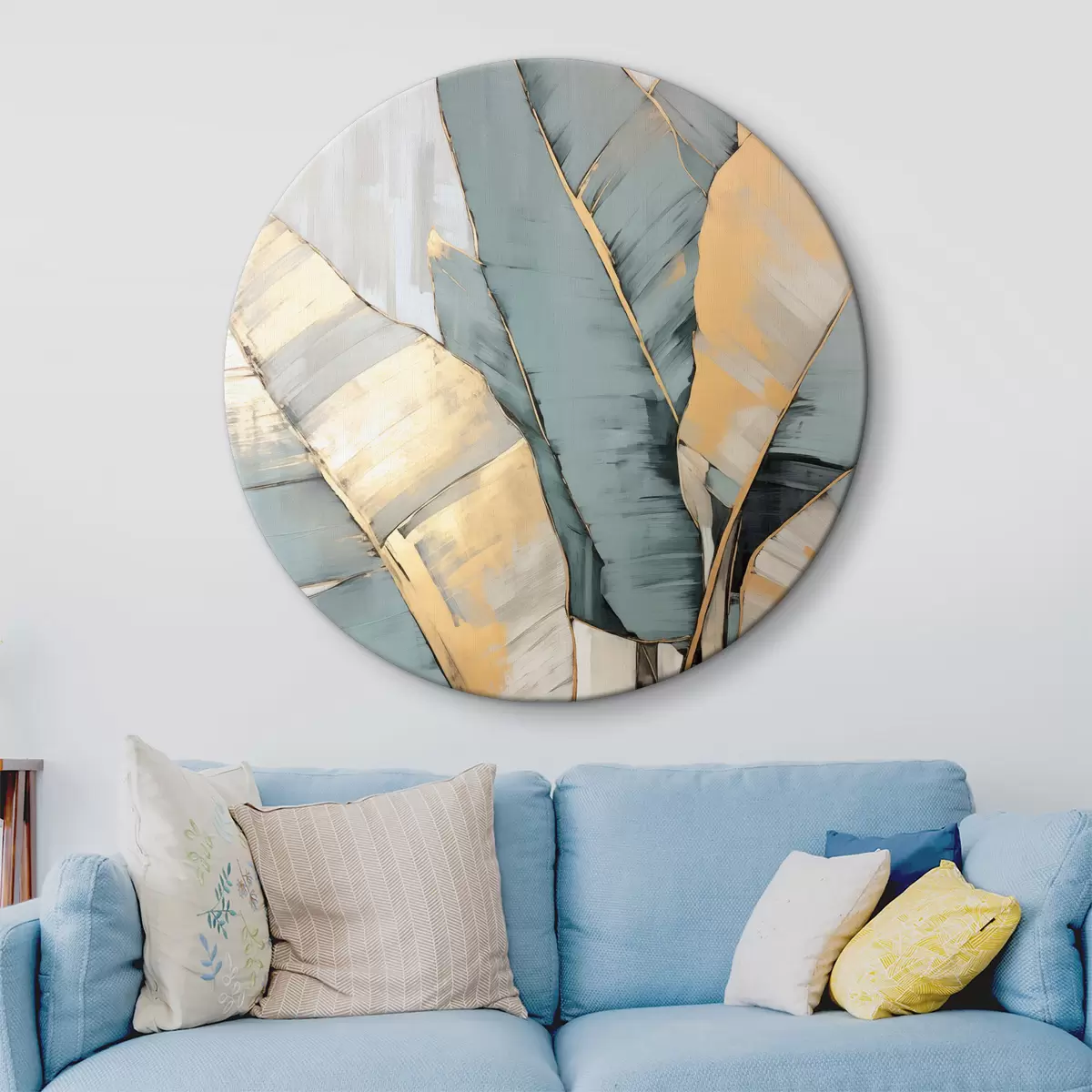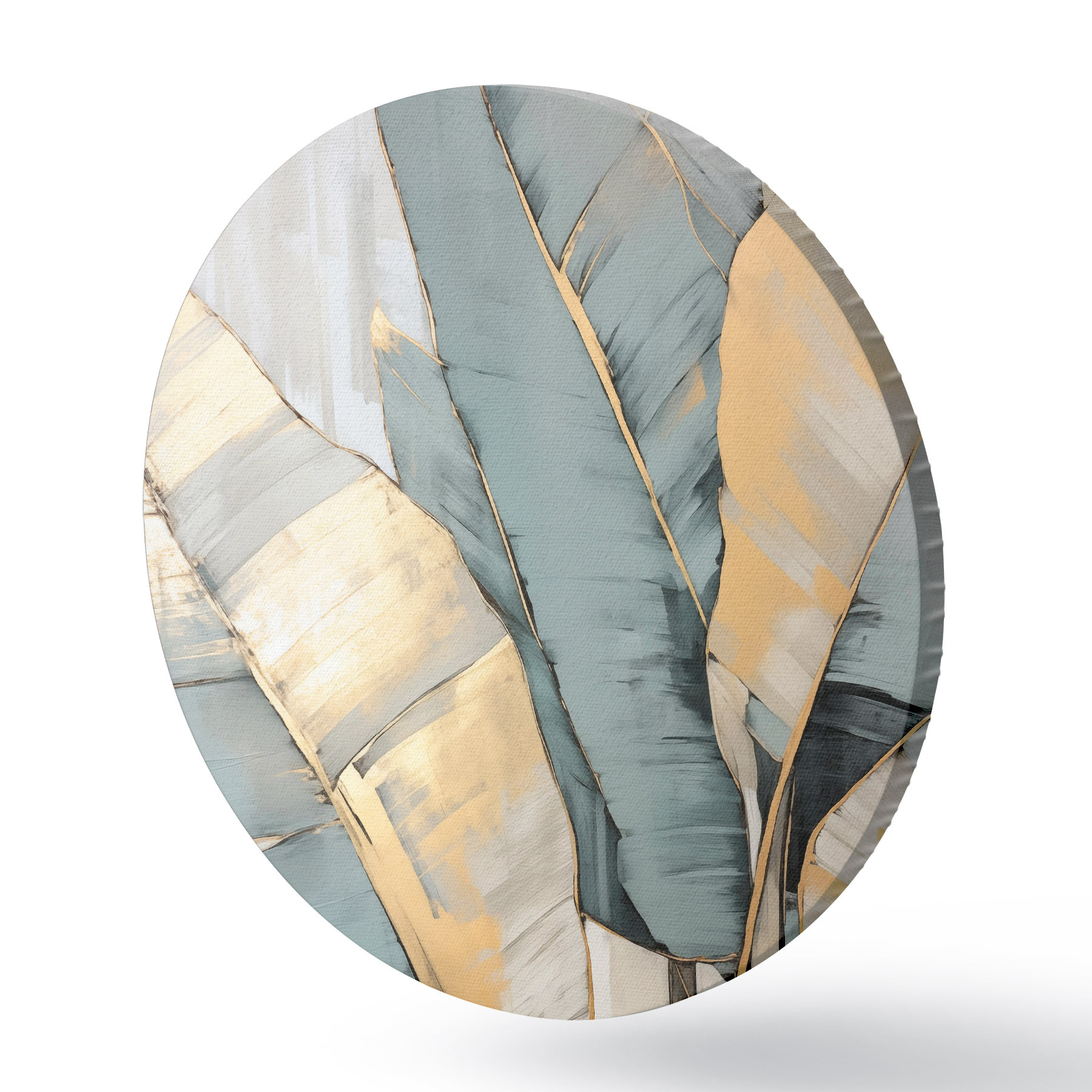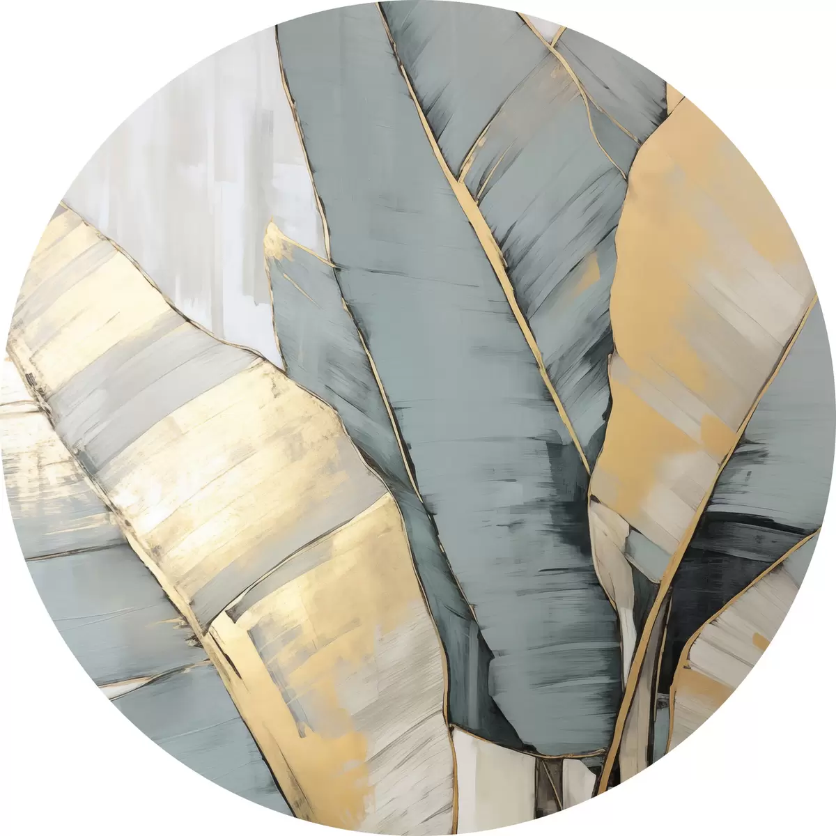 Obrázek Tlumené modré, šedé a žluté banánové listy s viditelnými tahy štětce na bílém abstraktním pozadí Nr r45552