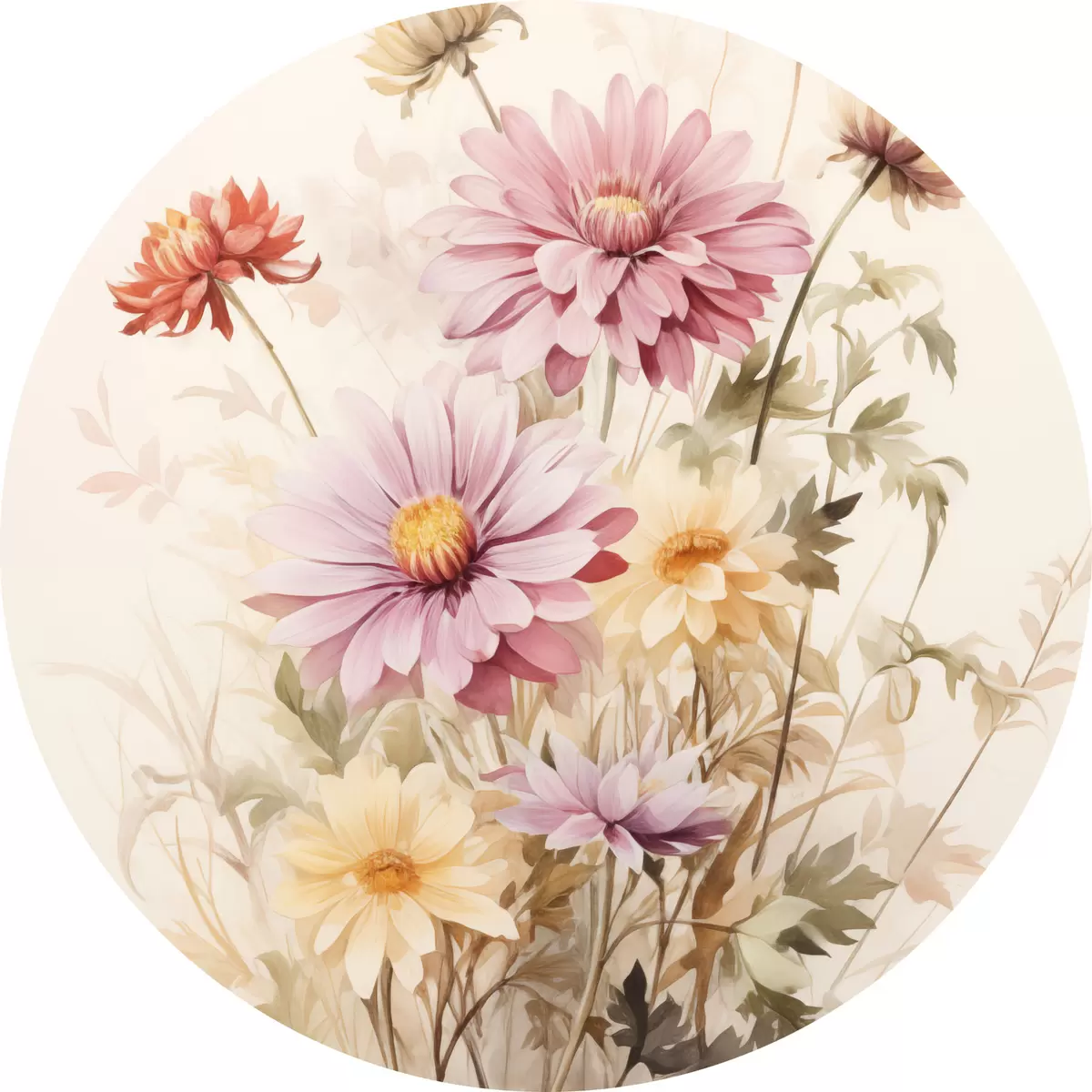 Obrázek Kytice barevných květin, jemný akvarelový styl, na světlém pozadí, botanická ilustrace Nr r45560