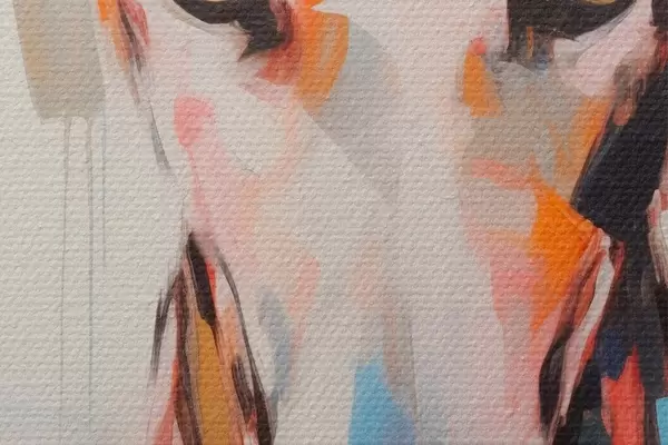 Obrázek Chrtí pes namalovaný v zářivých barvách, jako je oranžová, růžová a modrá, na obyčejném bílém pozadí Nr r45565