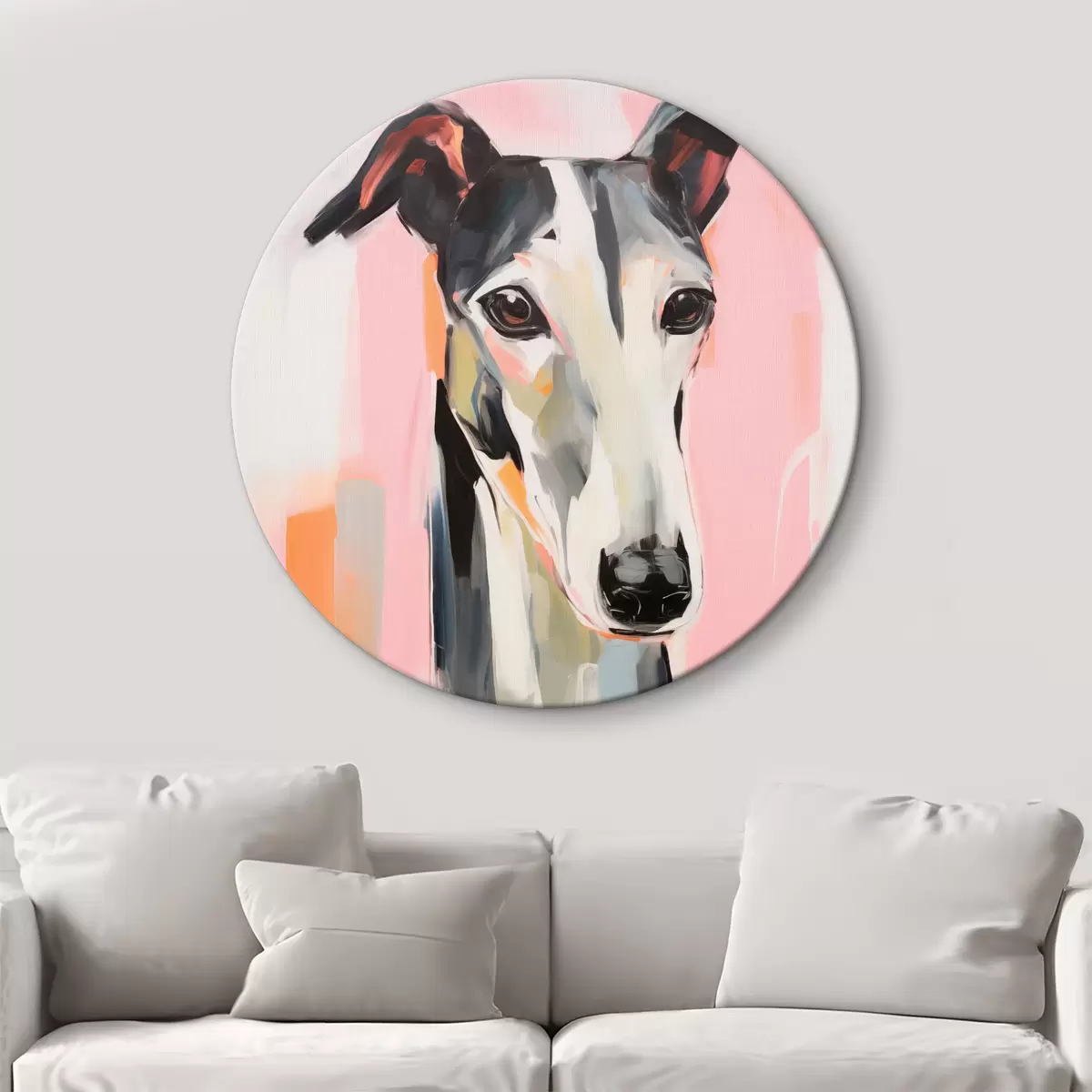 Obrázek Chrt na pozadí růžových, oranžových a bílých tahů štětcem Nr r45566