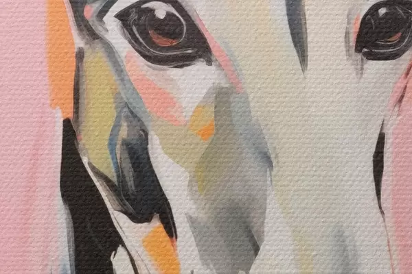 Obrázek Chrt na pozadí růžových, oranžových a bílých tahů štětcem Nr r45566