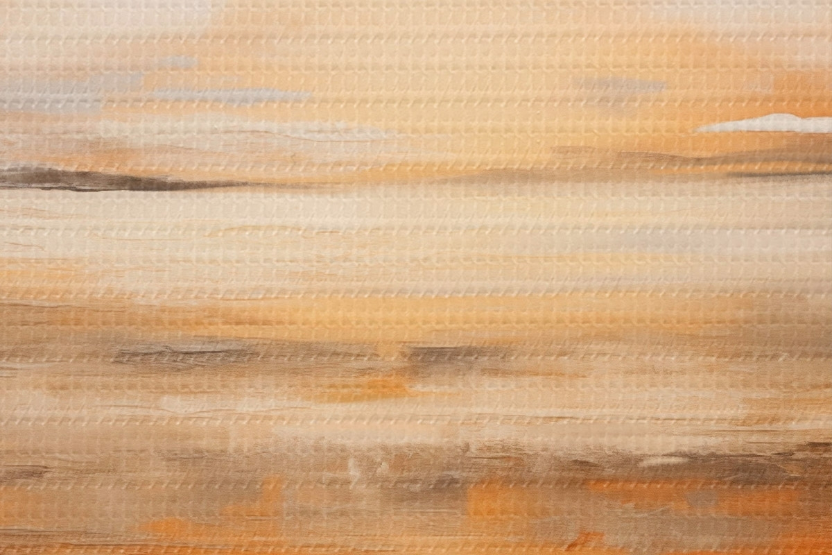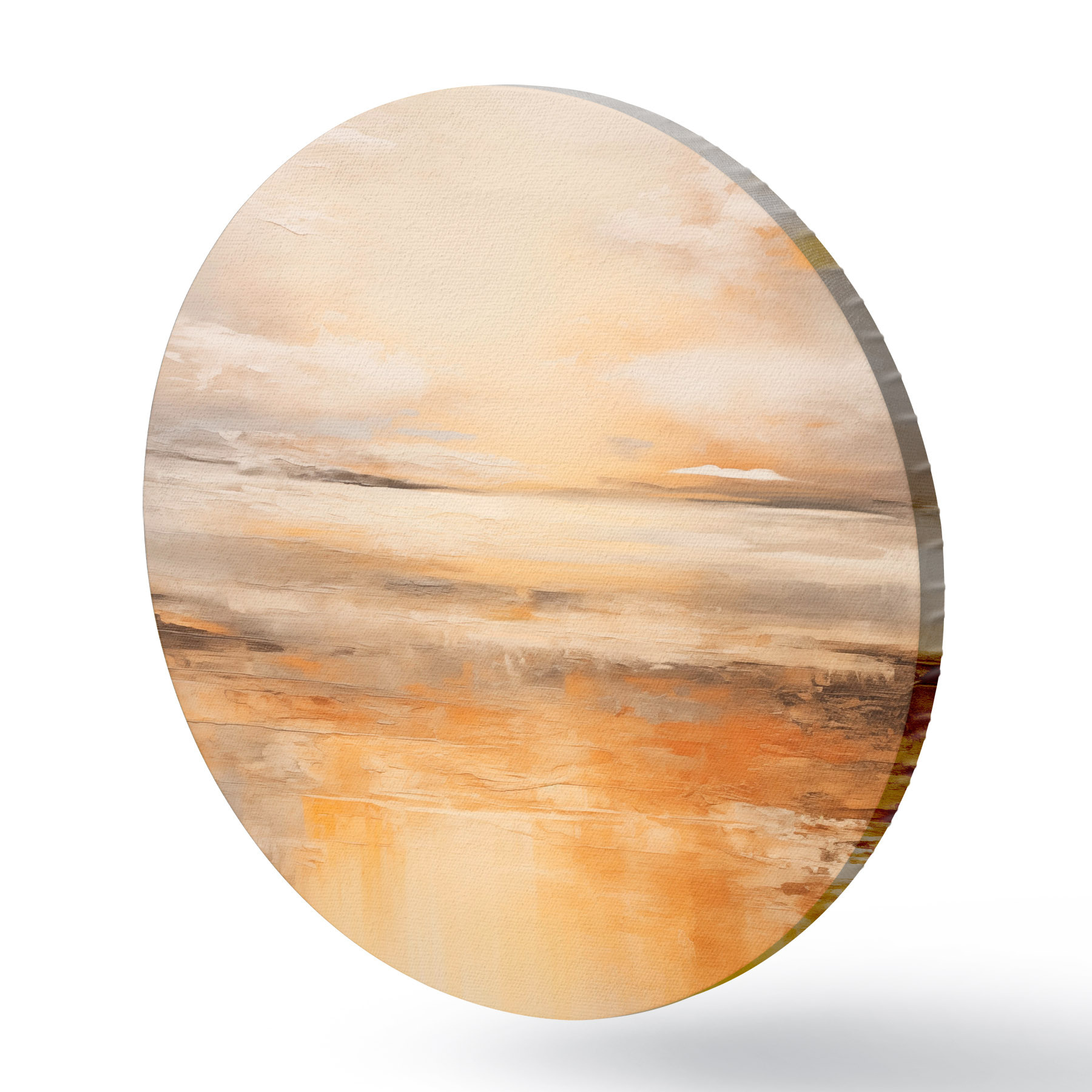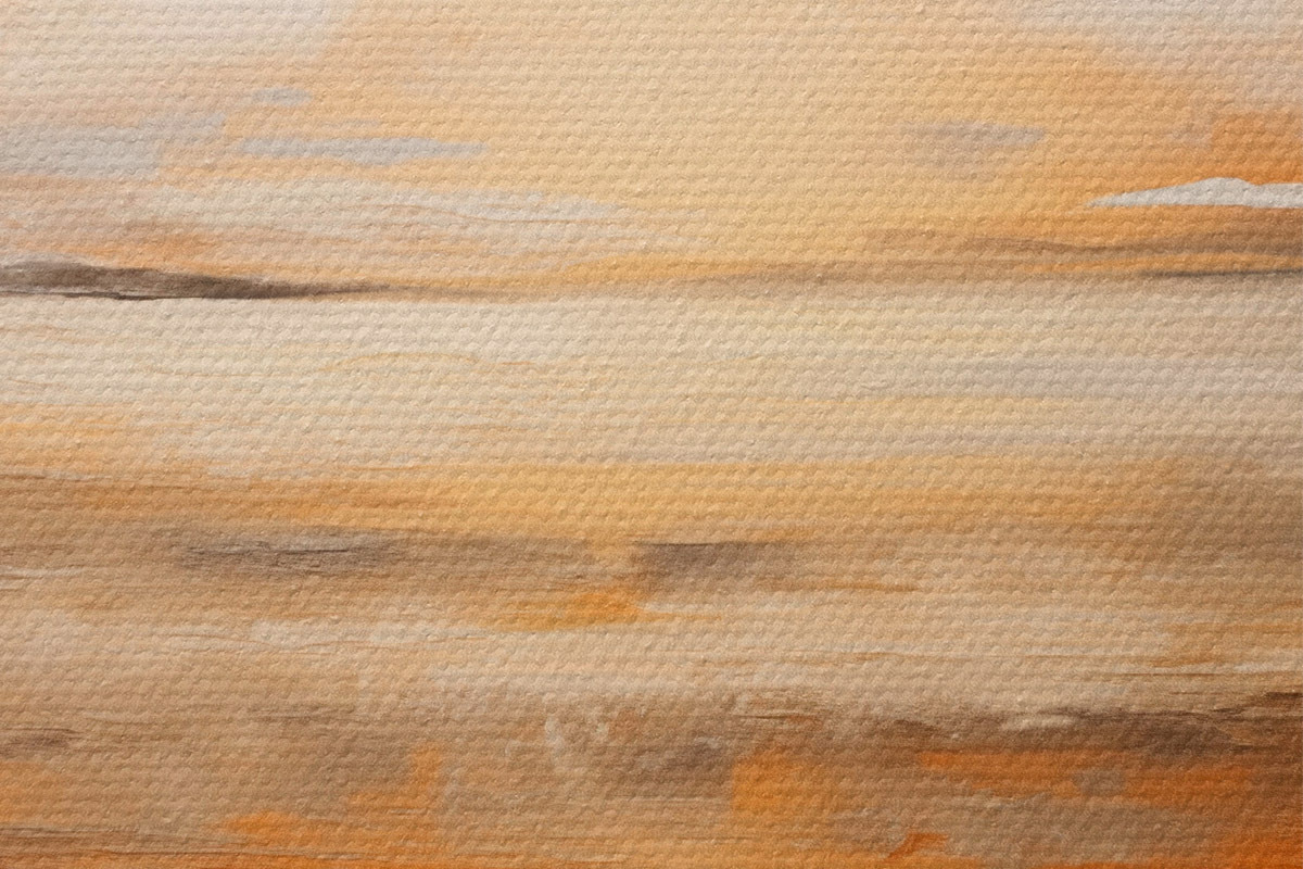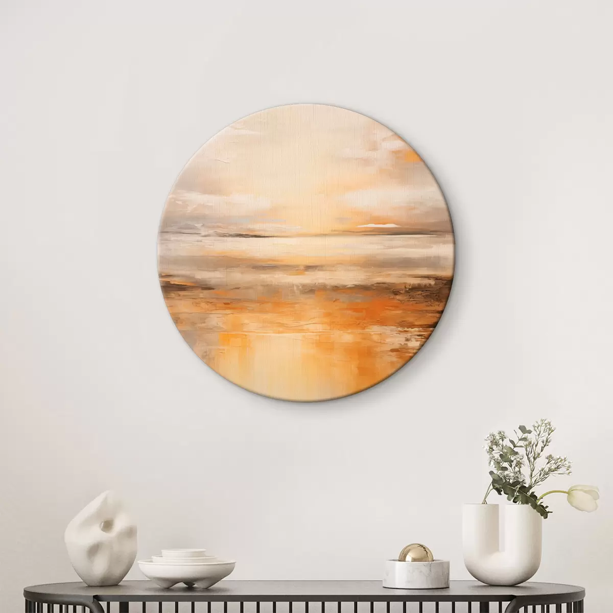 Obrázek Abstraktní obraz plážové krajiny s klidným oceánem , oranžovým pískem a zamračenou oblohou se sluncem Nr r45567