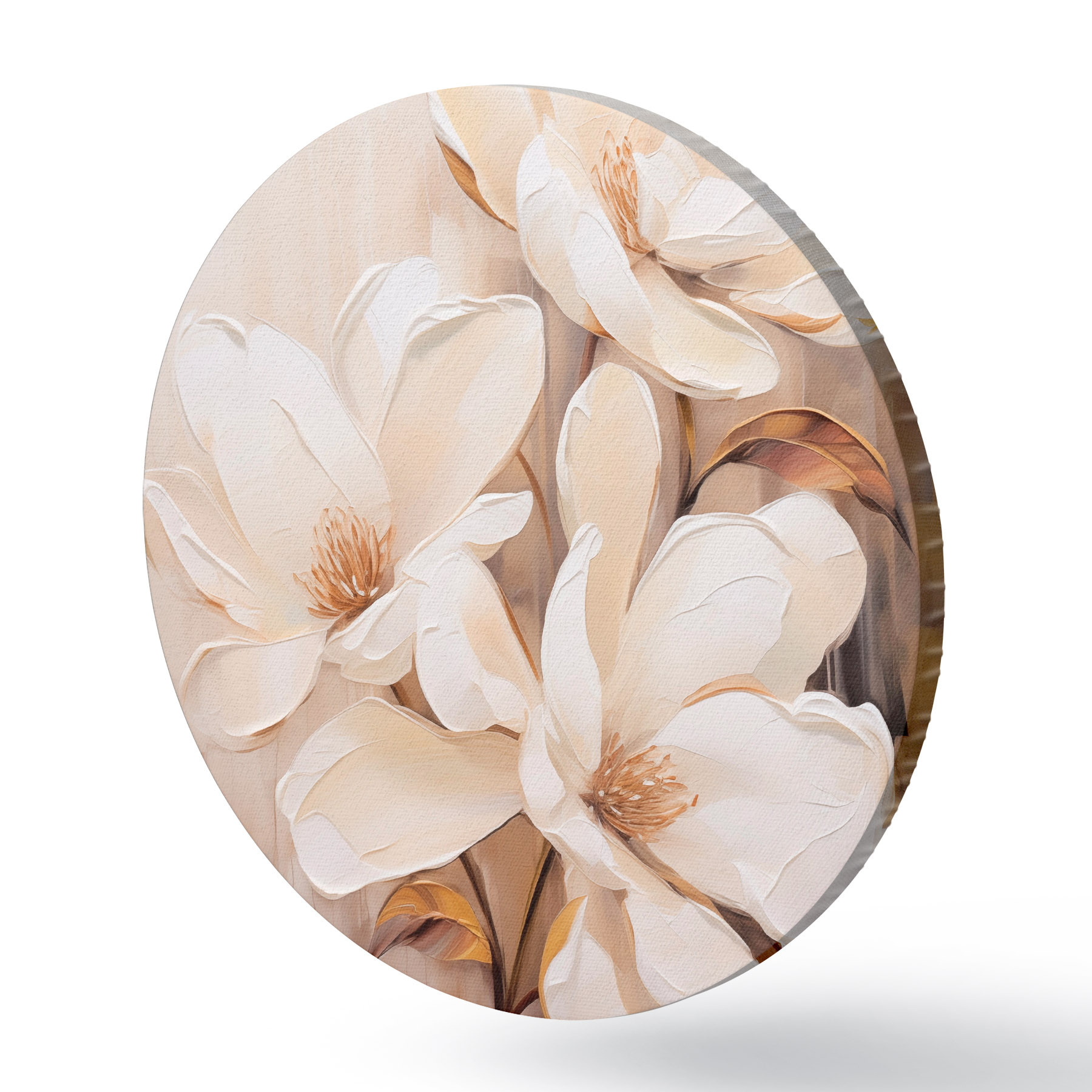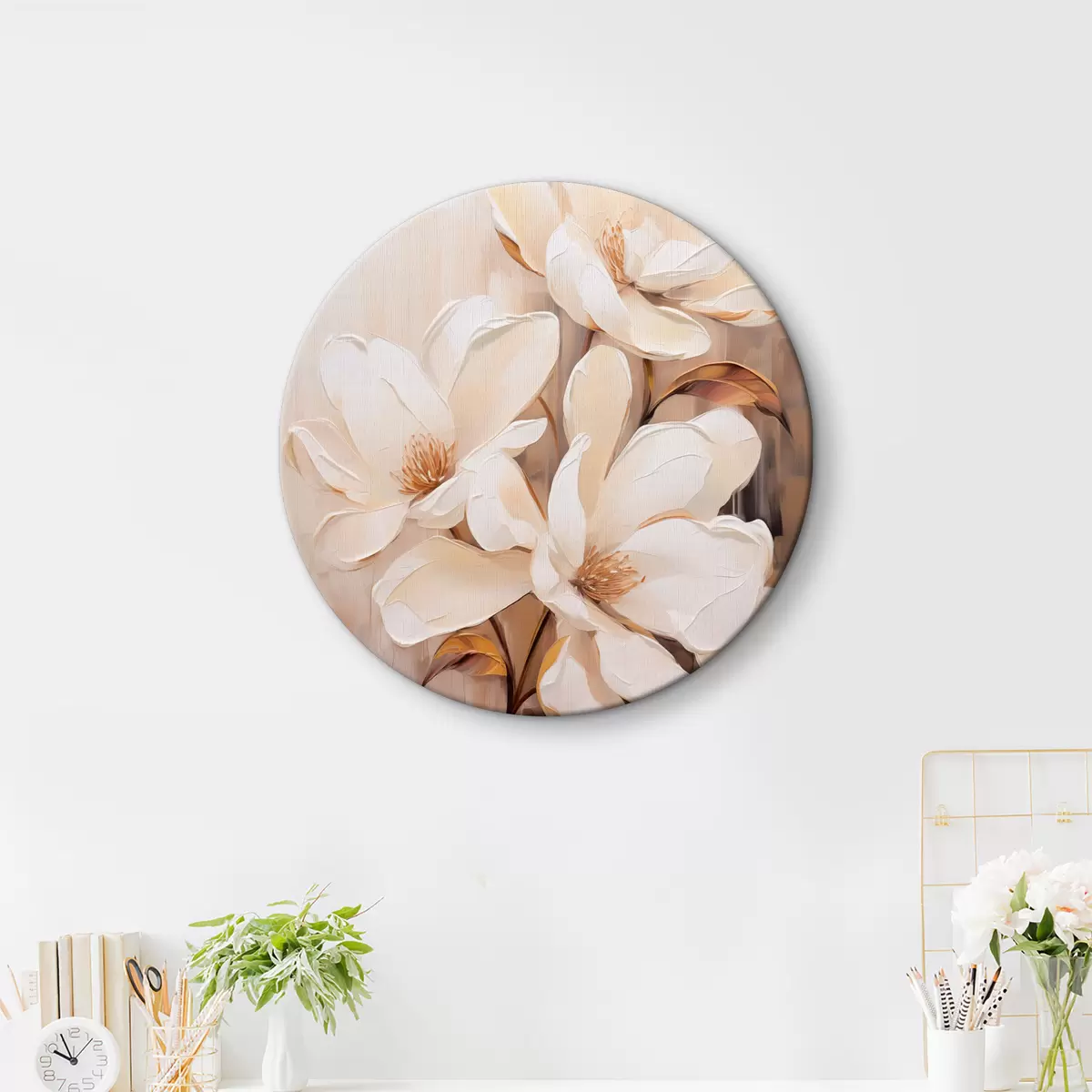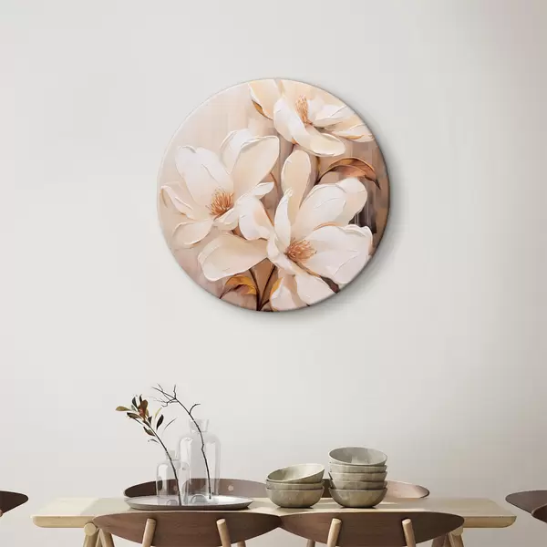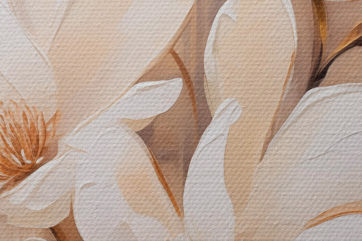 Obrázek Bílé květy magnólie na měkkém, rozostřeném pozadí v béžových a hnědých tónech, elegantní květinová kompozice Nr r45571