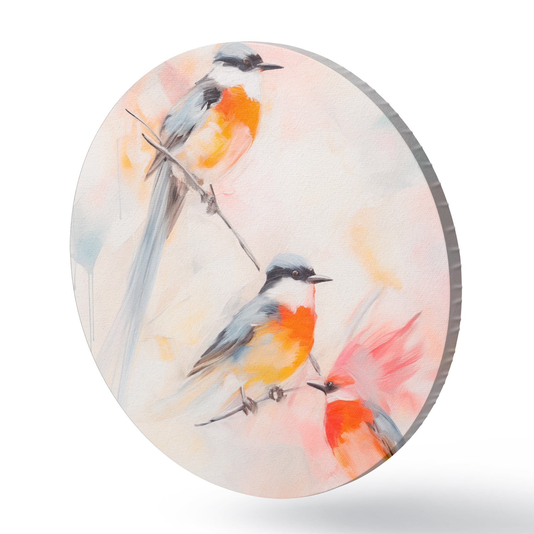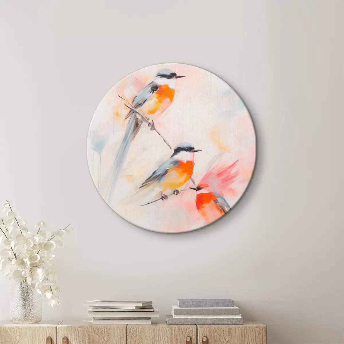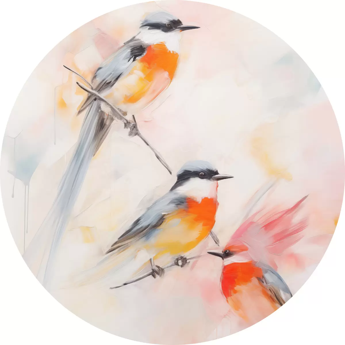 Obrázek Ptáci sedící na větvích , jemné pastelové barvy, světlé pozadí s růžovými a bílými odstíny Nr r45577