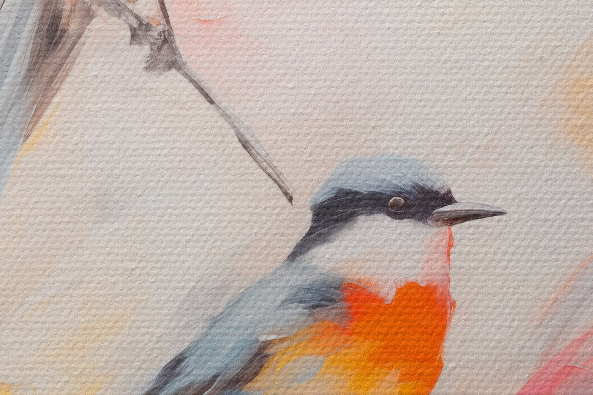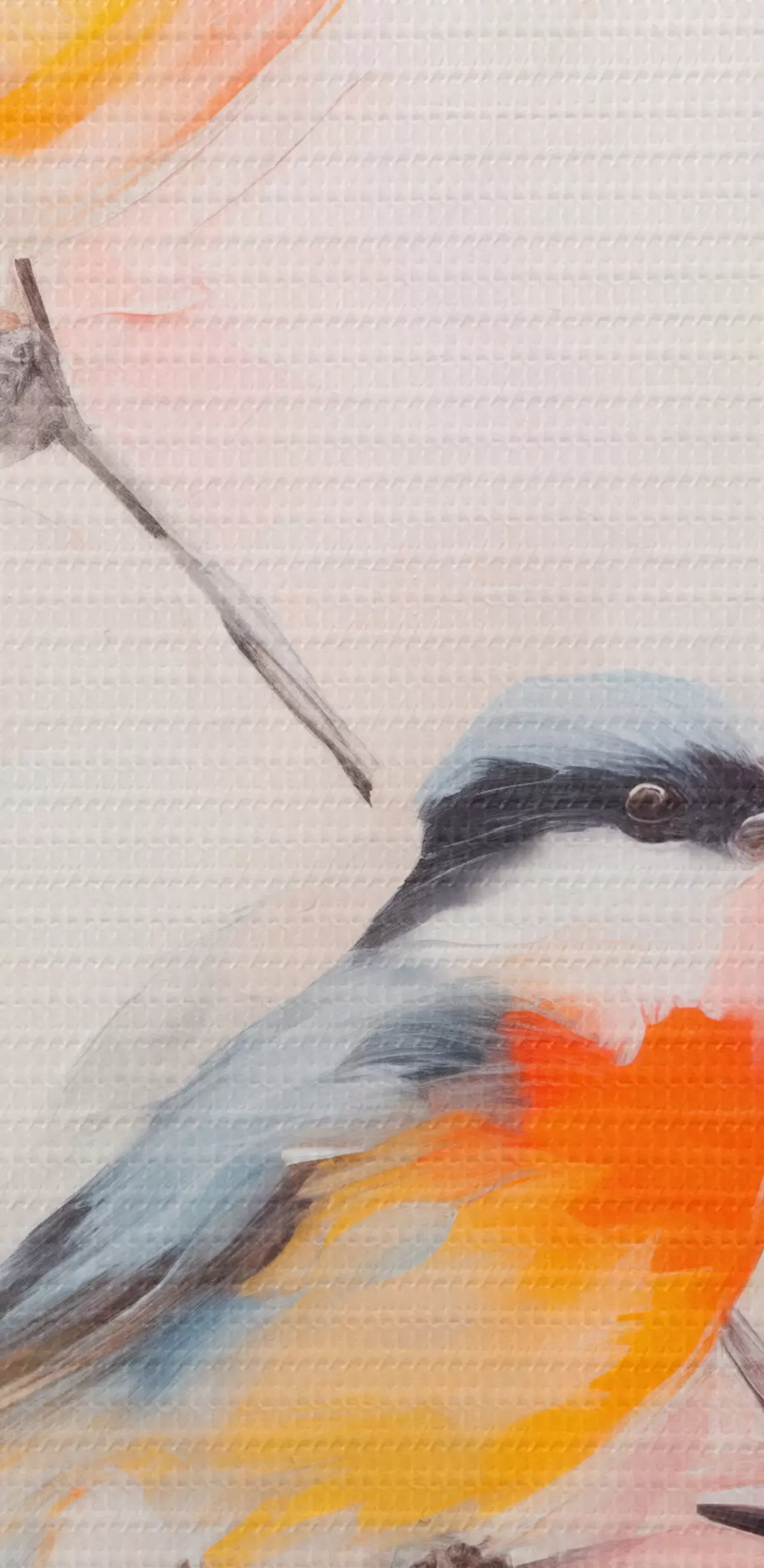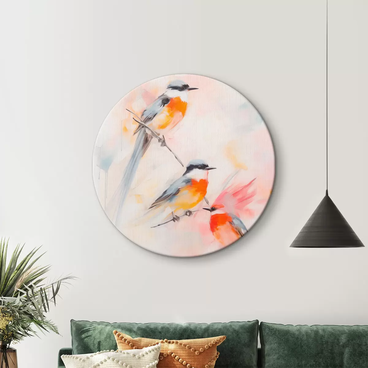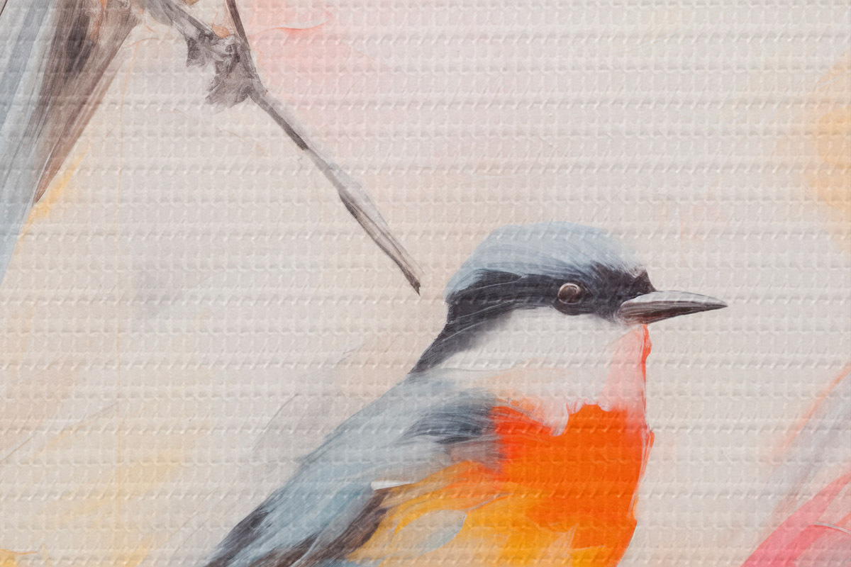 Obrázek Ptáci sedící na větvích , jemné pastelové barvy, světlé pozadí s růžovými a bílými odstíny Nr r45577