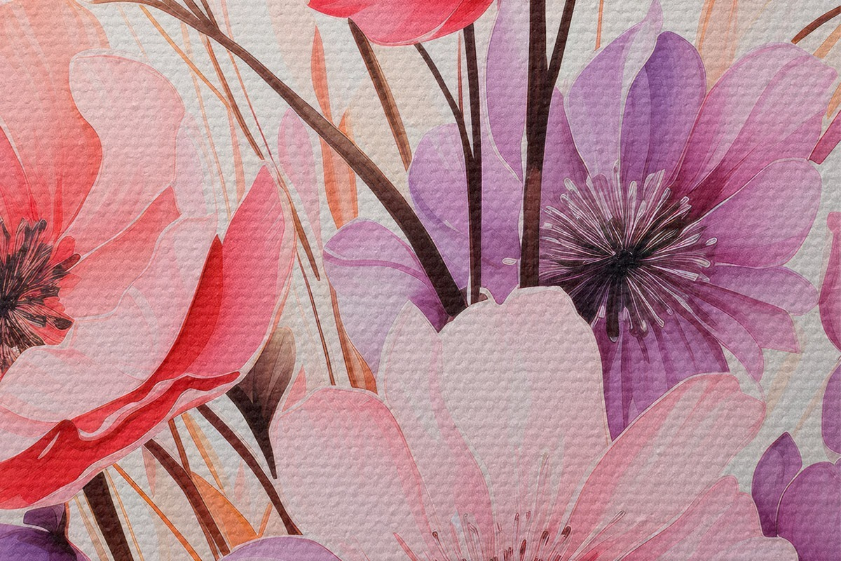 Obrázek Jemná kytice růžových a šeříkových máků na světlém pozadí, akvarelový styl Nr r45601