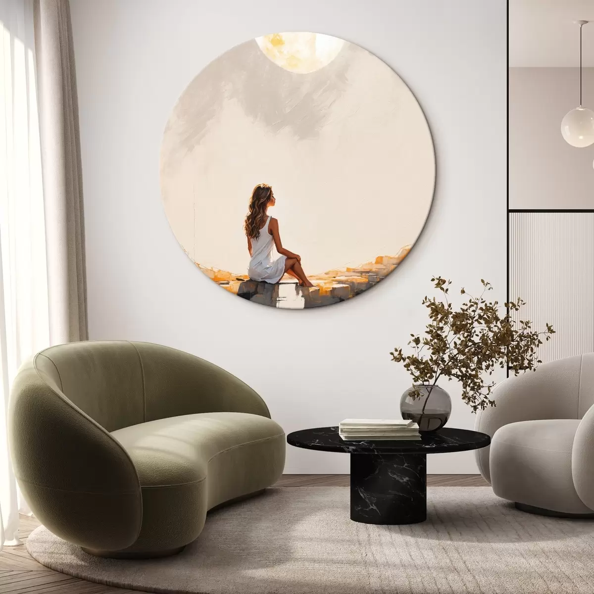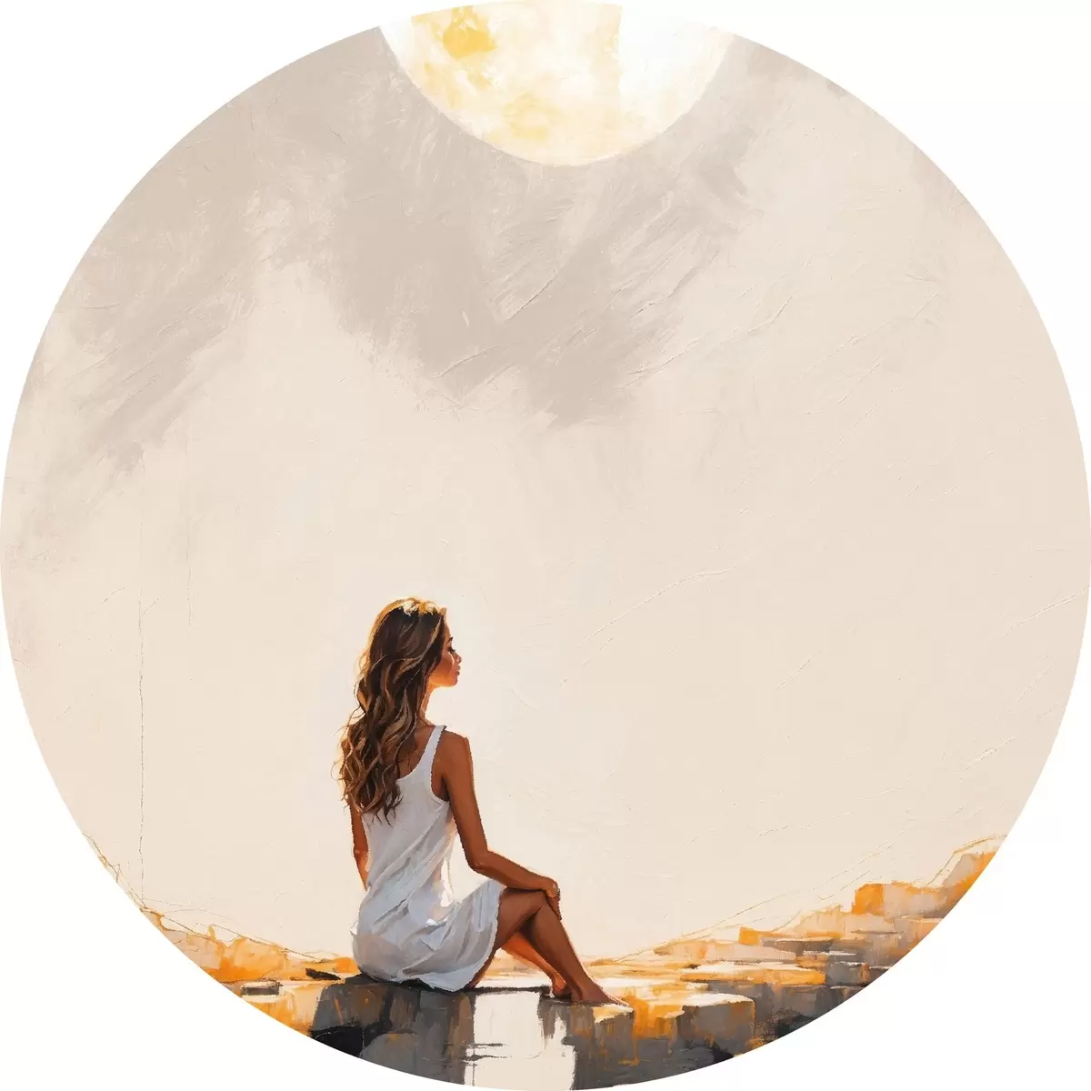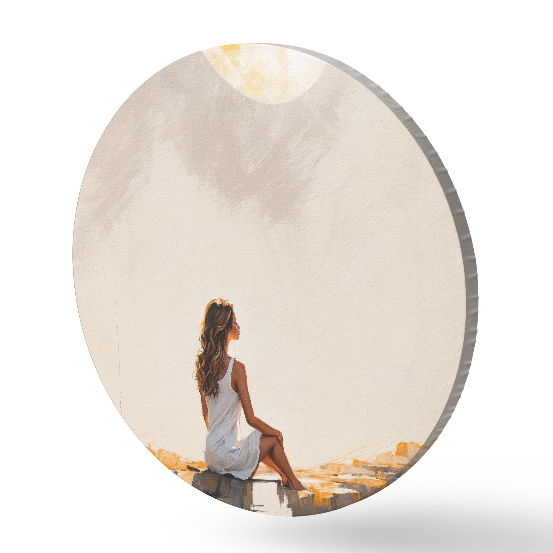 Obrázek Dívka v bílých šatech sedící pod velkým měsícem Nr r45621