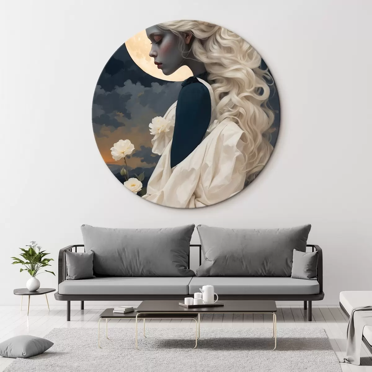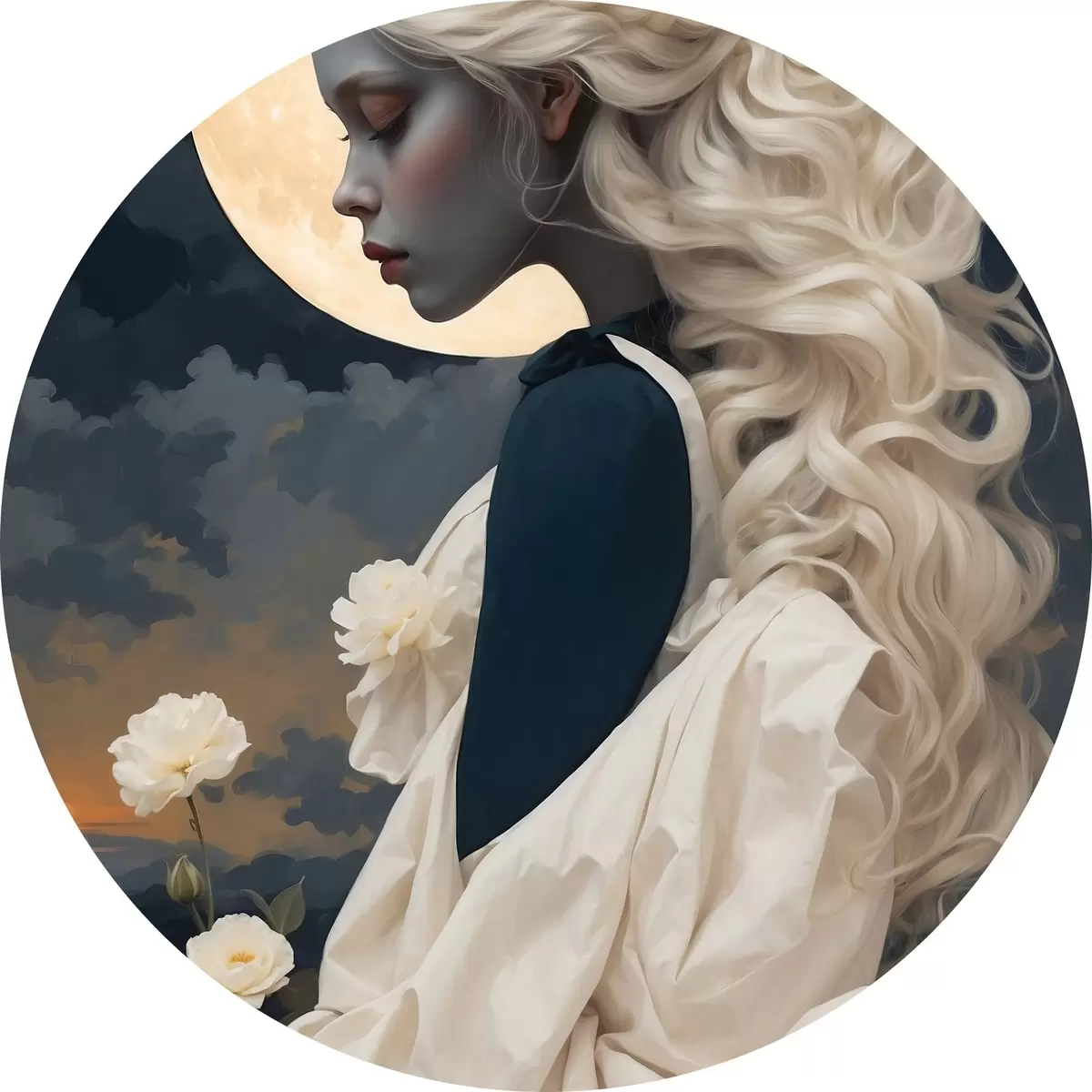 Obrázek Žena s bílými vlasy pod měsícem Nr r45622