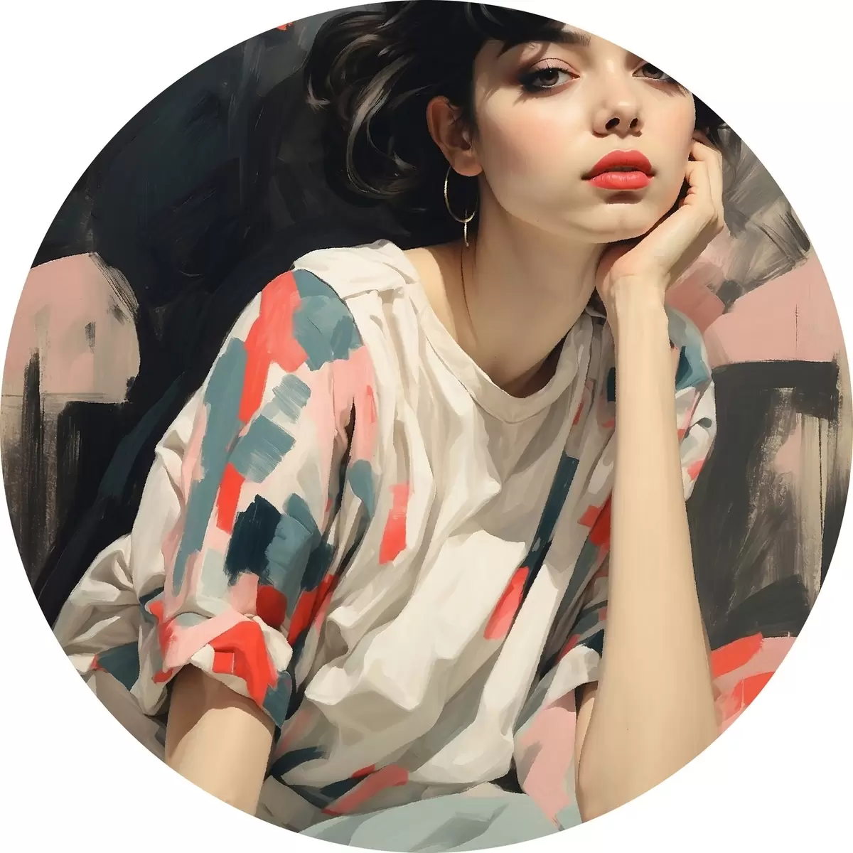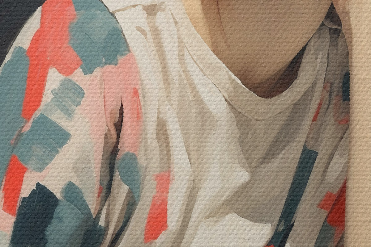 Obrázek Portrét dívky na pozadí s očima a abstraktními tahy Nr r45623