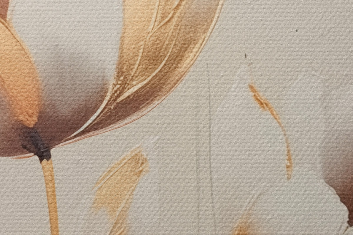K objednání jsou k dispozici tři typy materiálu: Economic Canvas - hustý a odolný materiál pro digitální tisk, identický s malířským plátnem, voděodolný povrch, realistická reprodukce detailů, středně zrnitý materiál. Prémiové plátno - struktura připomíná malířské plátno (proplétané drobné nitě). Měkká, detailní reprodukce obrazu na matném povrchu. Eco-Premium - vysoce kvalitní tkanina ze 100% bavlny. Díky přírodním bavlněným vláknům je materiál trvanlivý a odolný proti opotřebení. Vynikající reprodukce barev a detailů.