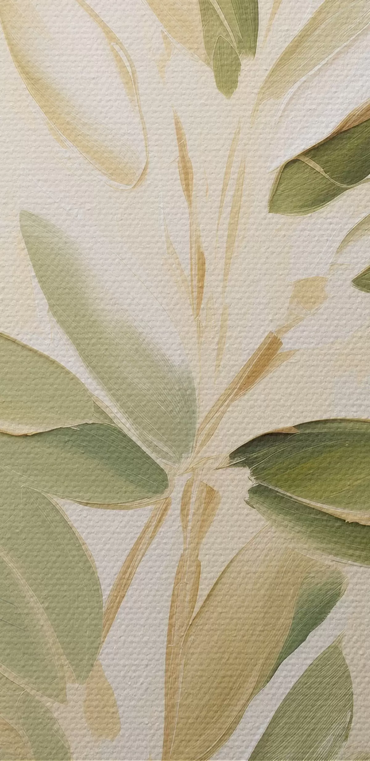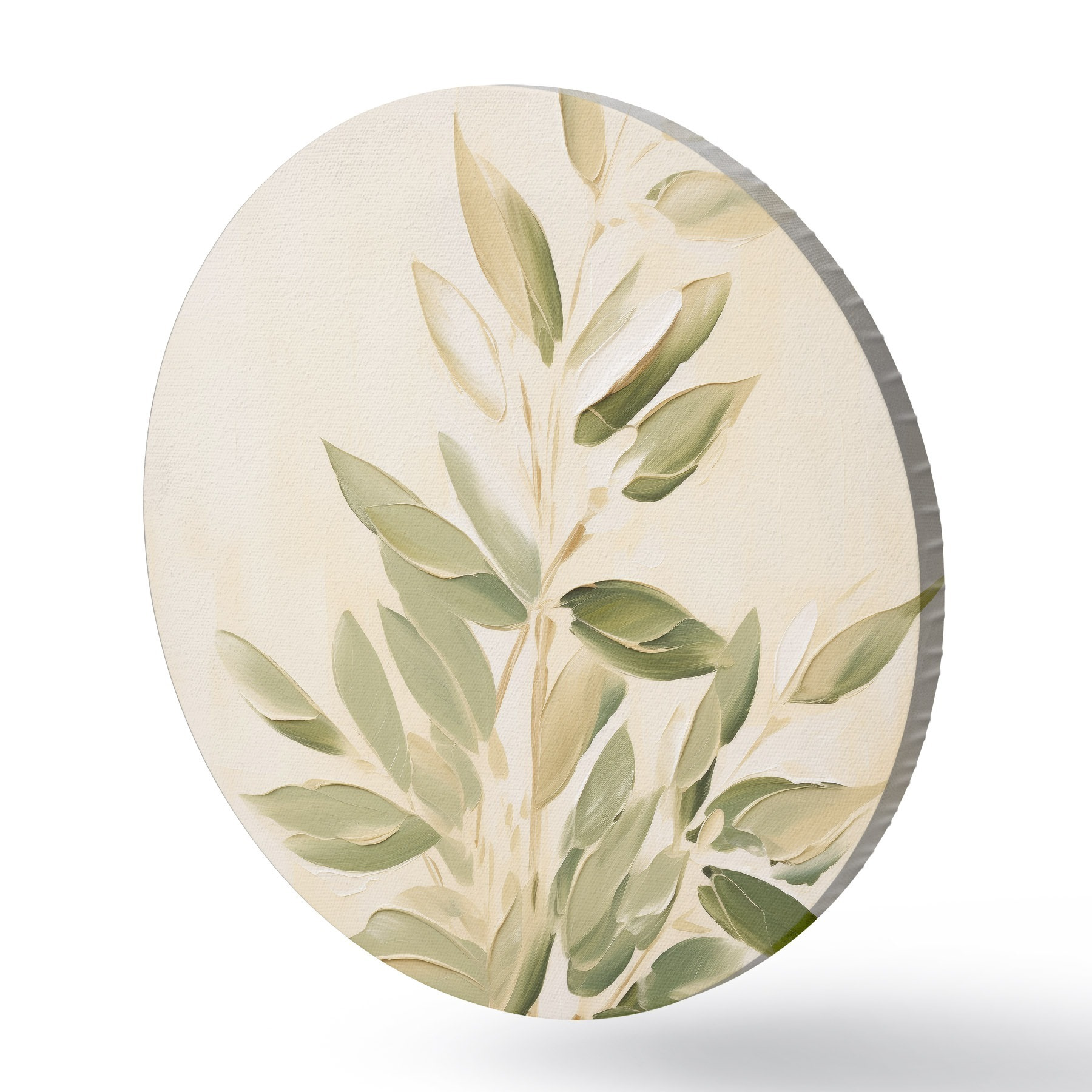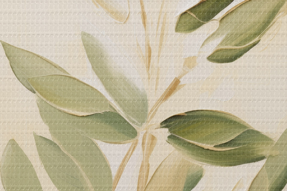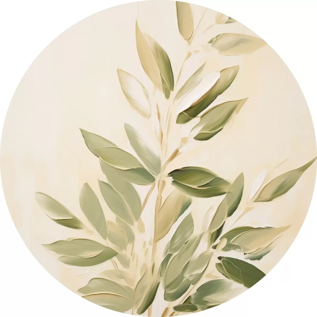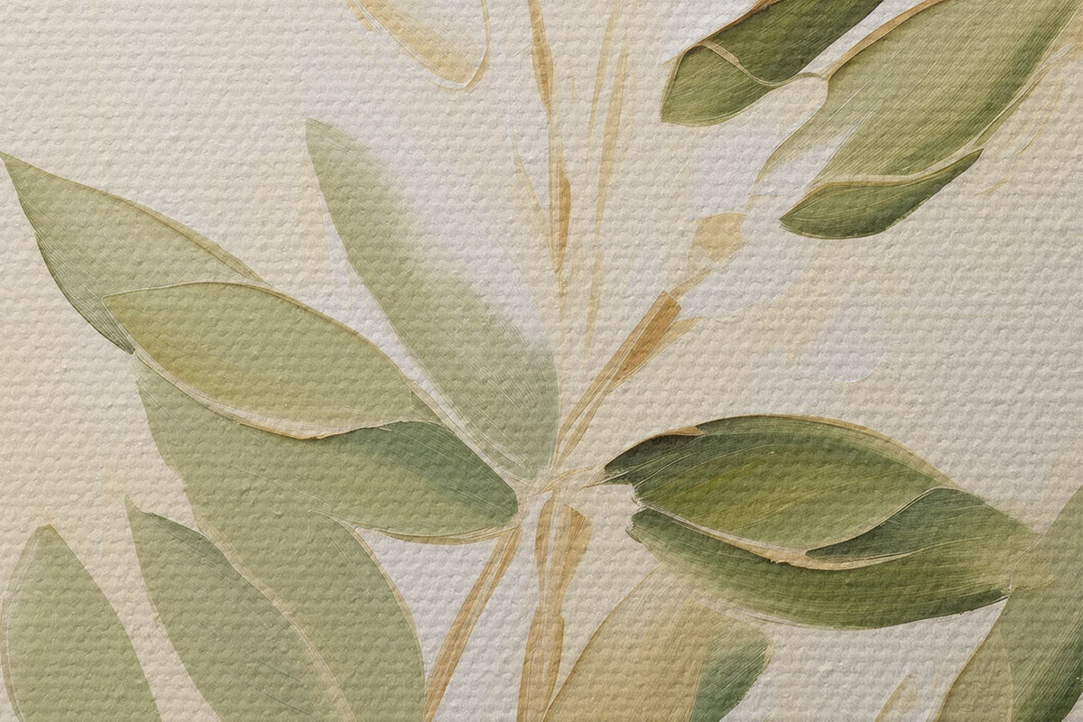 Obrázek Větev se zelenými listy na světle béžovém pozadí Nr r45689