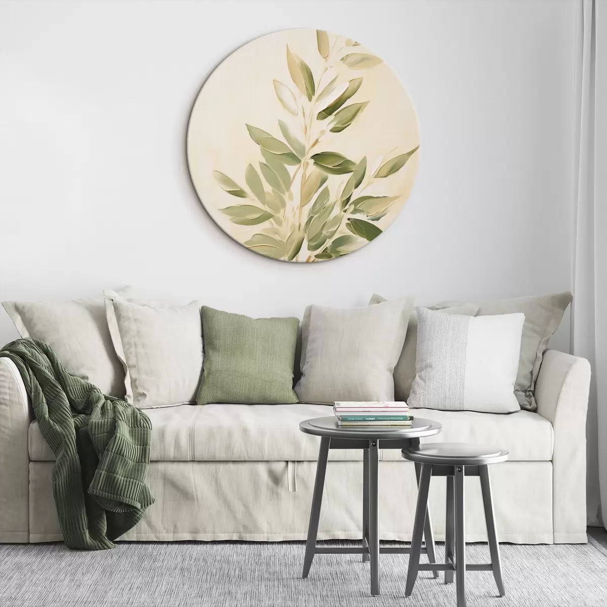 Obrázek Větev se zelenými listy na světle béžovém pozadí Nr r45689