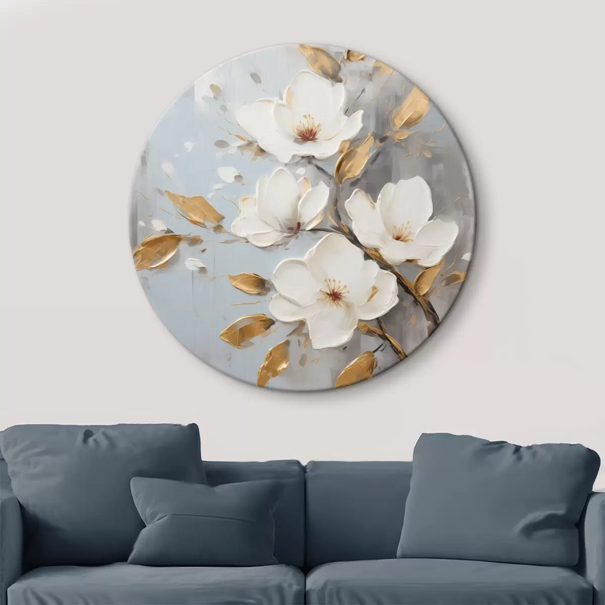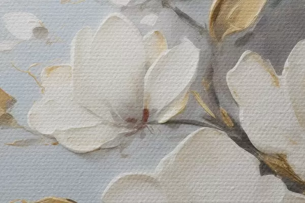 Obrázek Větev s bílými květy a žlutooranžovými listy Nr r45692