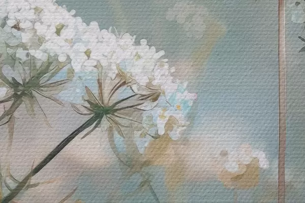 Obrázek Květiny Queen Anne's Lace v akvarelovém stylu na modrém pozadí Nr r45721