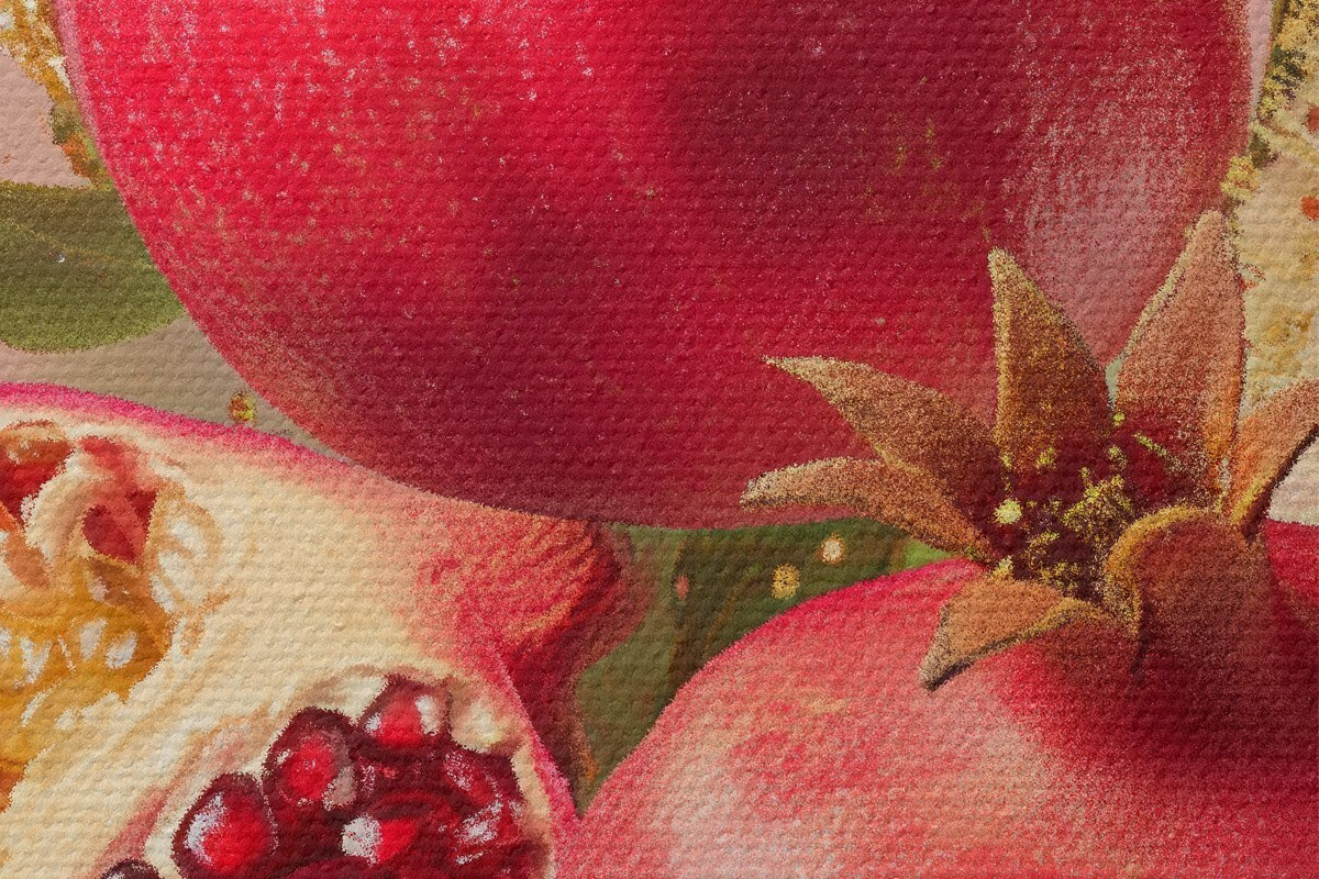 Obrázek Zralé granáty на růžovém pozadí s listy і skvrnami Nr r45868