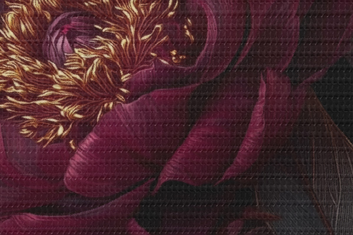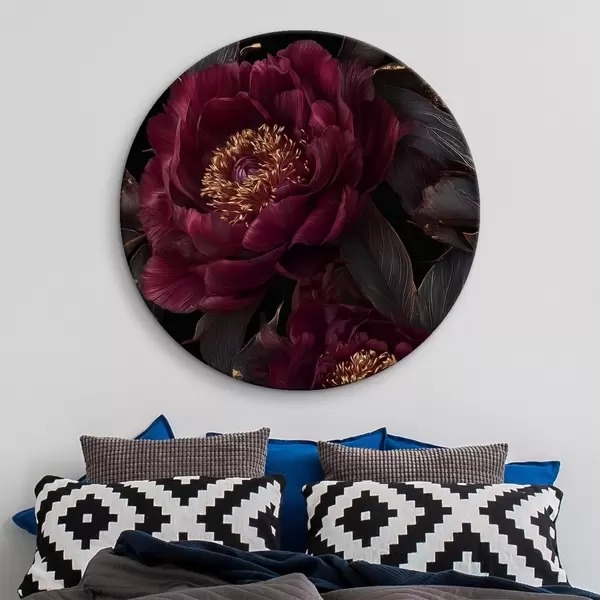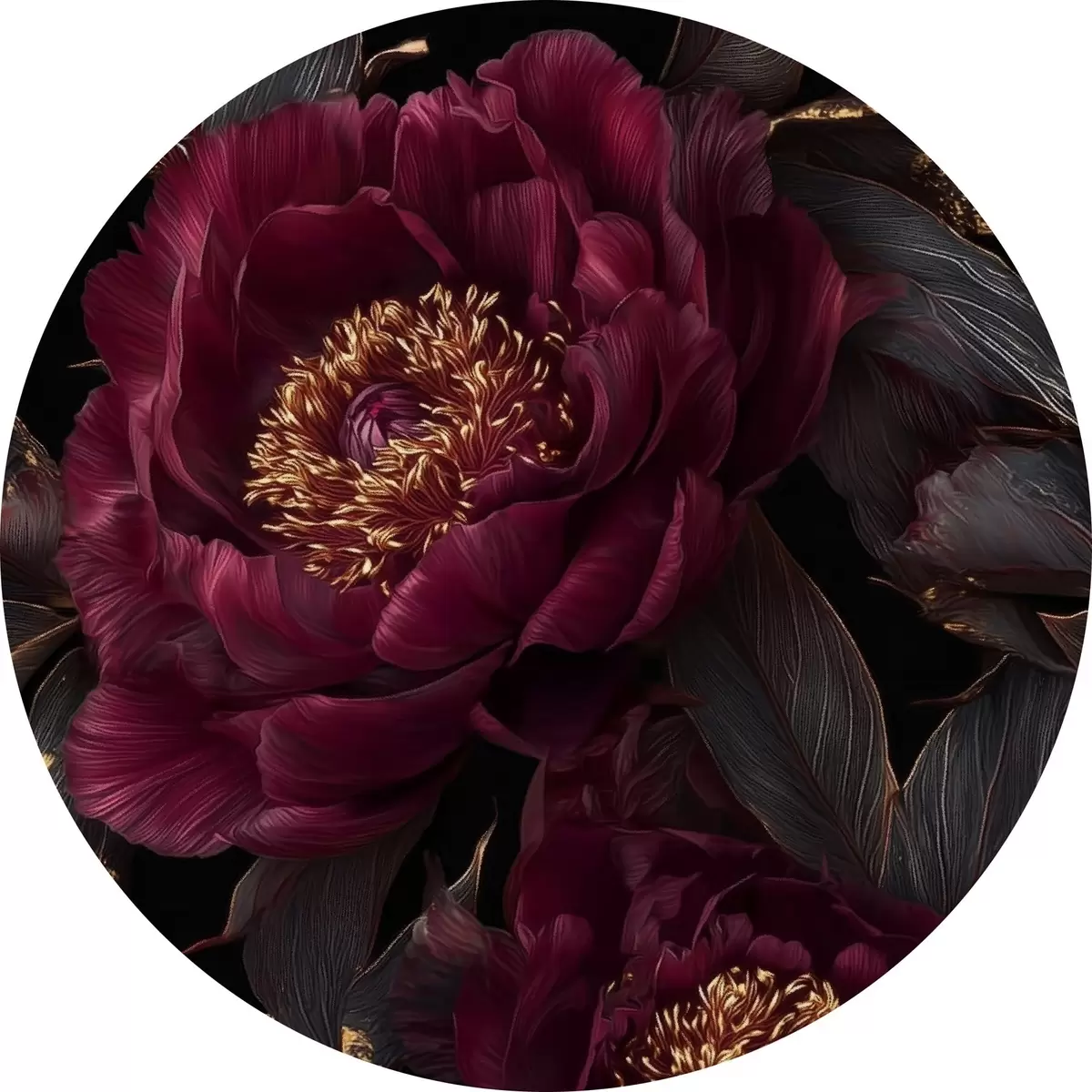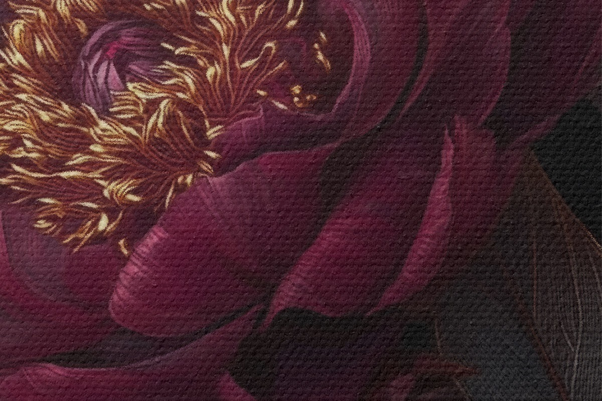 Obrázek Burgundské pivoňky na černém pozadí se žlutými akcenty Nr r45877
