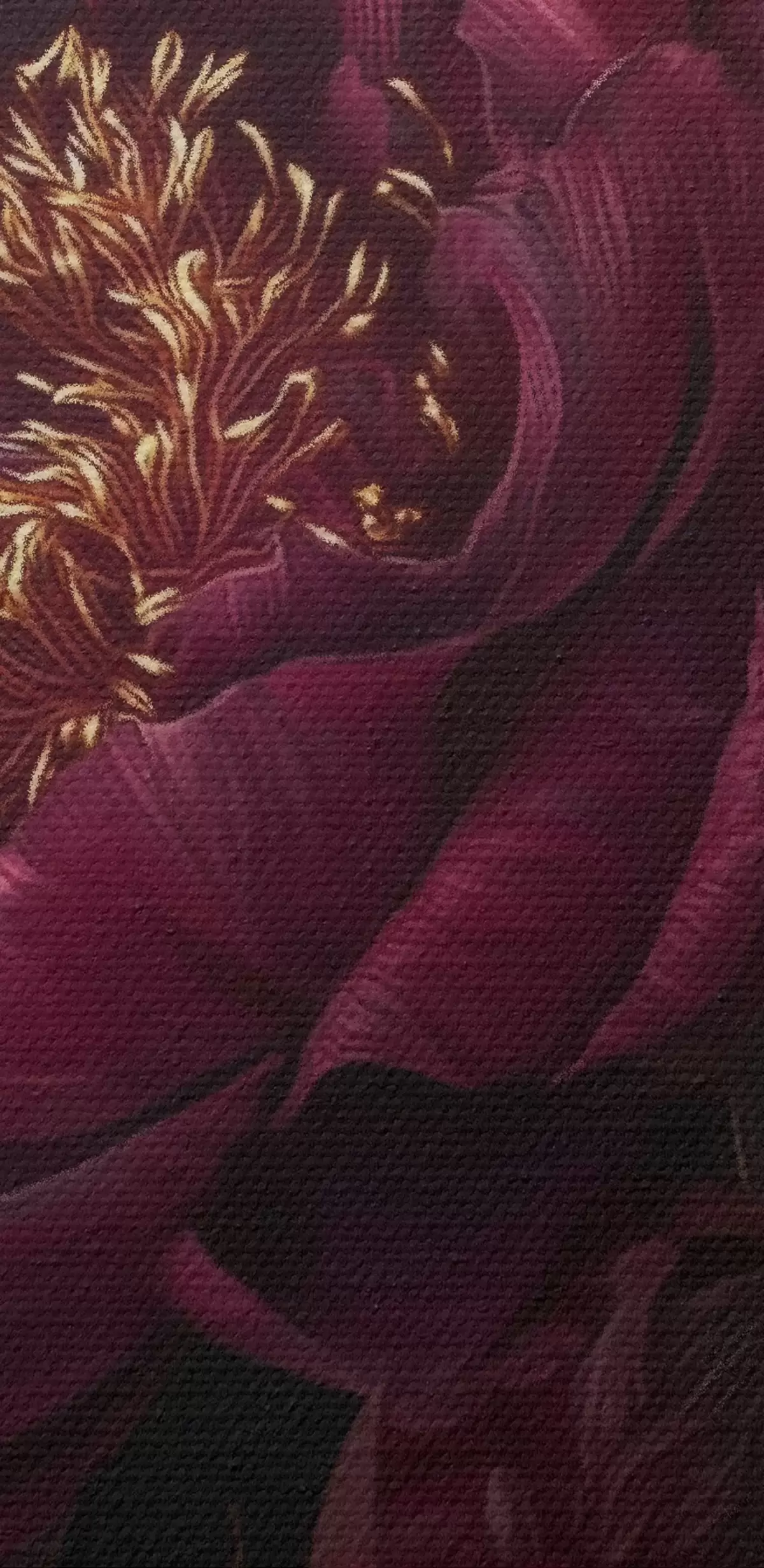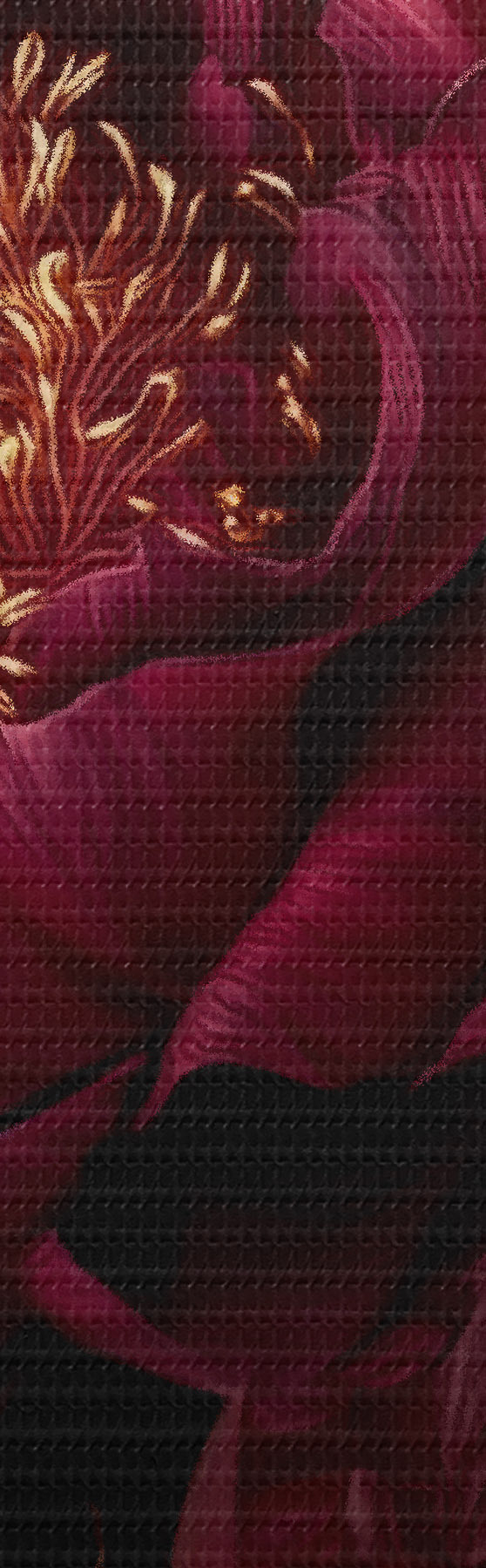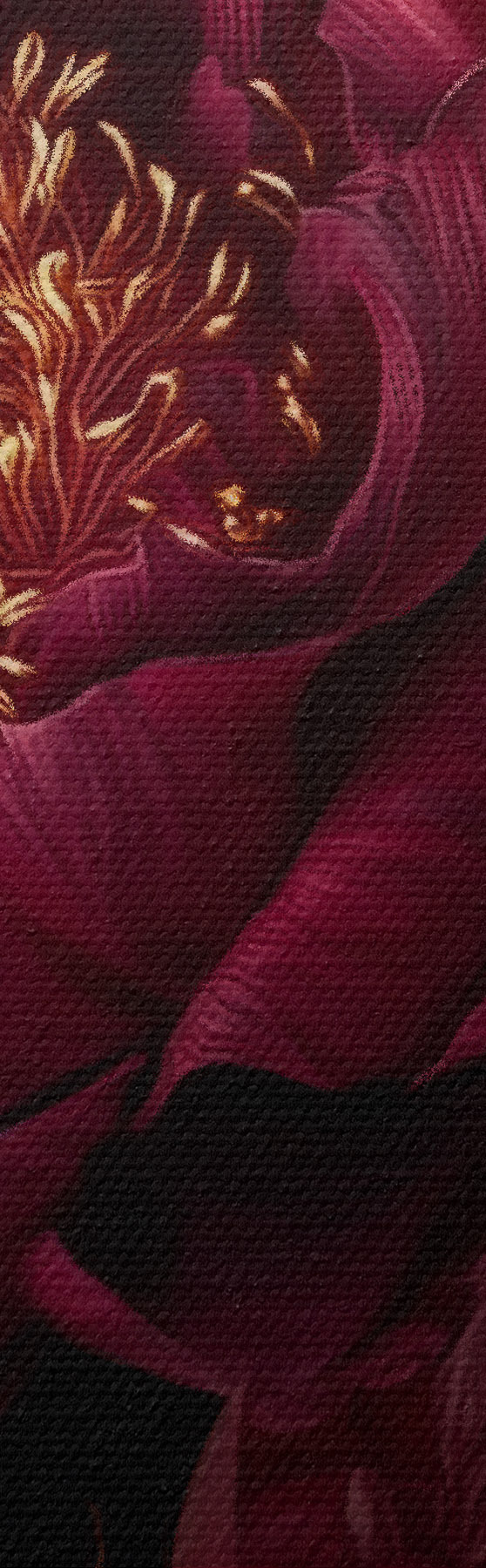Obrázek Burgundské pivoňky na černém pozadí se žlutými akcenty Nr r45877