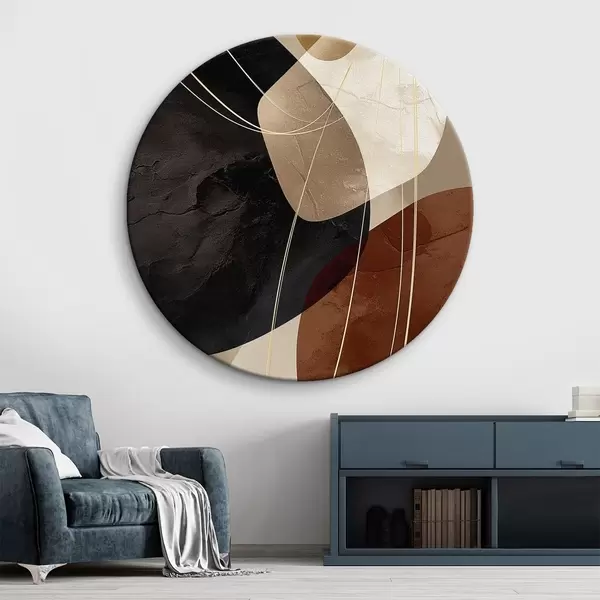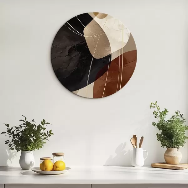 Kulaté obrazy Geometrické tvary v teplé barevné paletě, jemné linie r45879