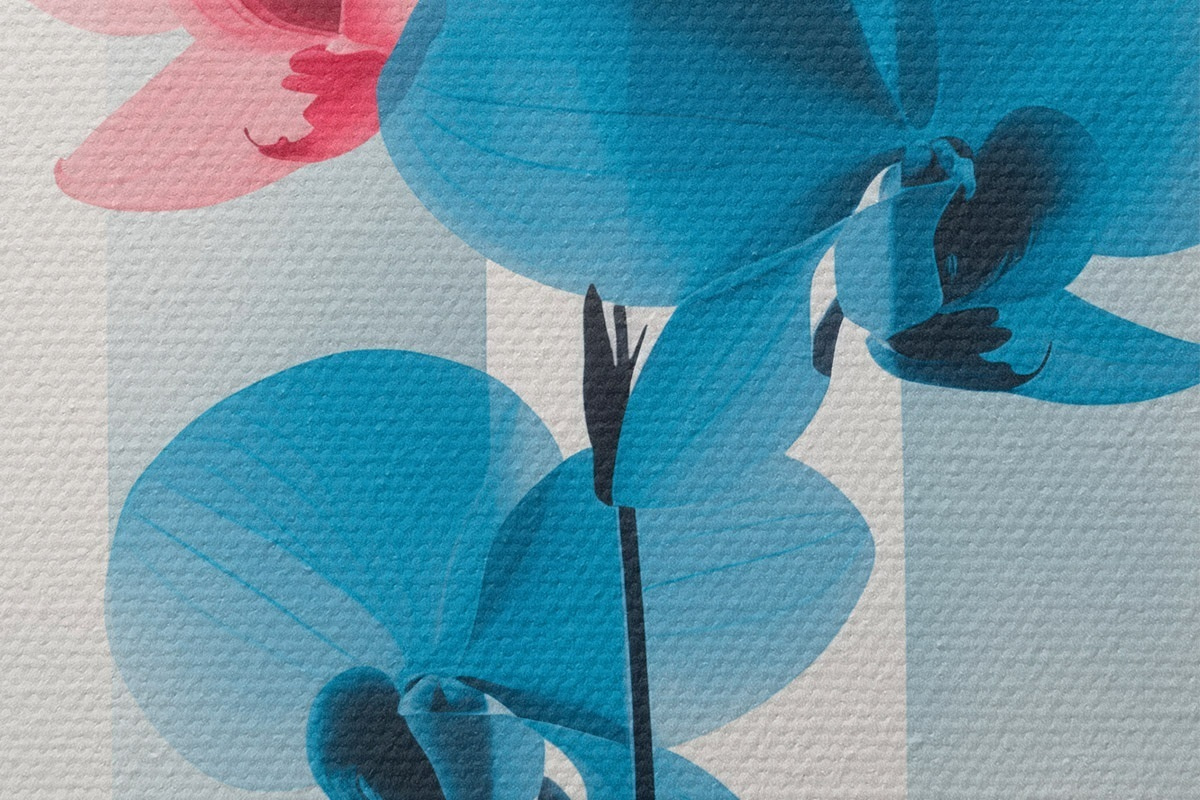 Obrázek Orchideje s listy na bílém pozadí s vertikálními pruhy Nr r45925