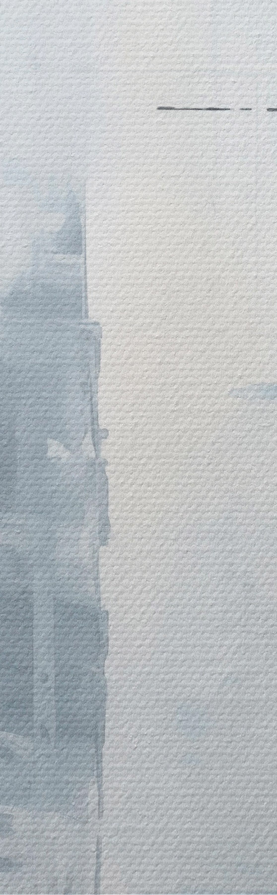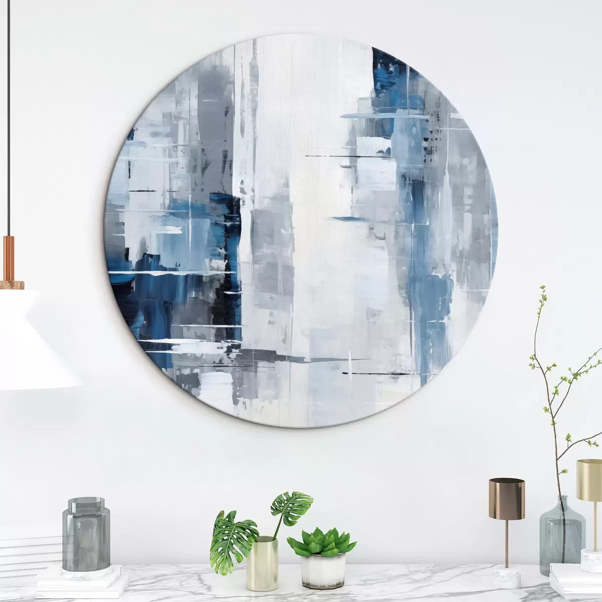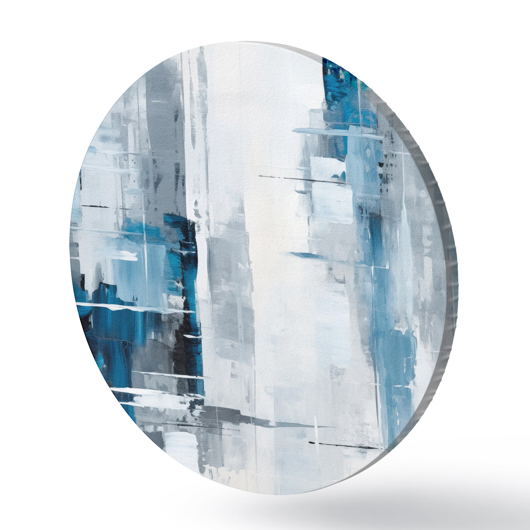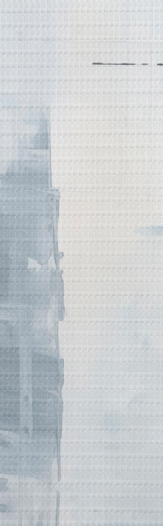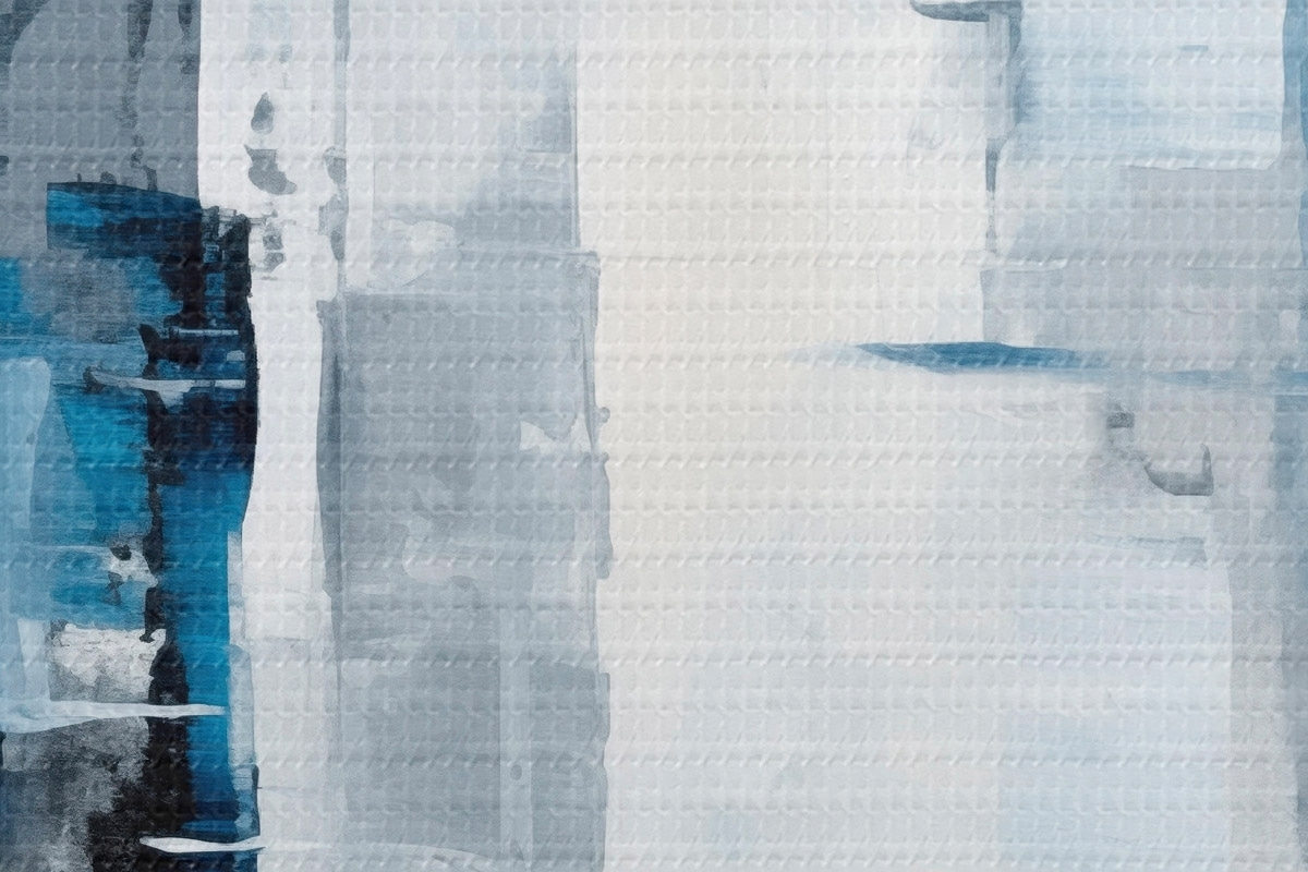 Obrázek Abstraktní malba imitující modrou, šedou a bílou barvu, svislé čáry a geometrické tvary Nr r45926