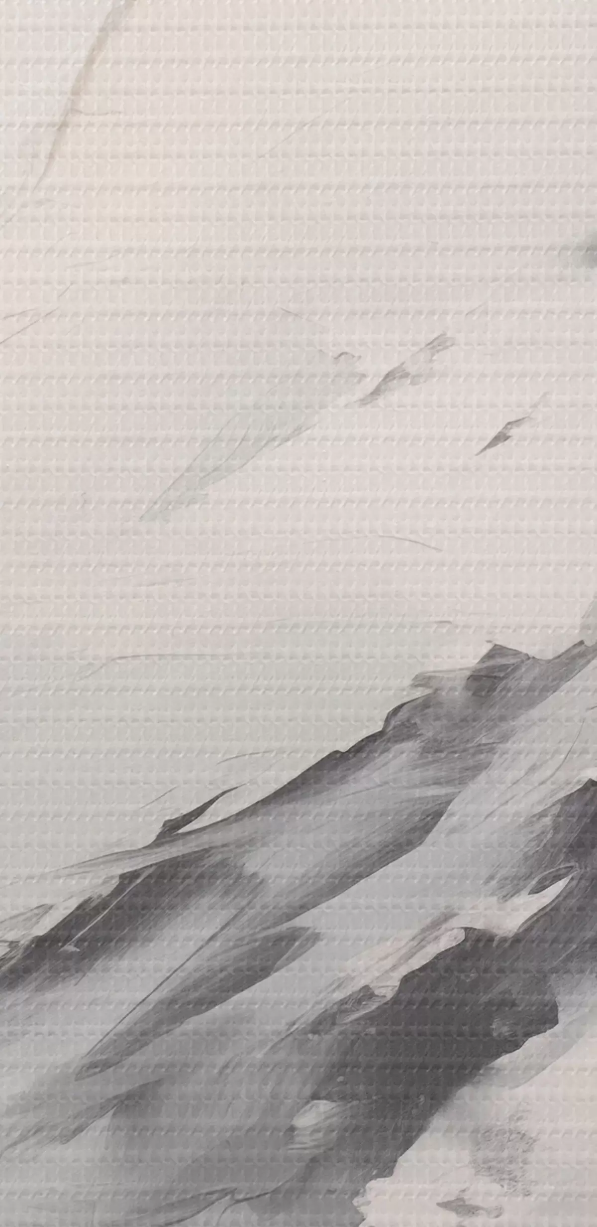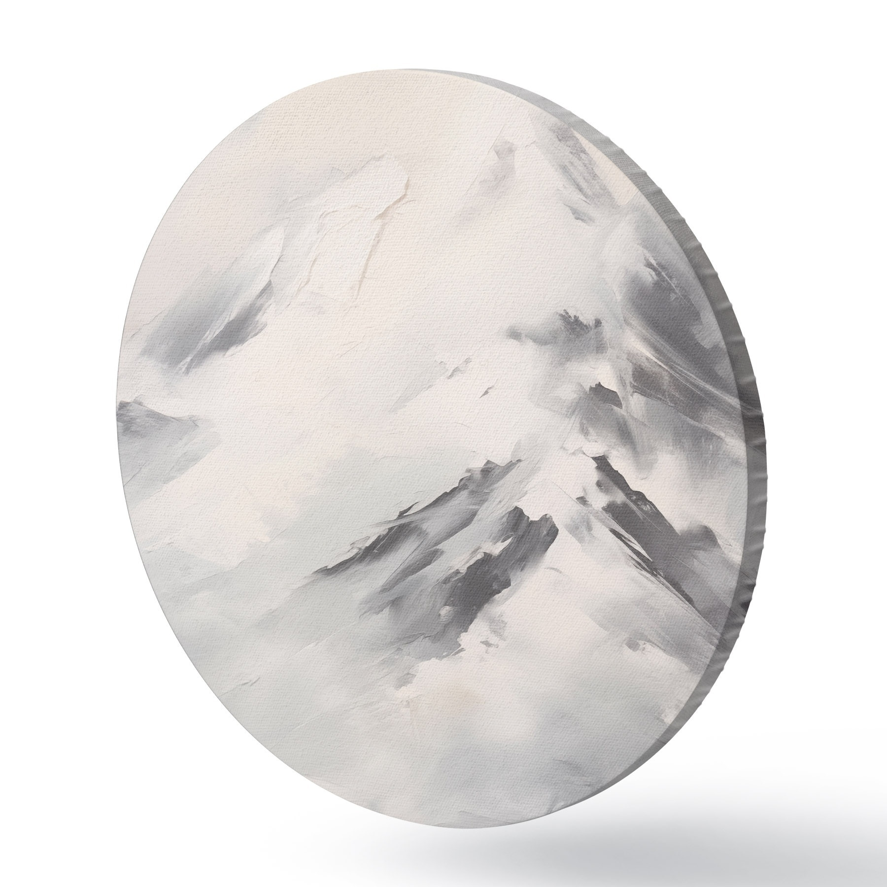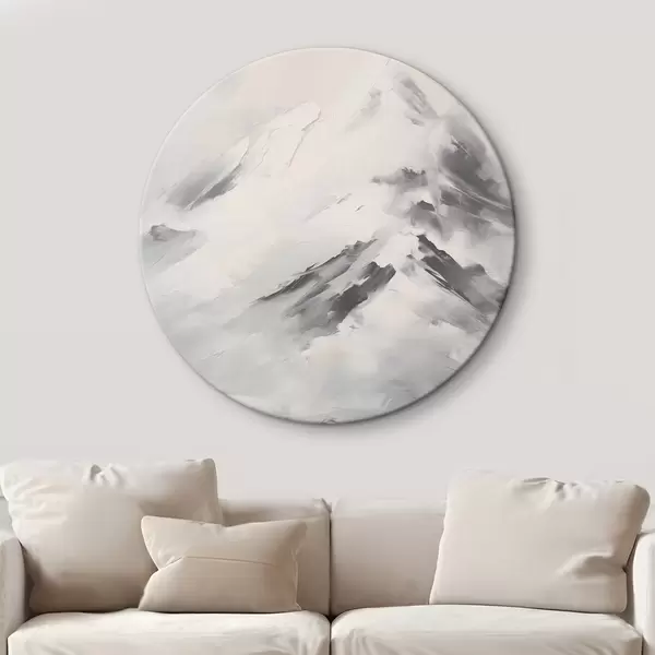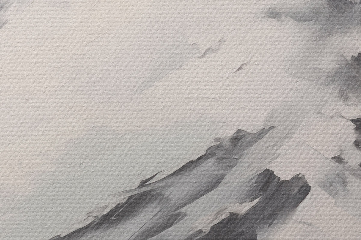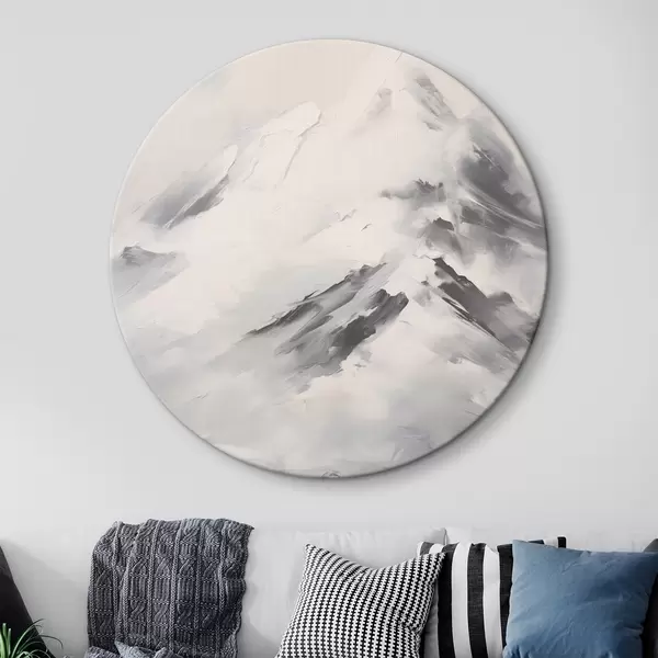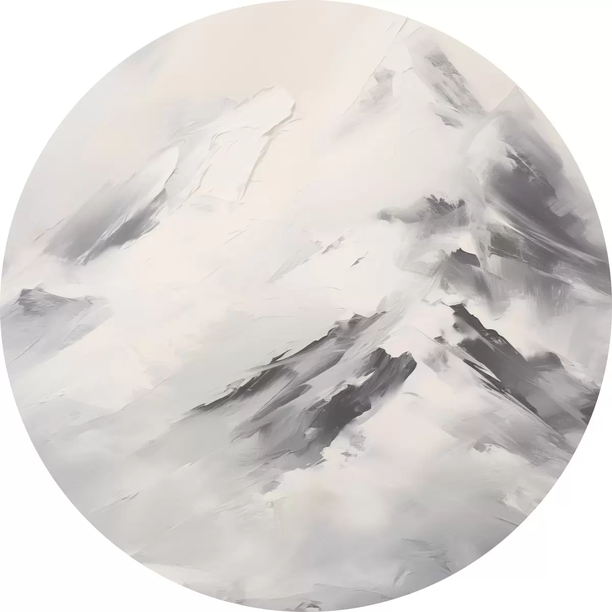 Obrázek Zasněžené horské vrcholy se šedými stíny, šedá obloha, tahy štětcem, texturované, minimalistické Nr r45932