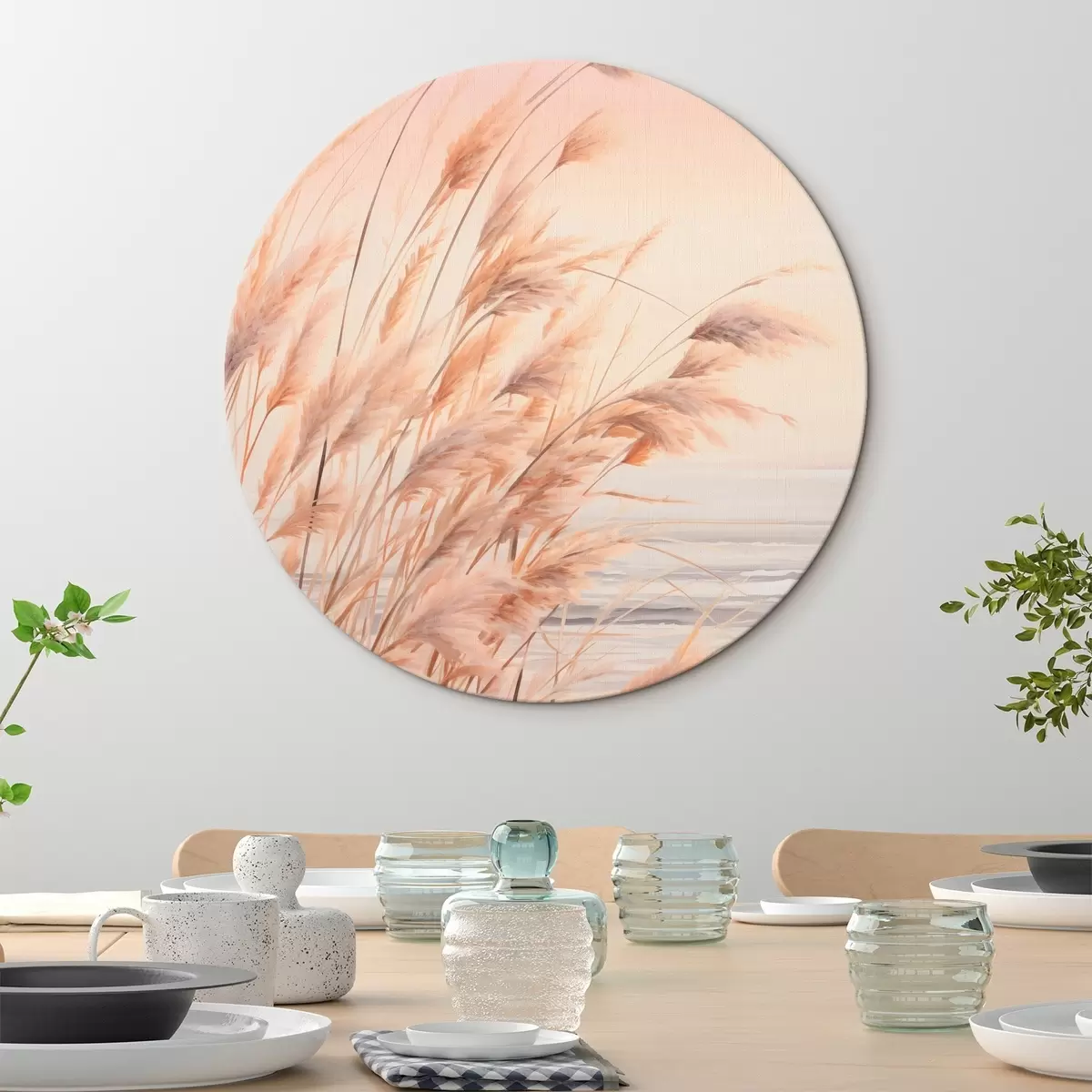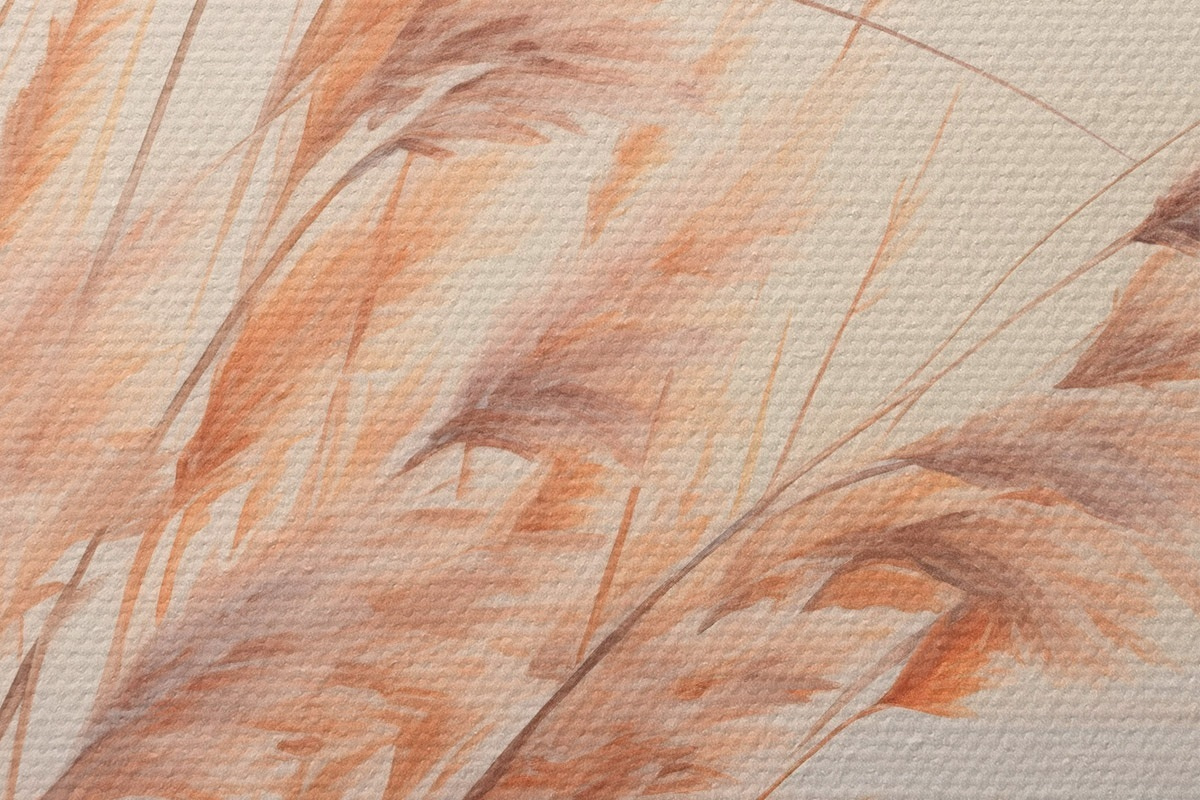 Obrázek Pampová tráva v pastelových oranžových barvách, světle růžová obloha, klidná krajina Nr r45934