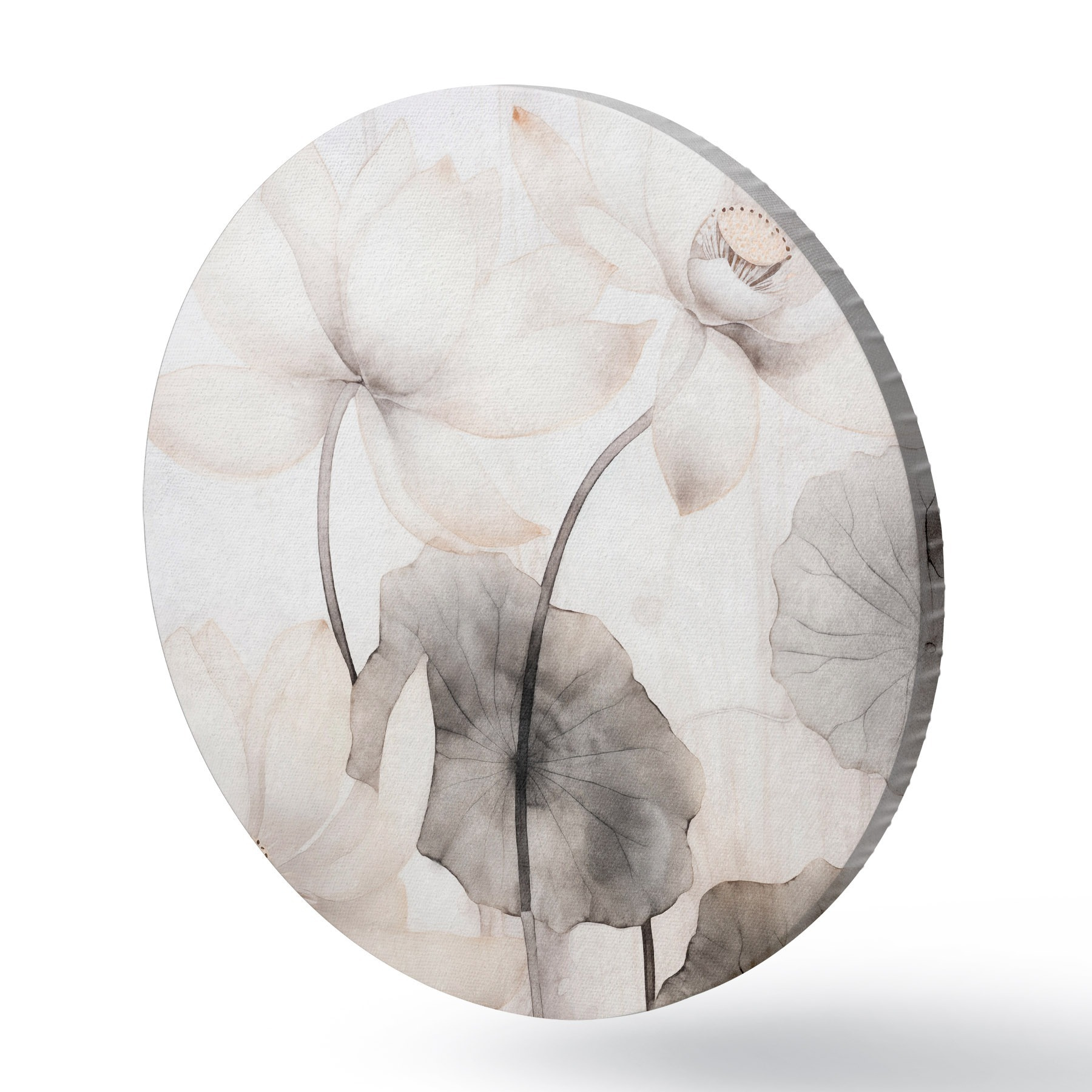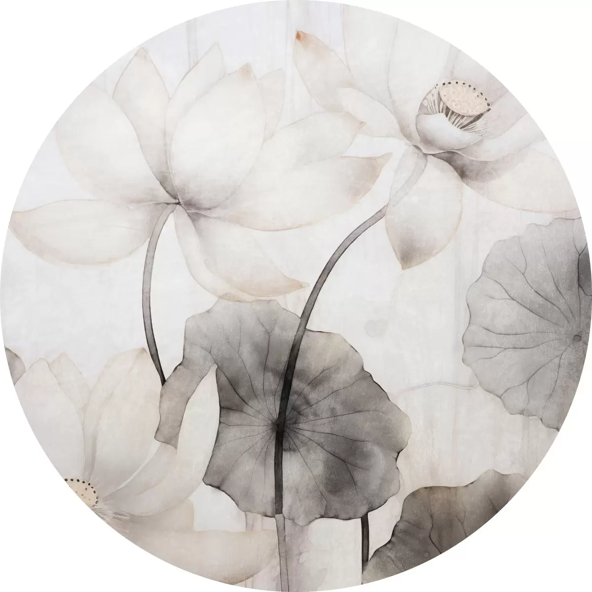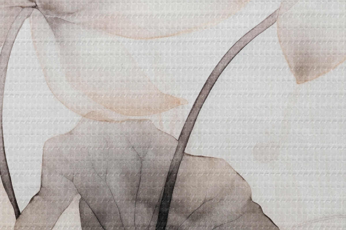 Obrázek Bílé texturované lotosové květy s tmavými listy, světlé pozadí, minimalistický design Nr r45937