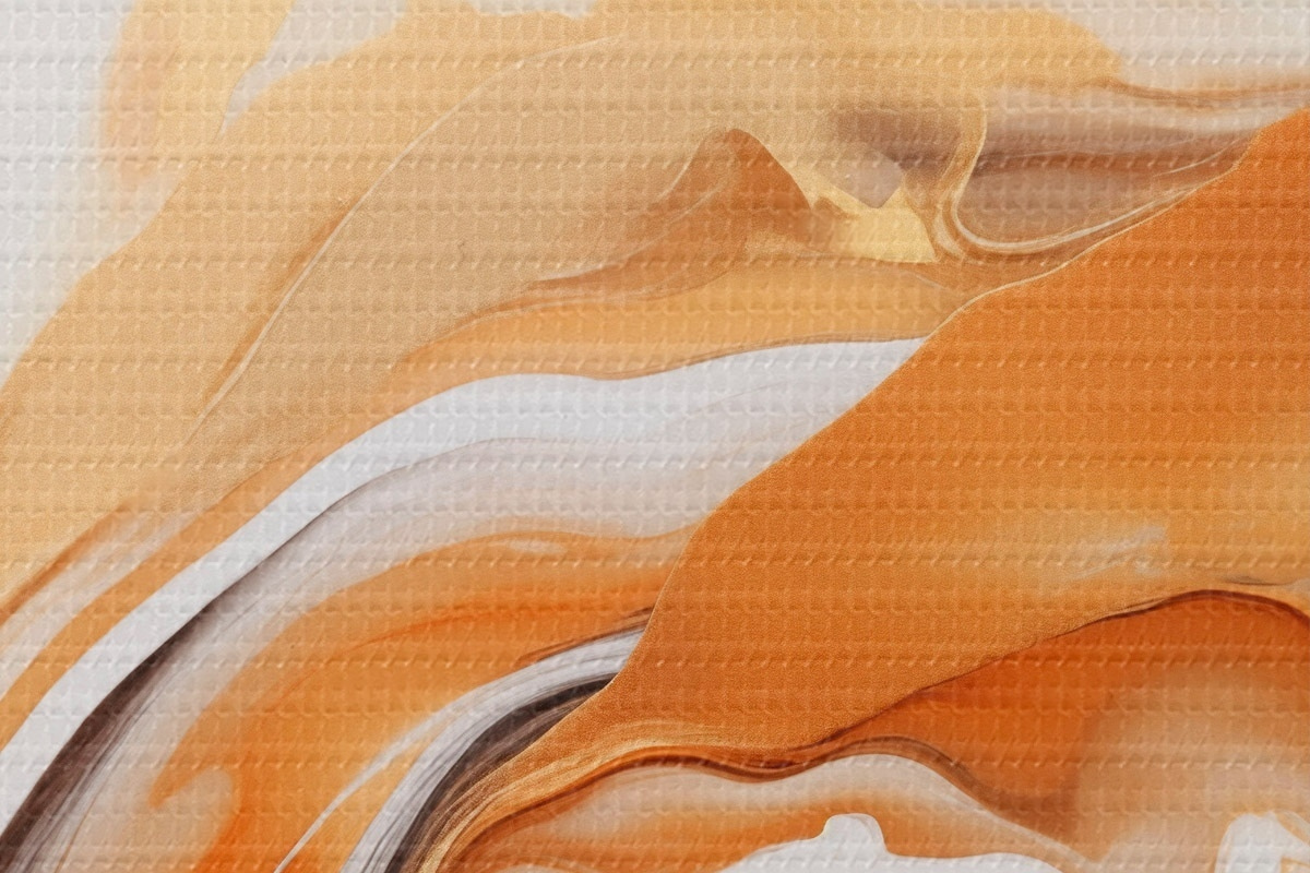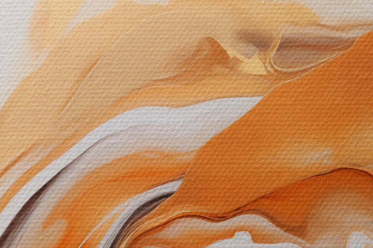Obrázek Abstraktní malba s plynulými tvary v odstínech bílé, oranžové a hnědé, minimalistická Nr r45938
