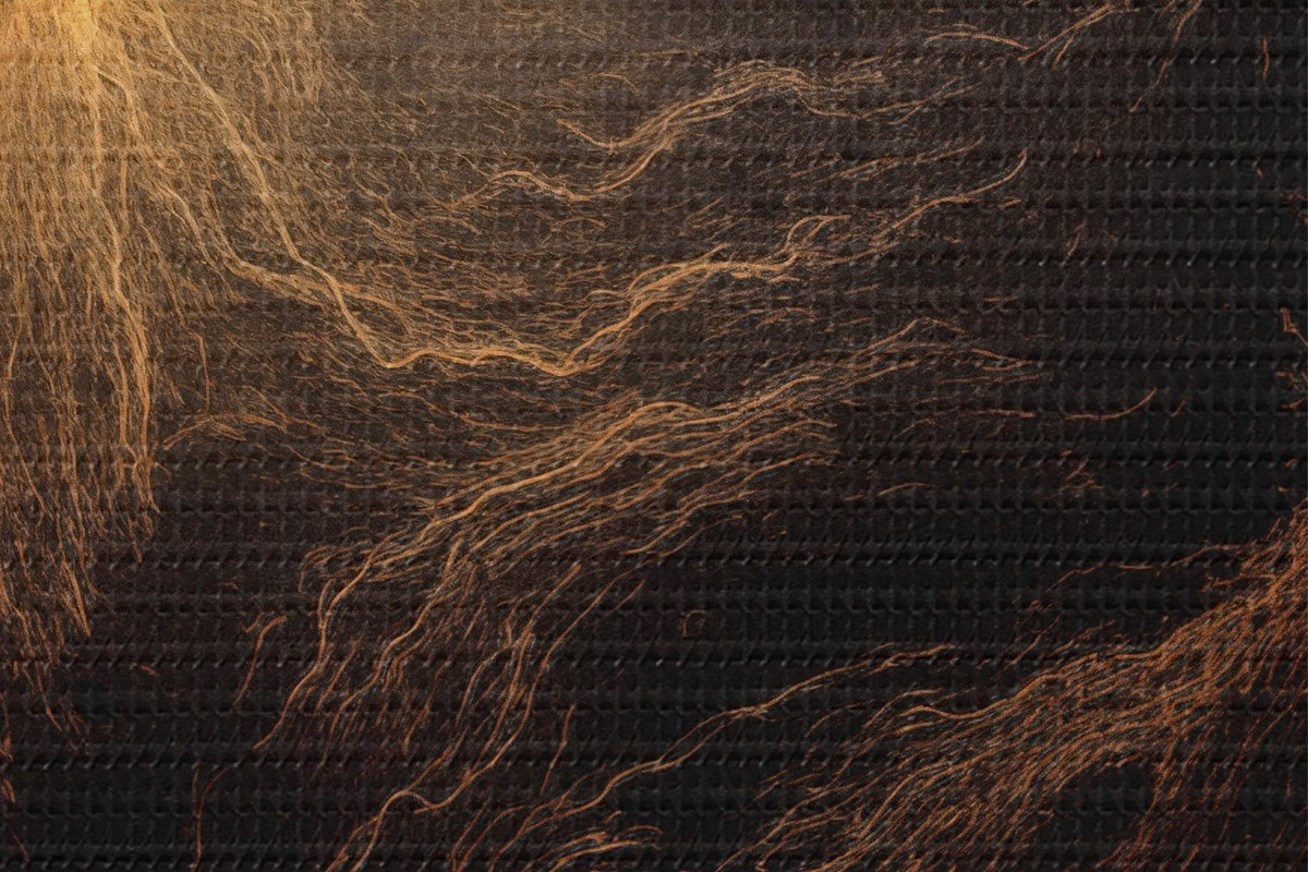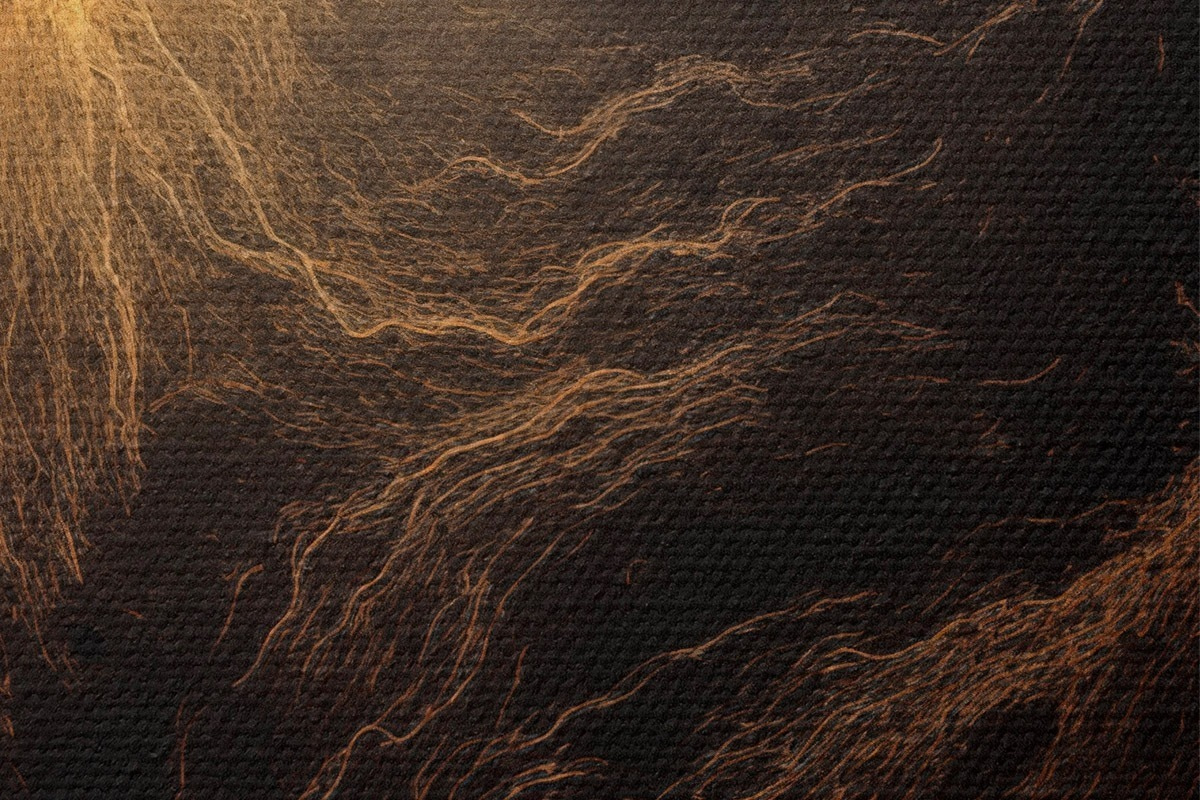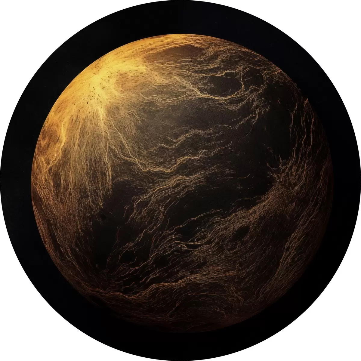 Obrázek Abstraktní planeta s oranžovými žilkami na černém vesmírném pozadí, moderní minimalistické umění Nr r45943