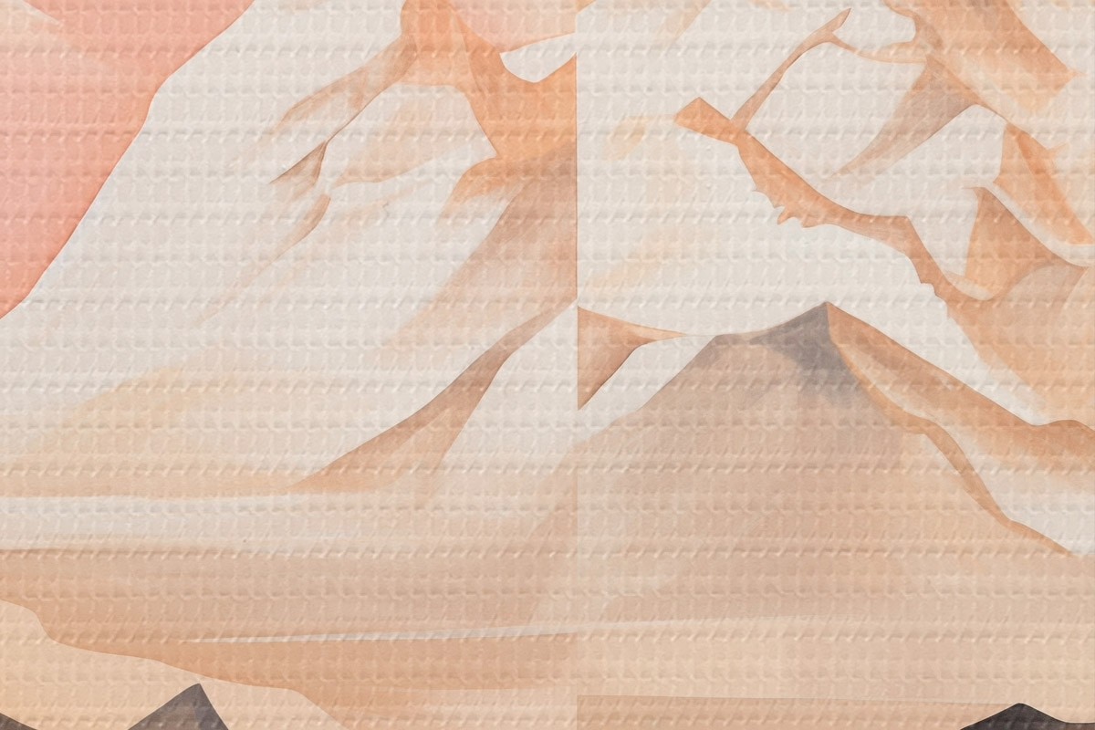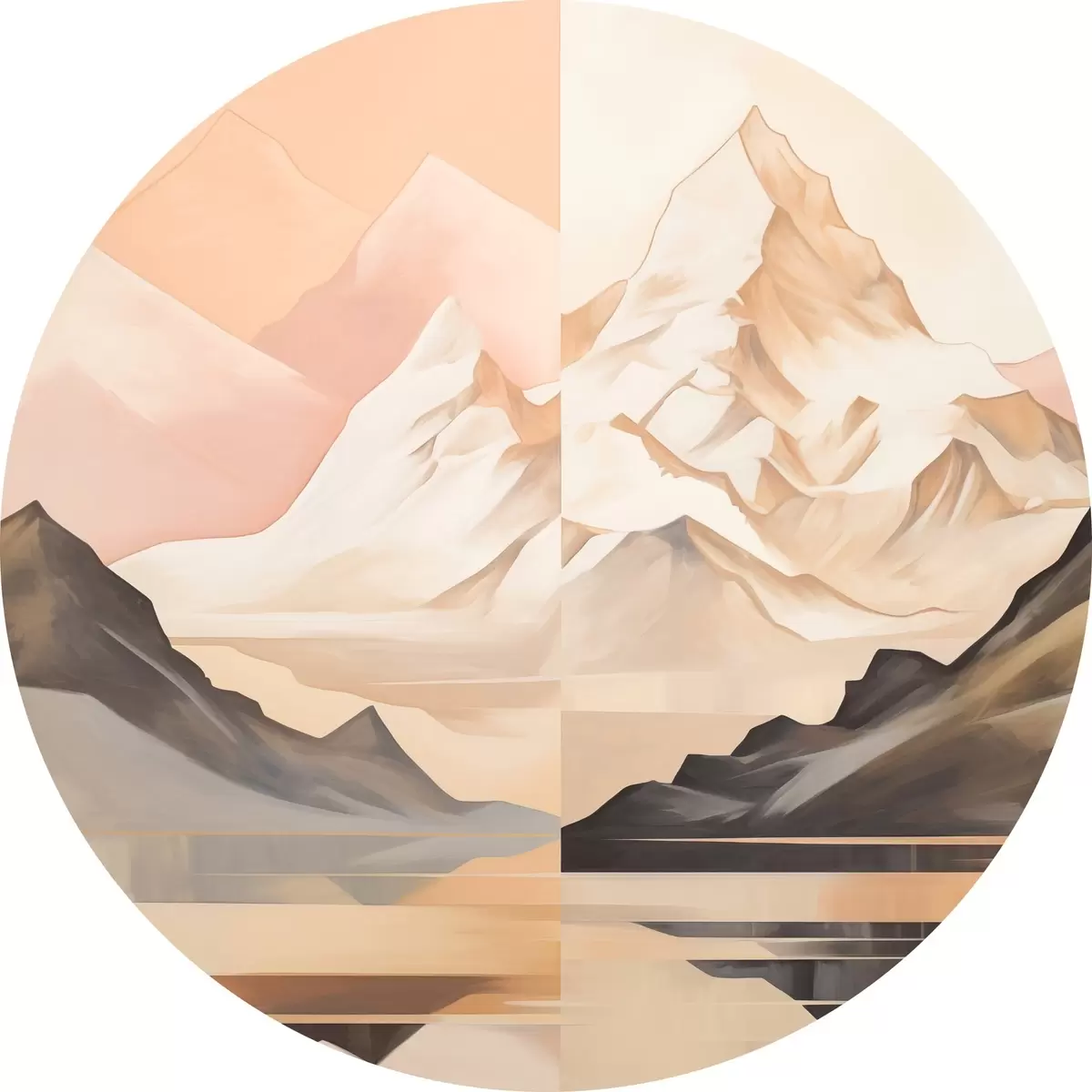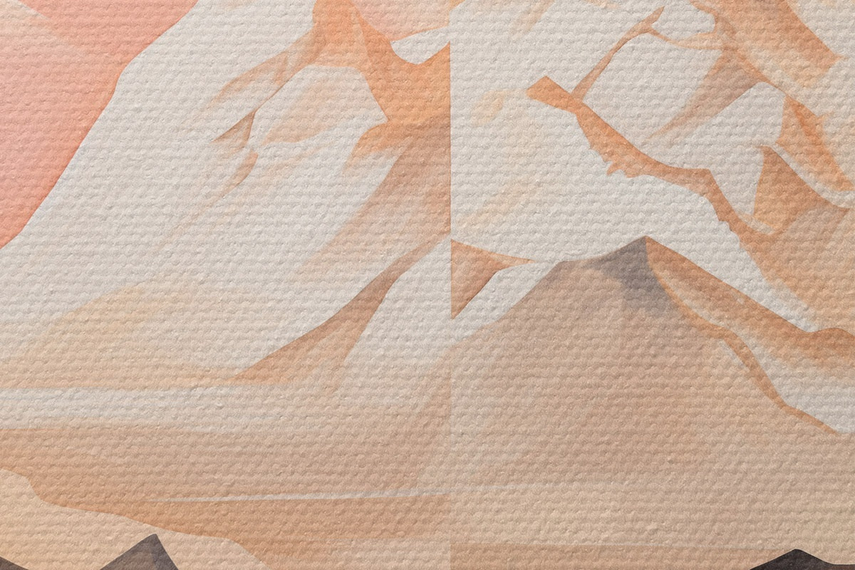 Obrázek Abstraktní krajina s horami a jezerem, pastelové barvy, minimalistický styl Nr r45948