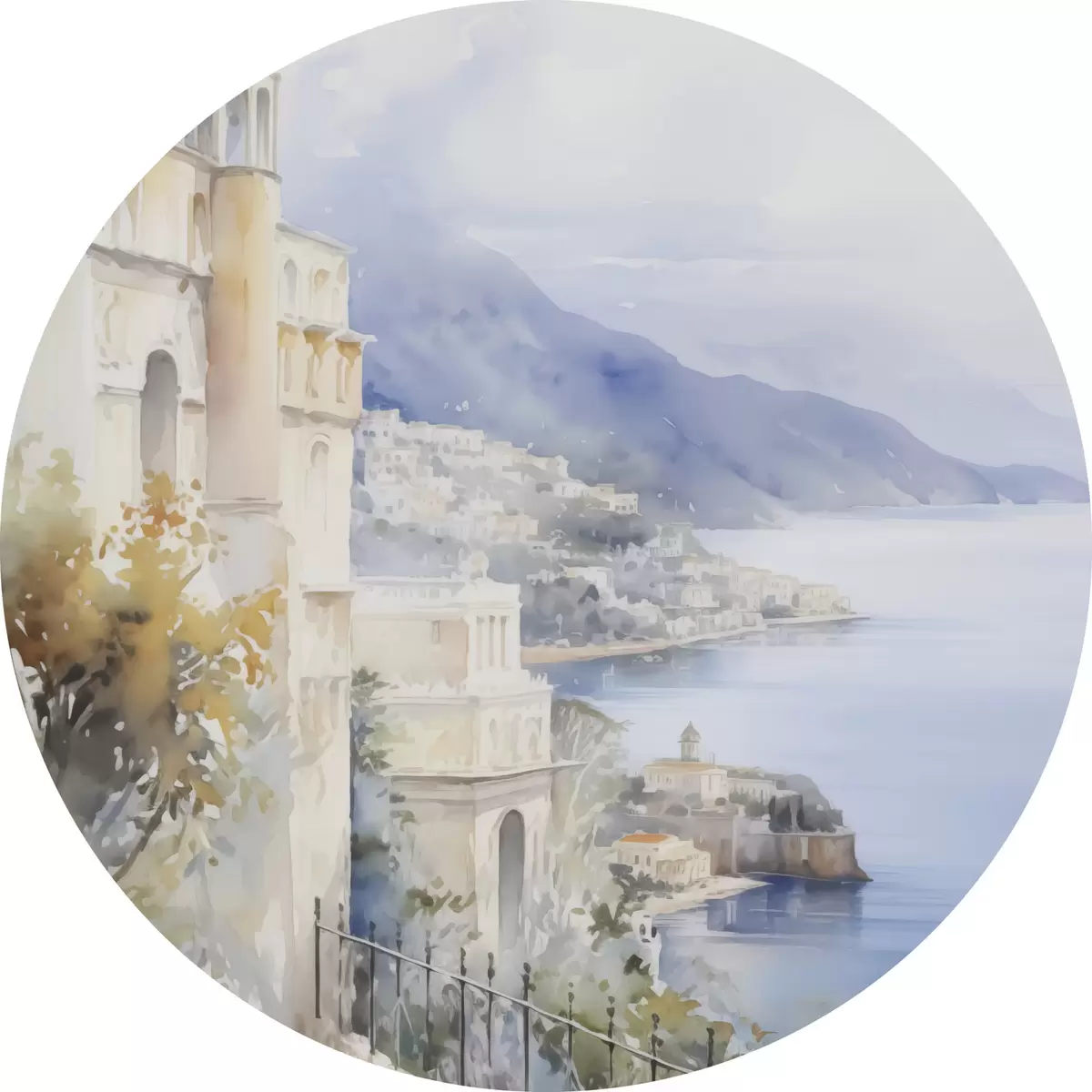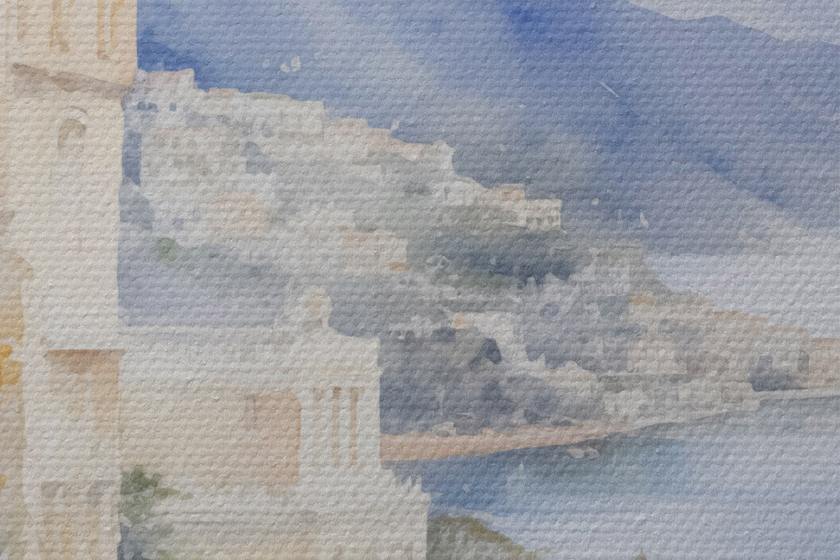 Obrázek Zátoka poblíž města imitace akvarelu Nr r45979