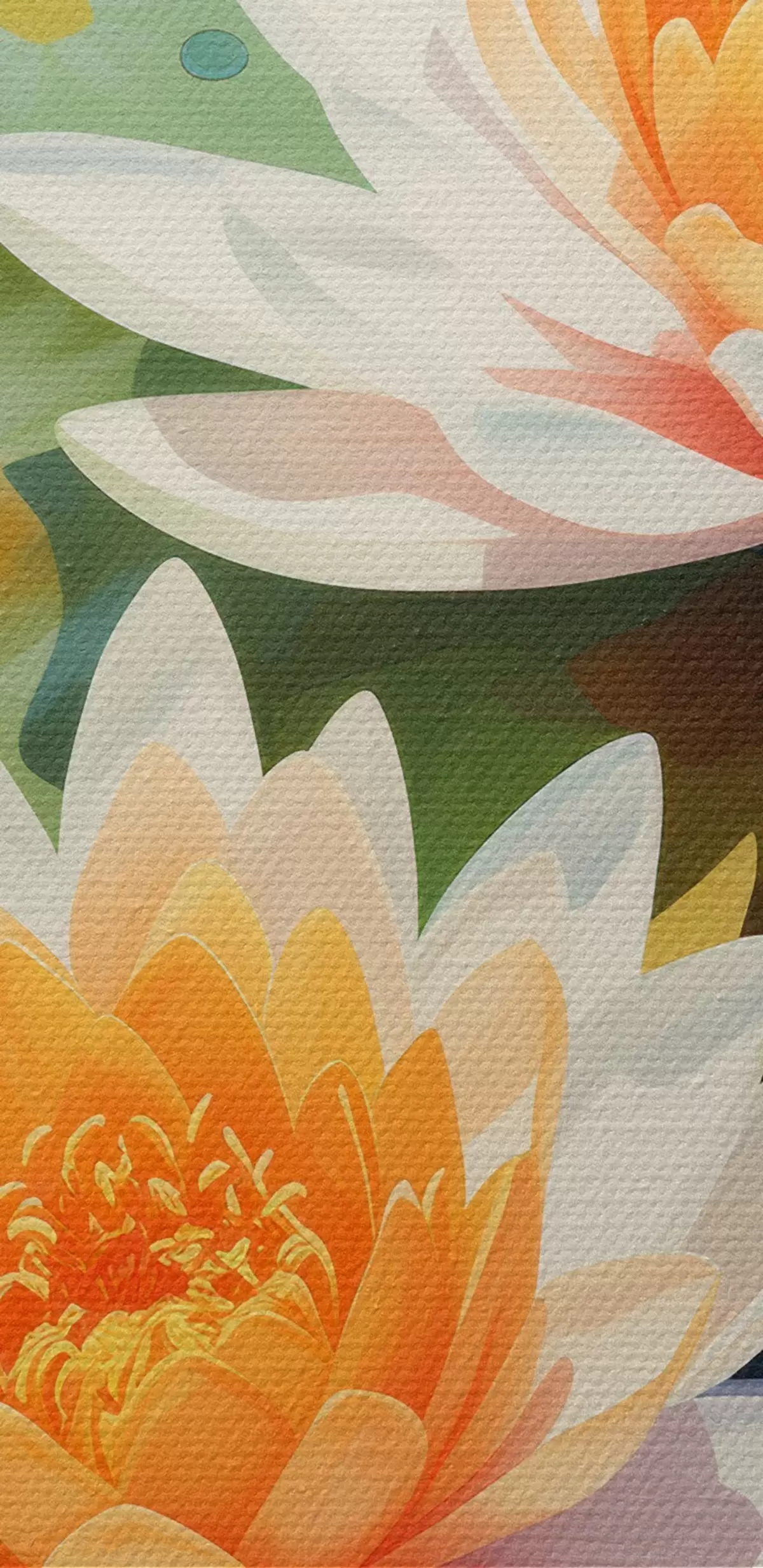 K objednání jsou k dispozici tři typy materiálu: Economic Canvas - hustý a odolný materiál pro digitální tisk, identický s malířským plátnem, voděodolný povrch, realistická reprodukce detailů, středně zrnitý materiál. Prémiové plátno - struktura připomíná malířské plátno (proplétané drobné nitě). Měkká, detailní reprodukce obrazu na matném povrchu. Eco-Premium - vysoce kvalitní tkanina ze 100% bavlny. Díky přírodním bavlněným vláknům je materiál trvanlivý a odolný proti opotřebení. Vynikající reprodukce barev a detailů.