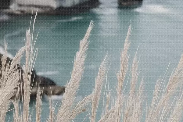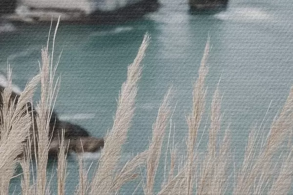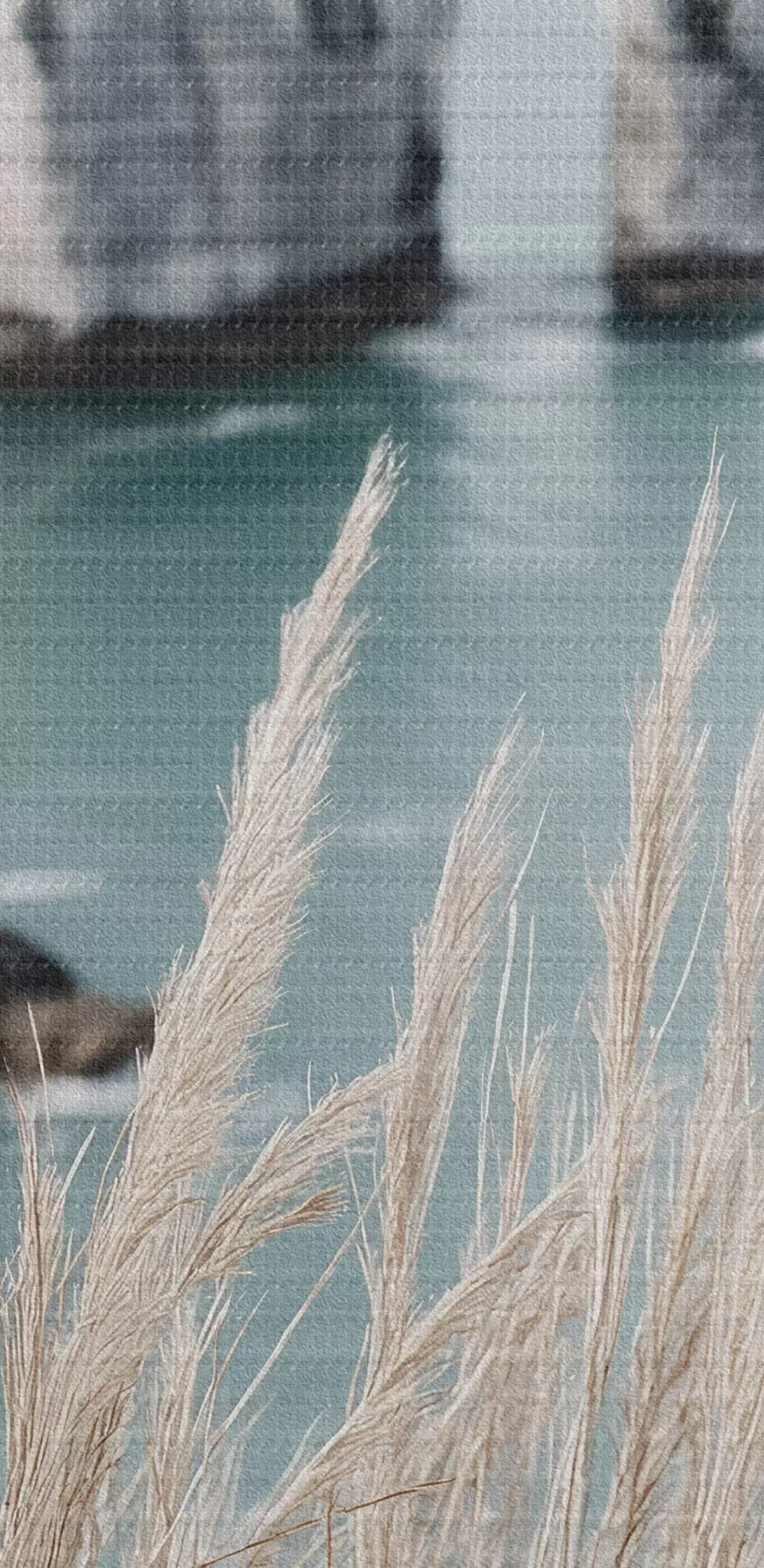 Obrázek Moře a skalní oblouk, pohled skrz suché trávy Nr r46142