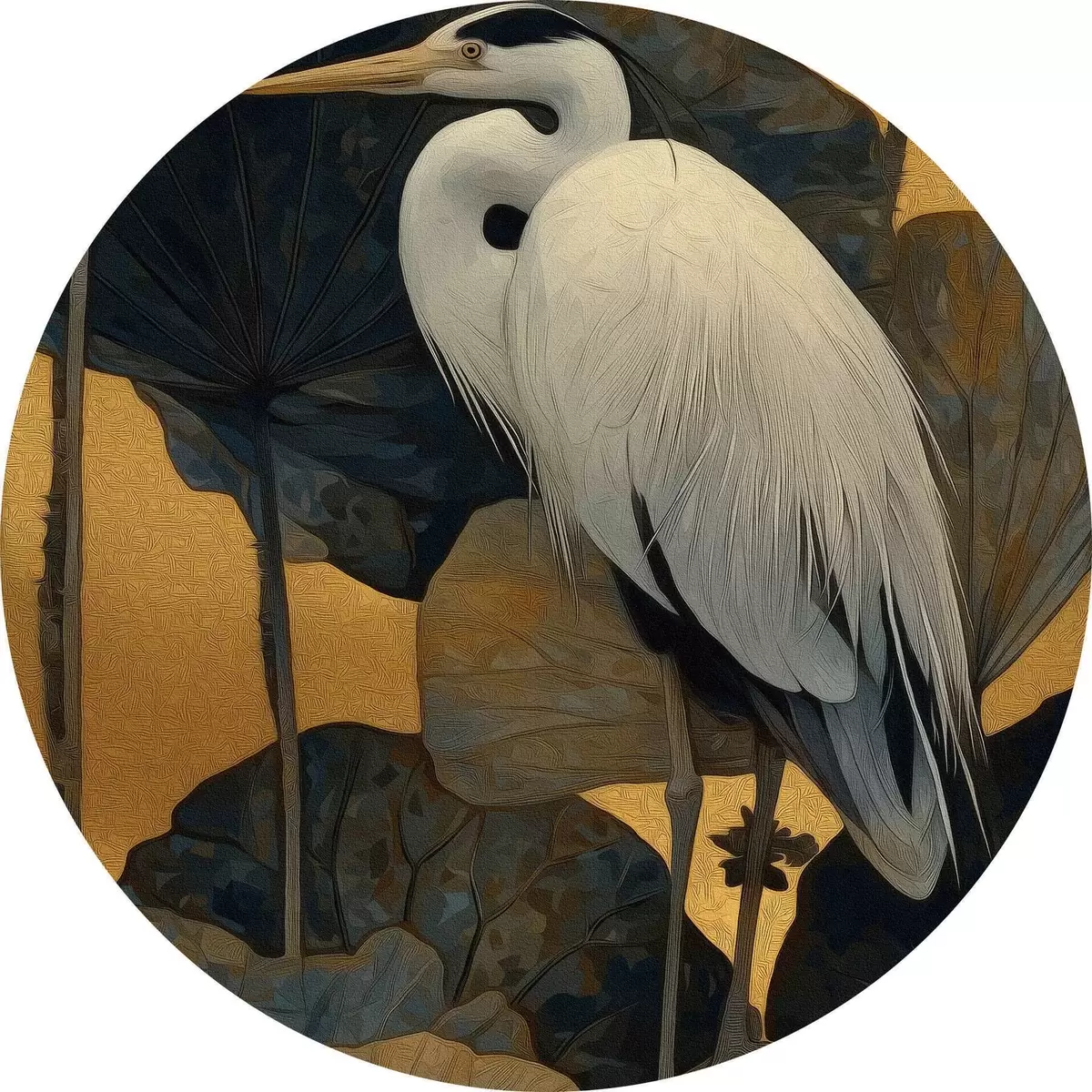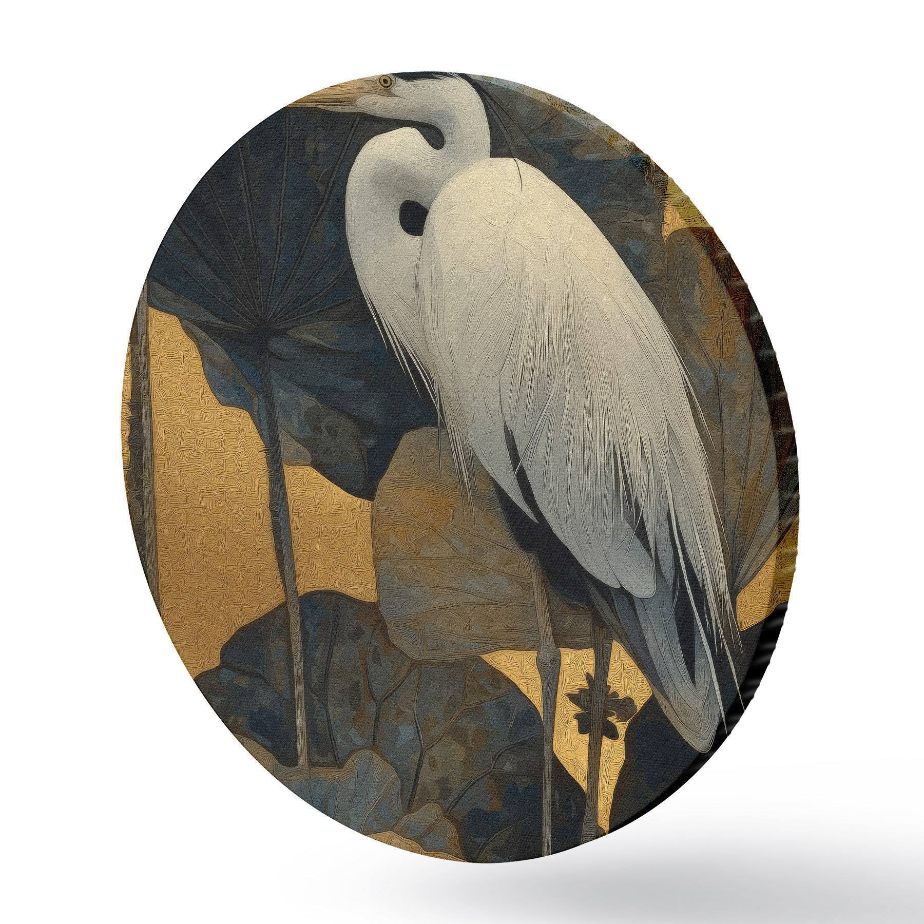 Obrázek Bílá volavka mezi velkými listy na teplém pozadí Nr r46147