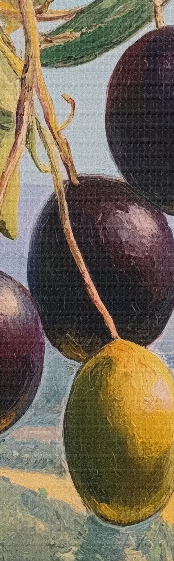 Obrázek Olivová ratolest s tmavými plody na pozadí letní krajiny Nr r46150