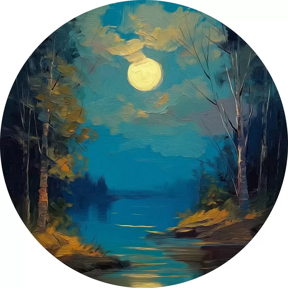 Obrázek Měsíční svit nad klidnou řekou mezi borovicemi Nr r46164