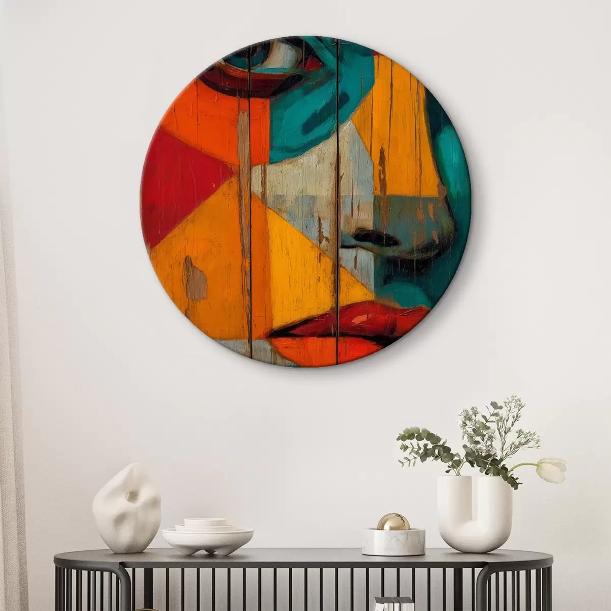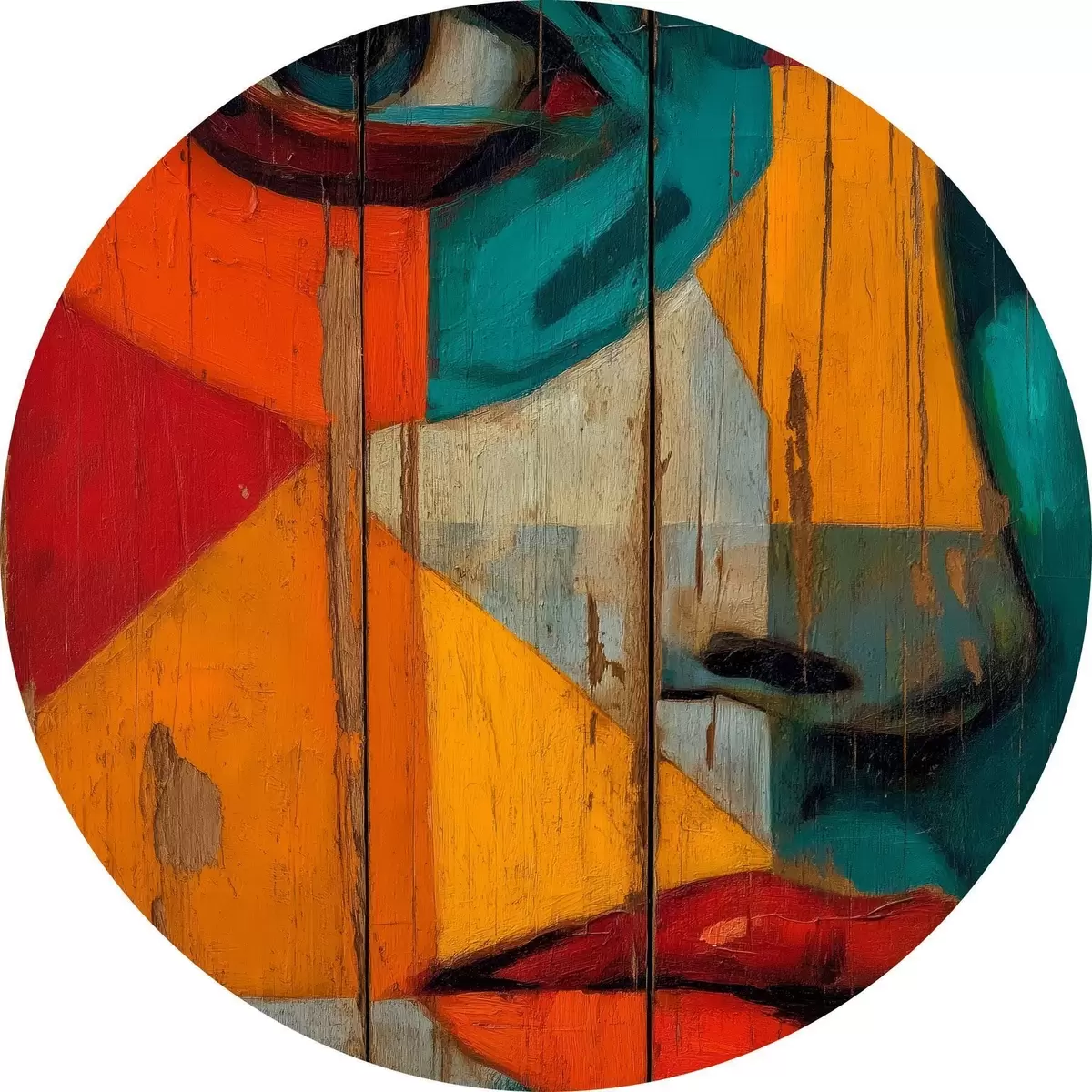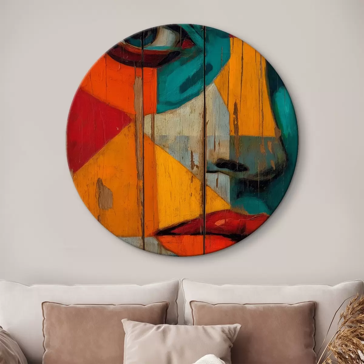 Obrázek Jasný geometrický portrét obličeje na dřevěných deskách Nr r46165