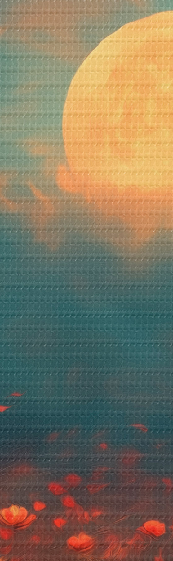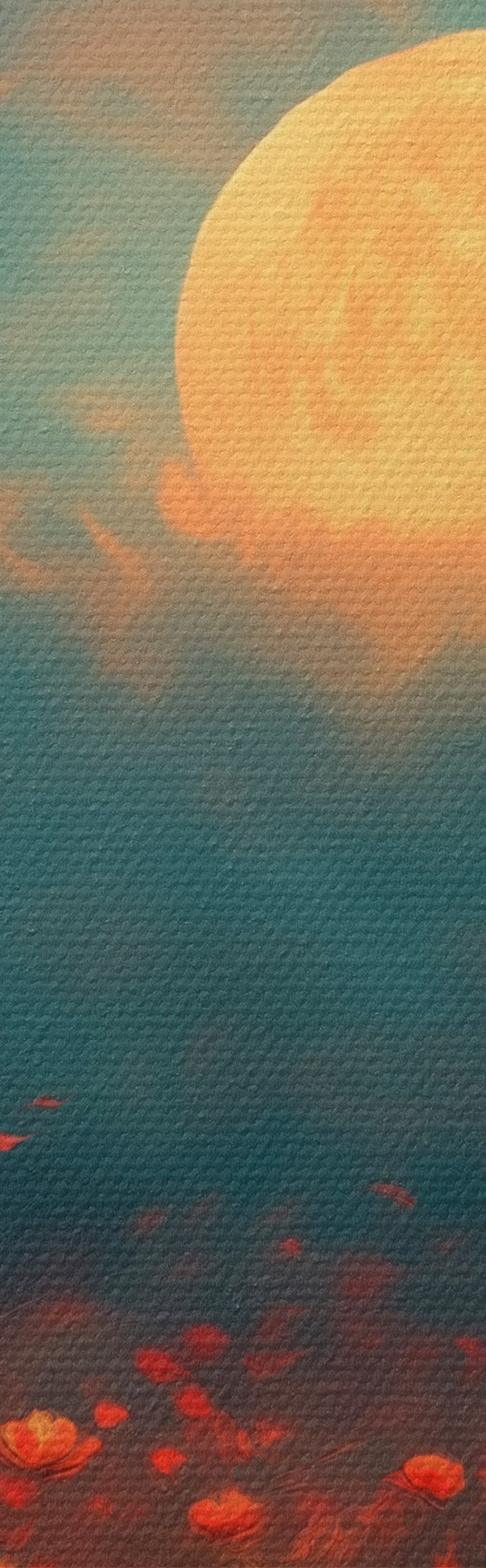 Obrázek Měsíc nad polem červených květin v mlhavé večerní obloze Nr r46167