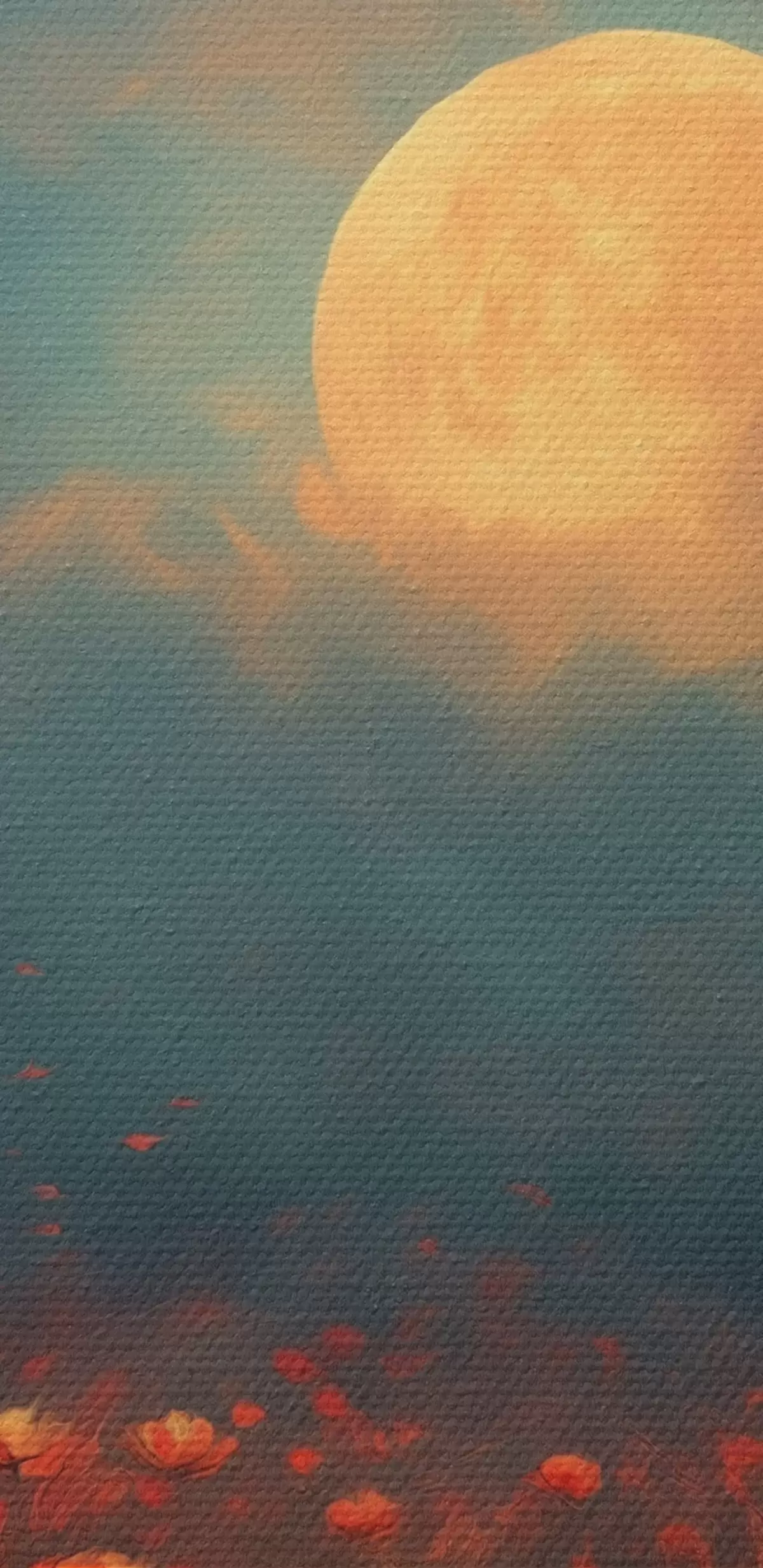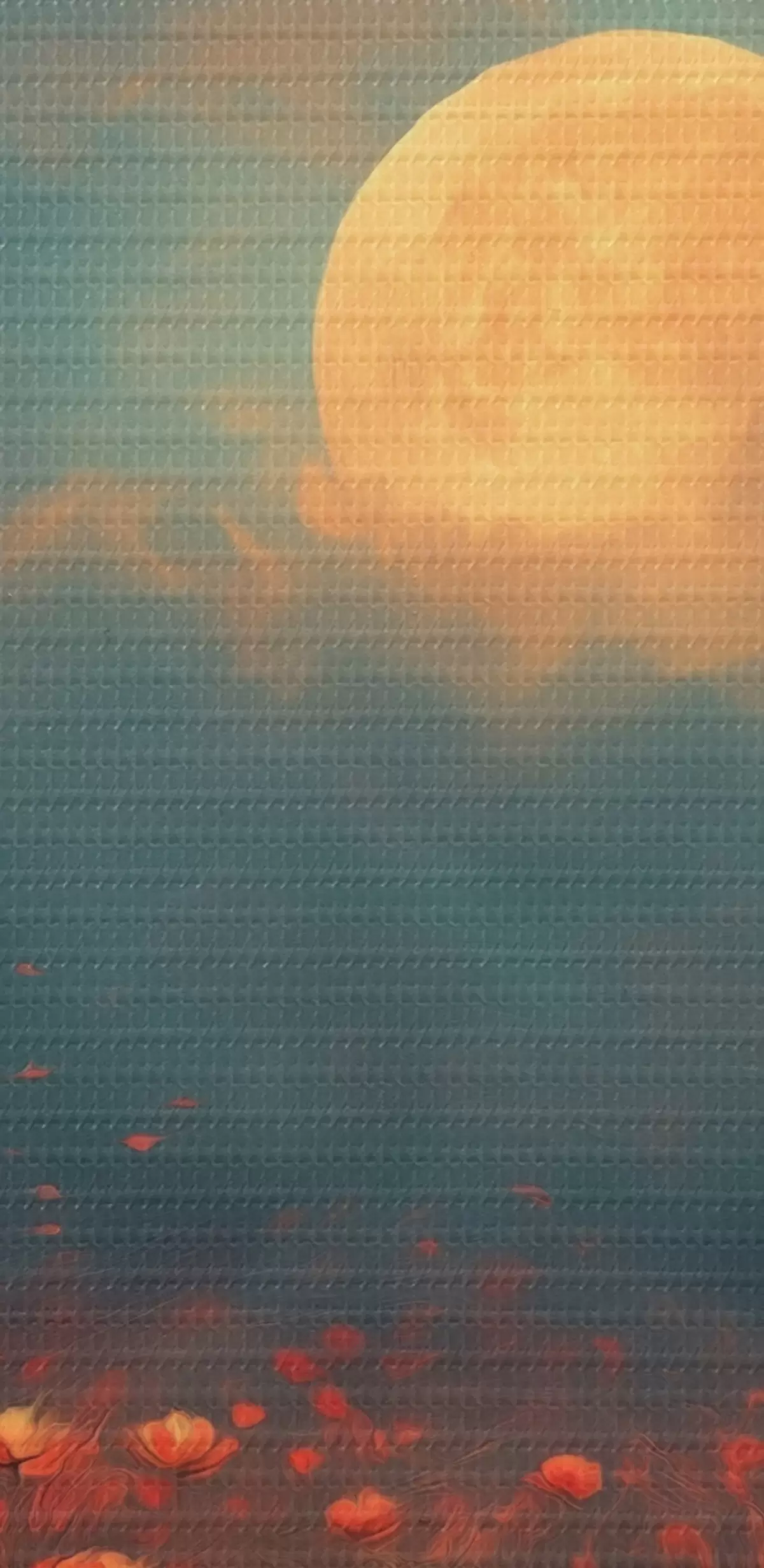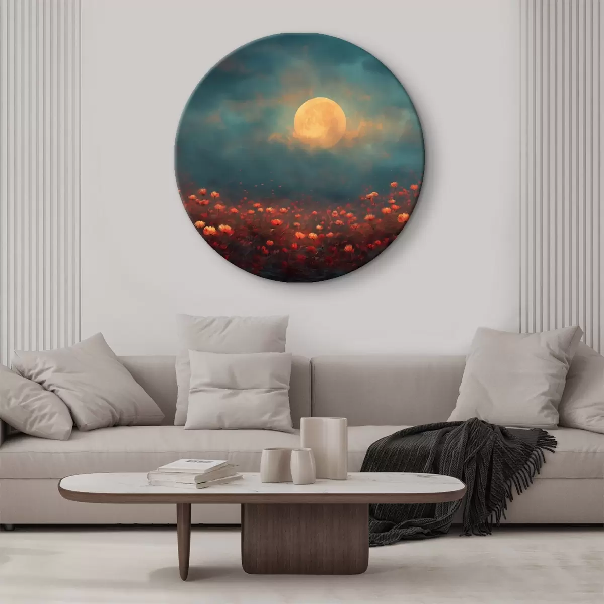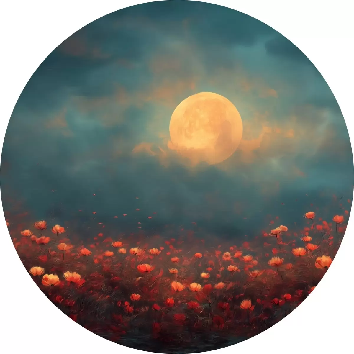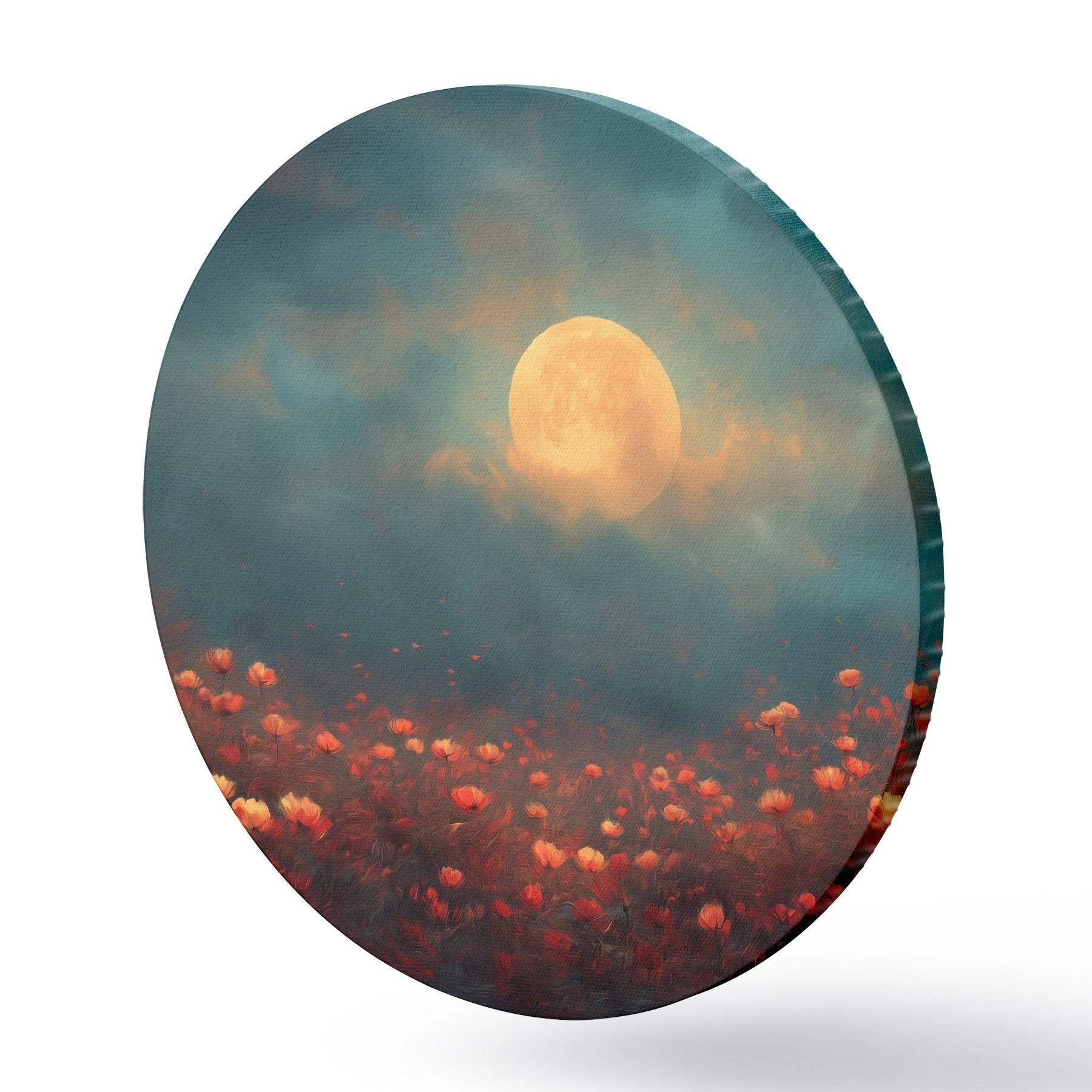 Obrázek Měsíc nad polem červených květin v mlhavé večerní obloze Nr r46167